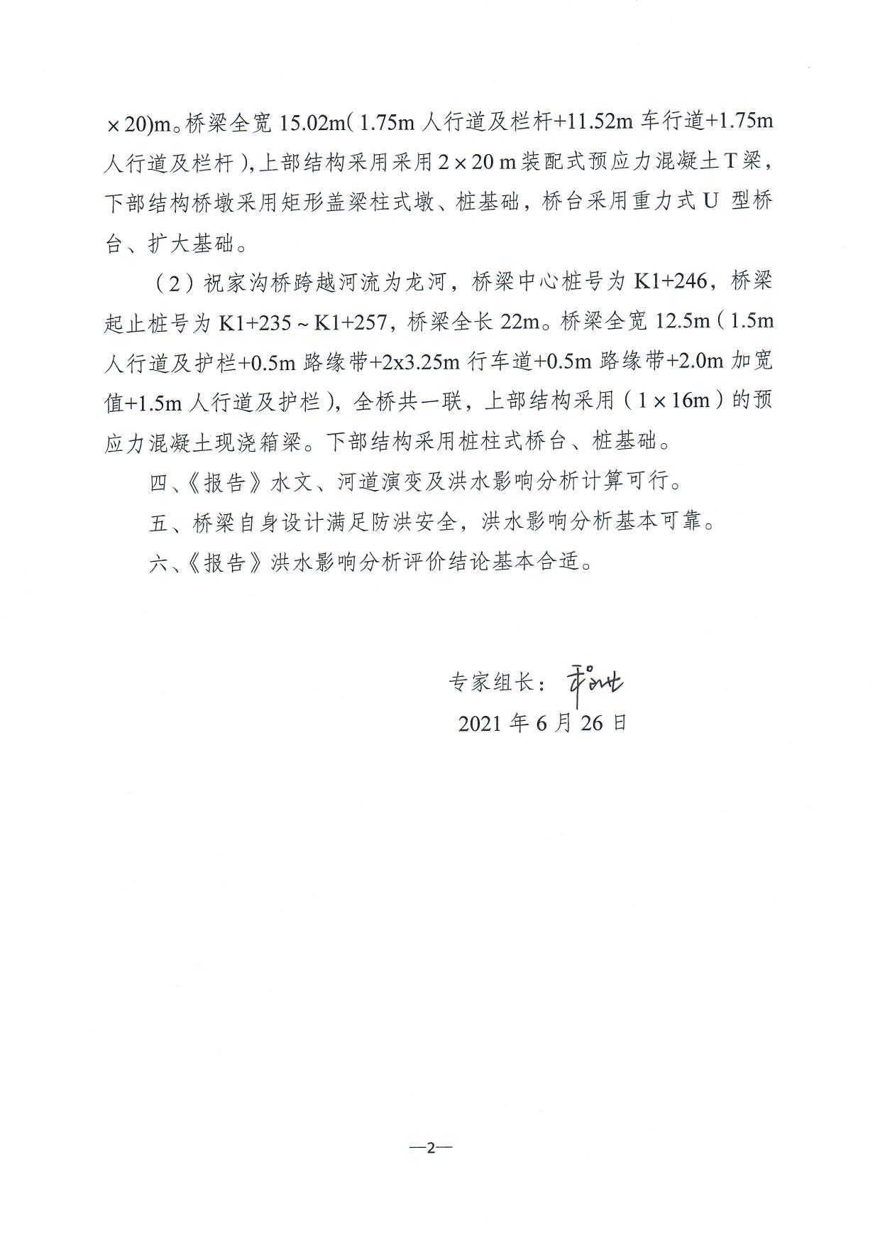 一、同意长寿区规划县道龙河至新市段升级改造工程洪水影响评价报告的结论
