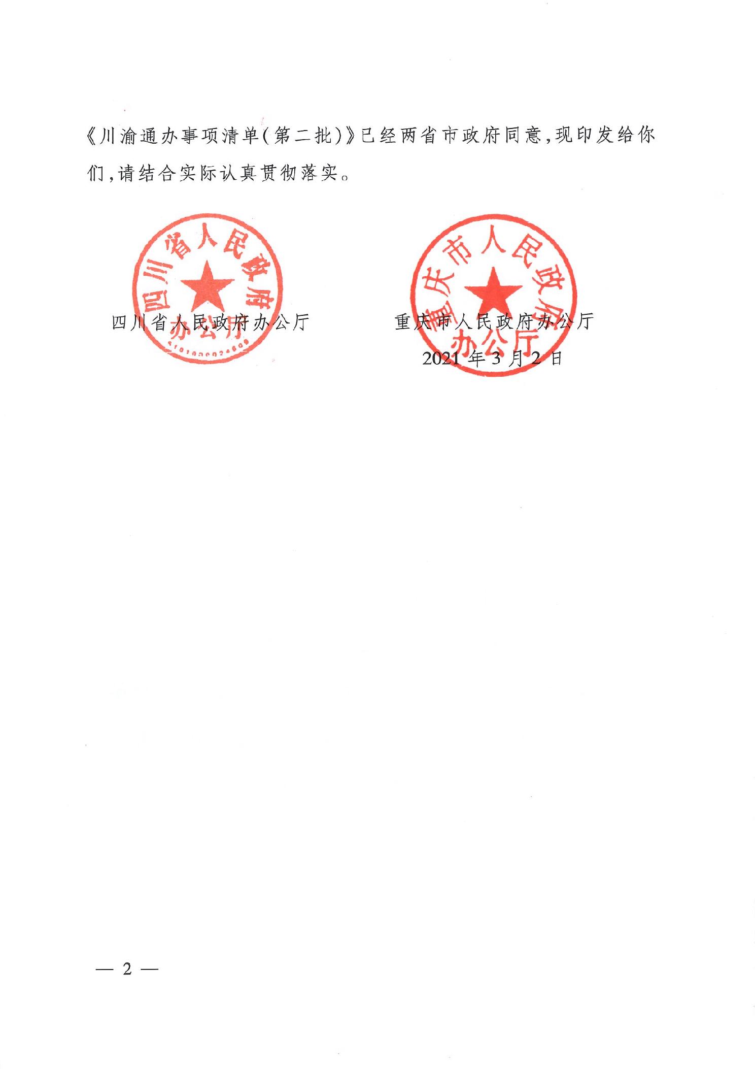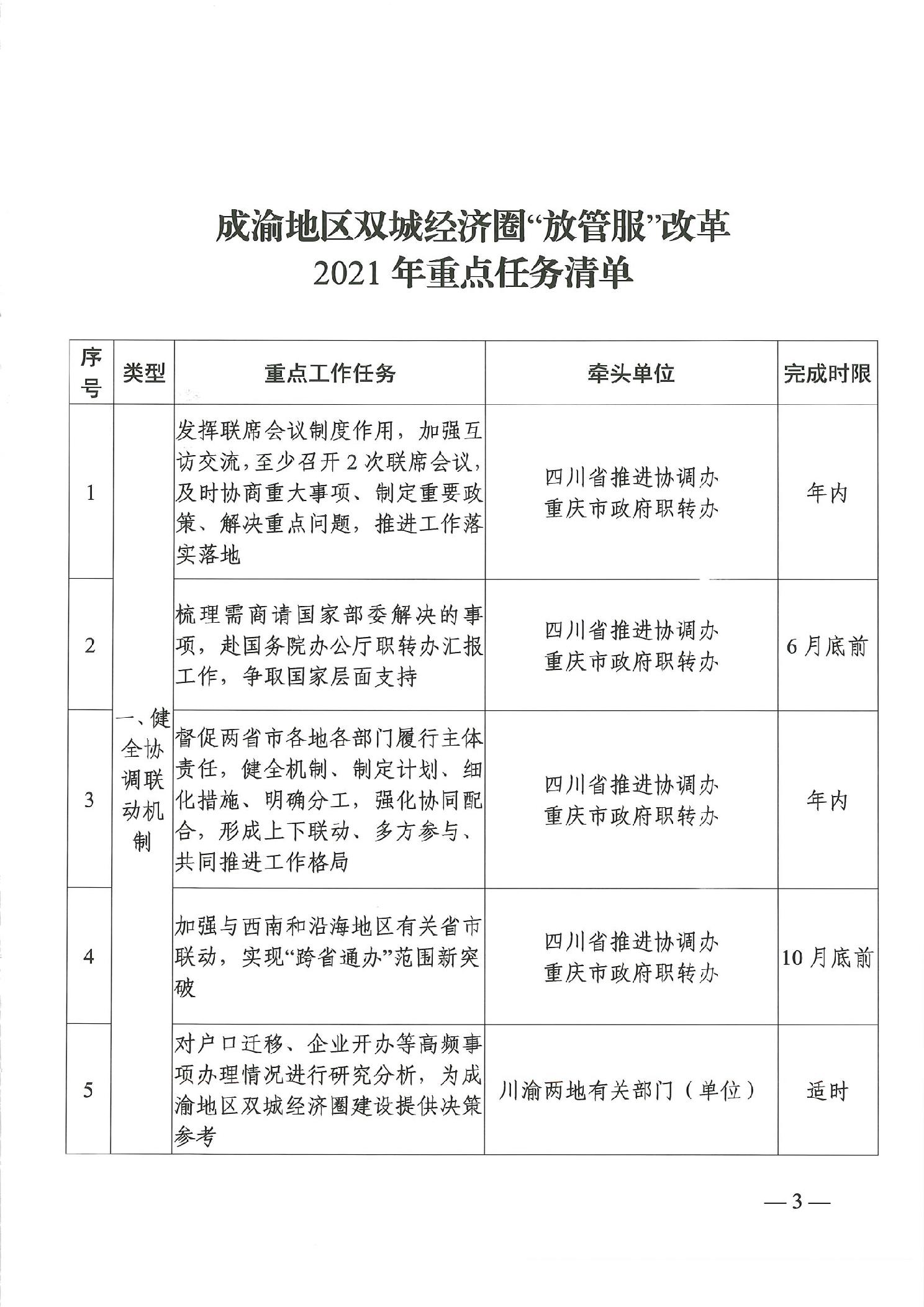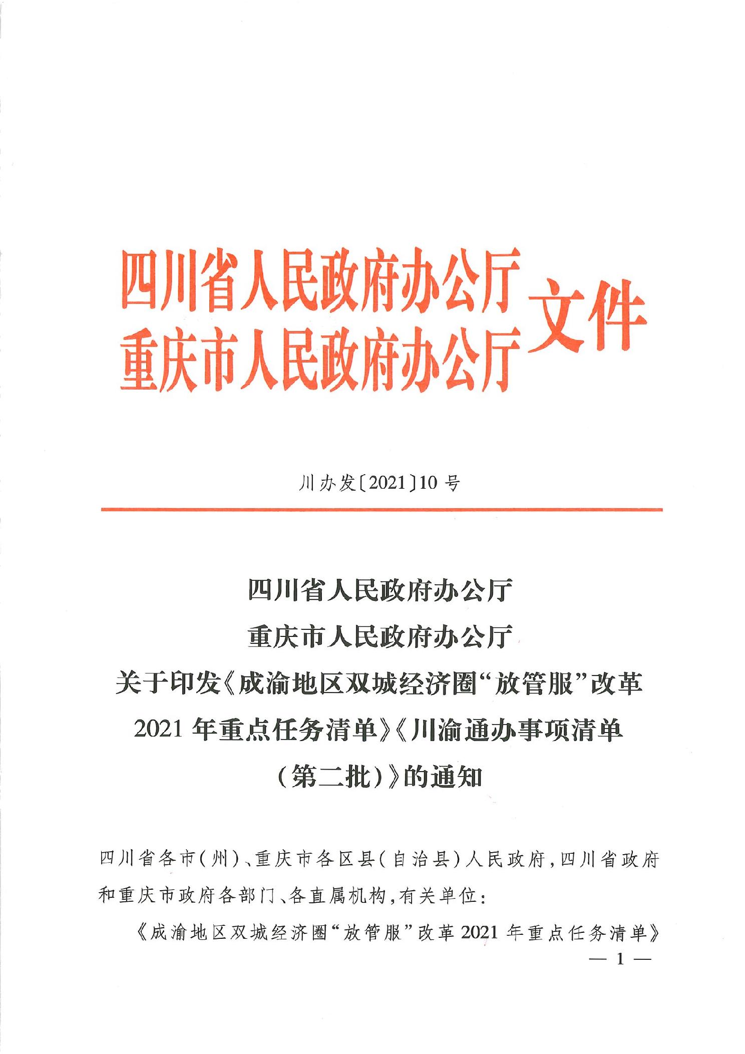 四川省人民政府办公厅 重庆市人民政府办公厅关于印发《成渝地区双城经济圈“放管服”改革2021年重点任务清单》《川渝通办事项清单(第二批)》的通知