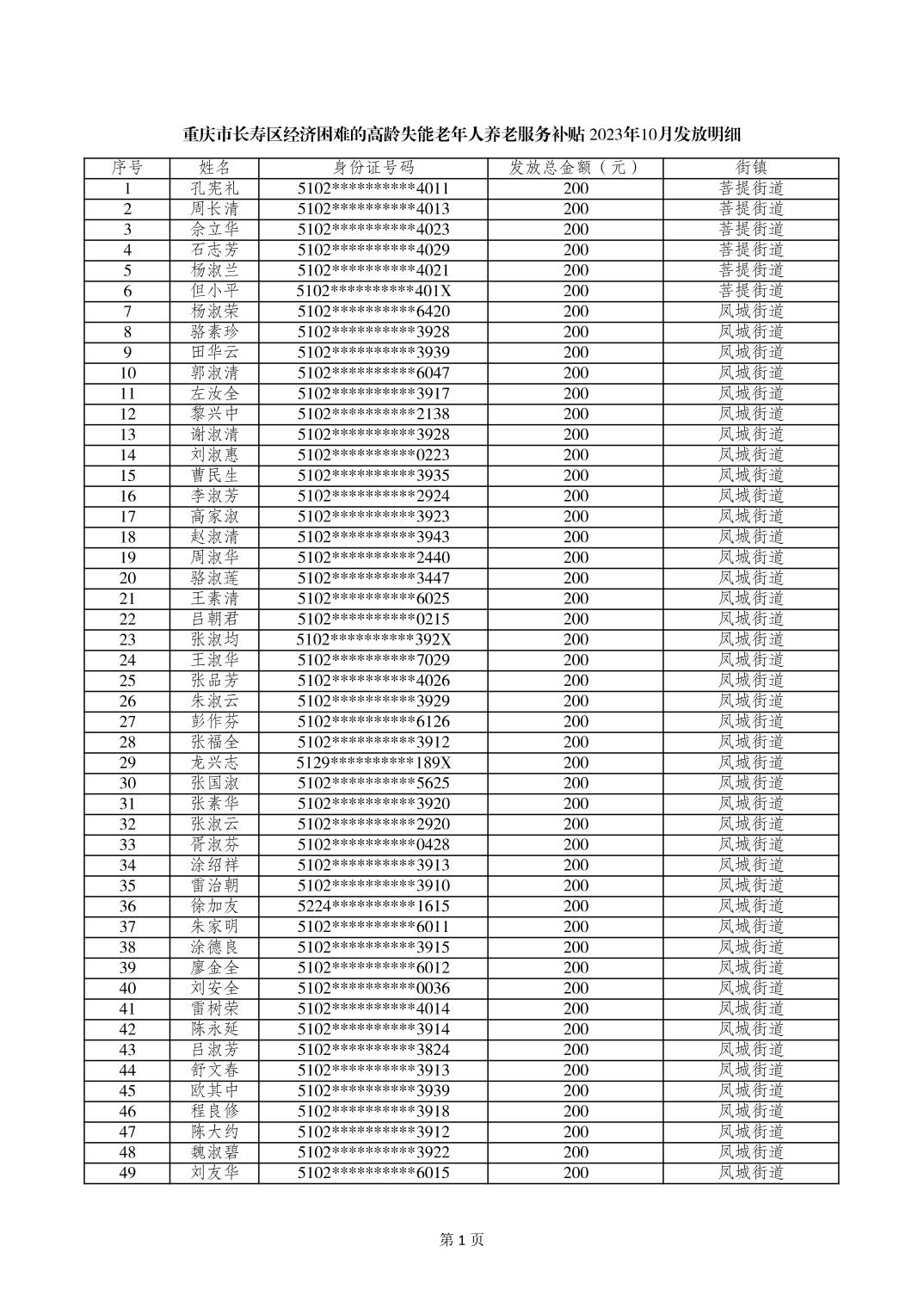 重庆市长寿区经济困难的高龄、失能老年人养老服务补贴2023年10月发放细则