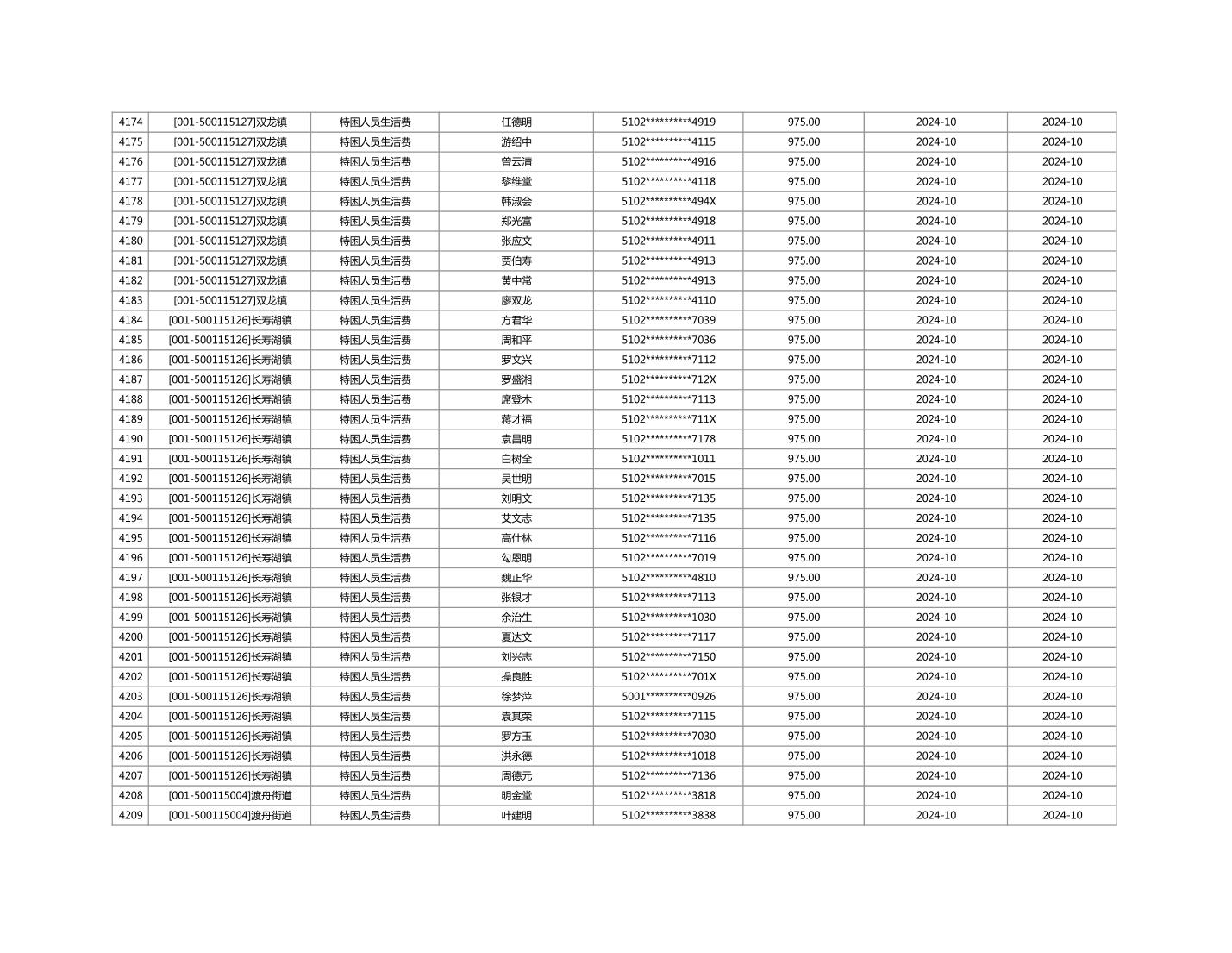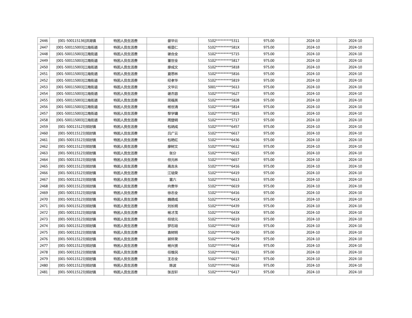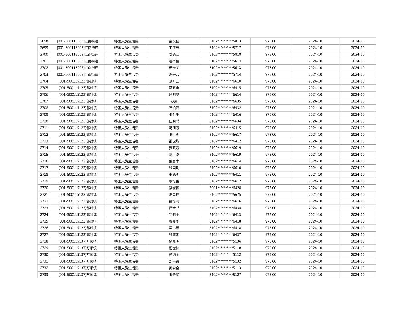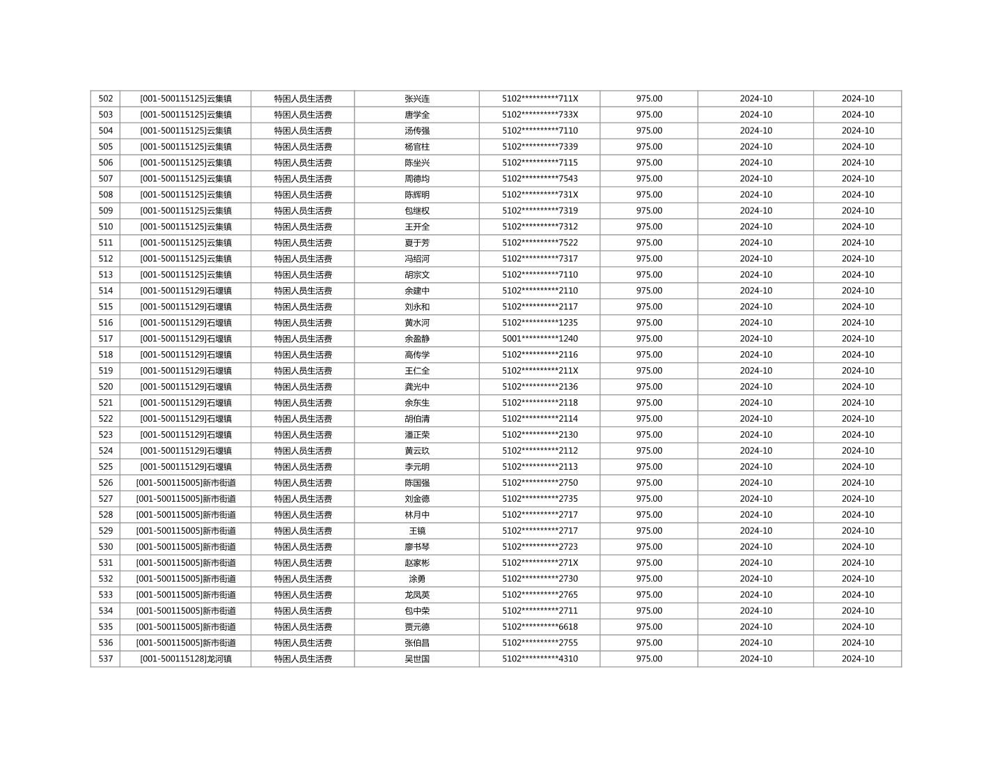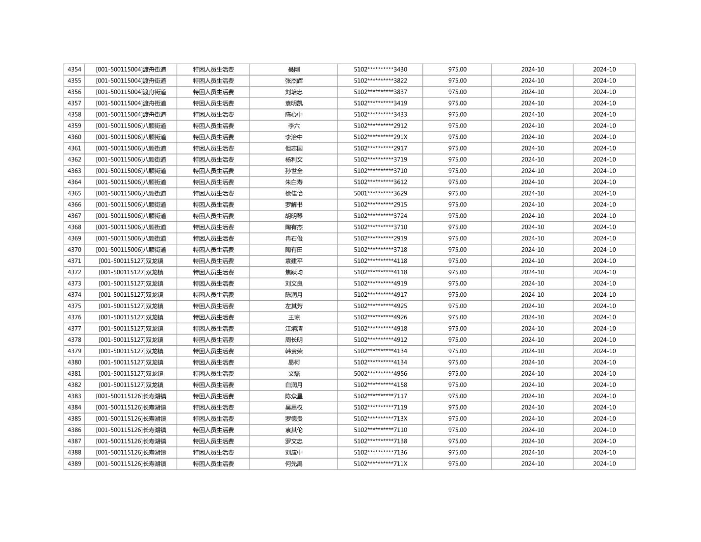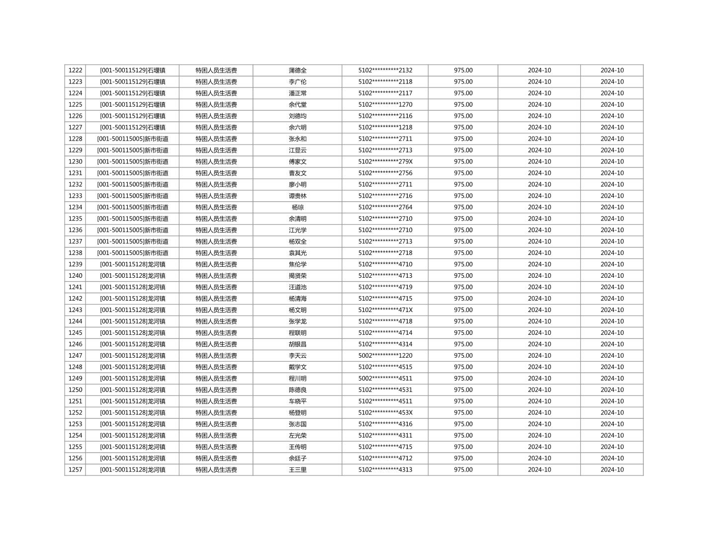 2024年10月重庆市长寿区特困救助供养资金发放情况