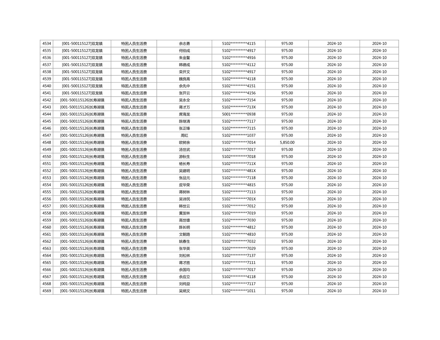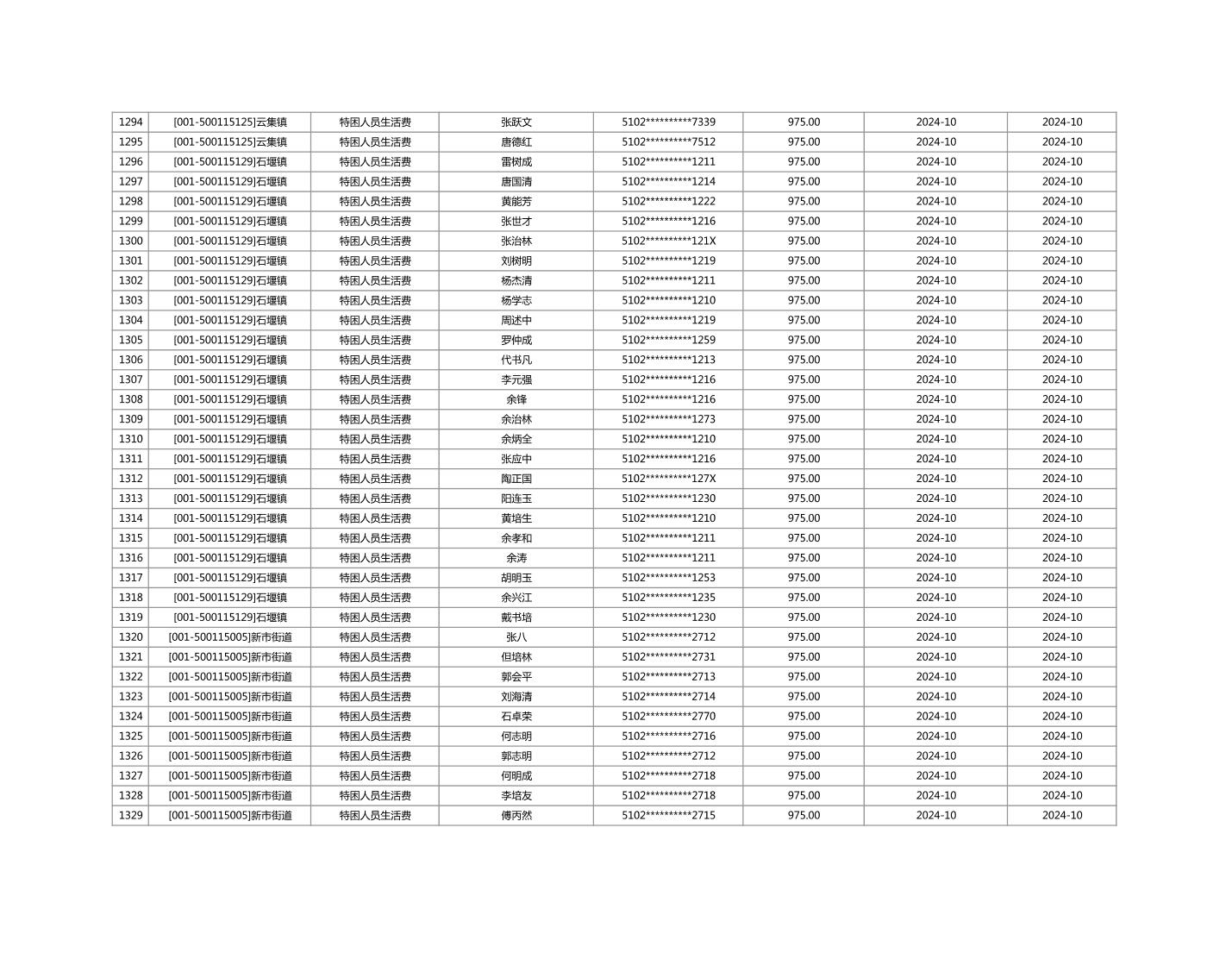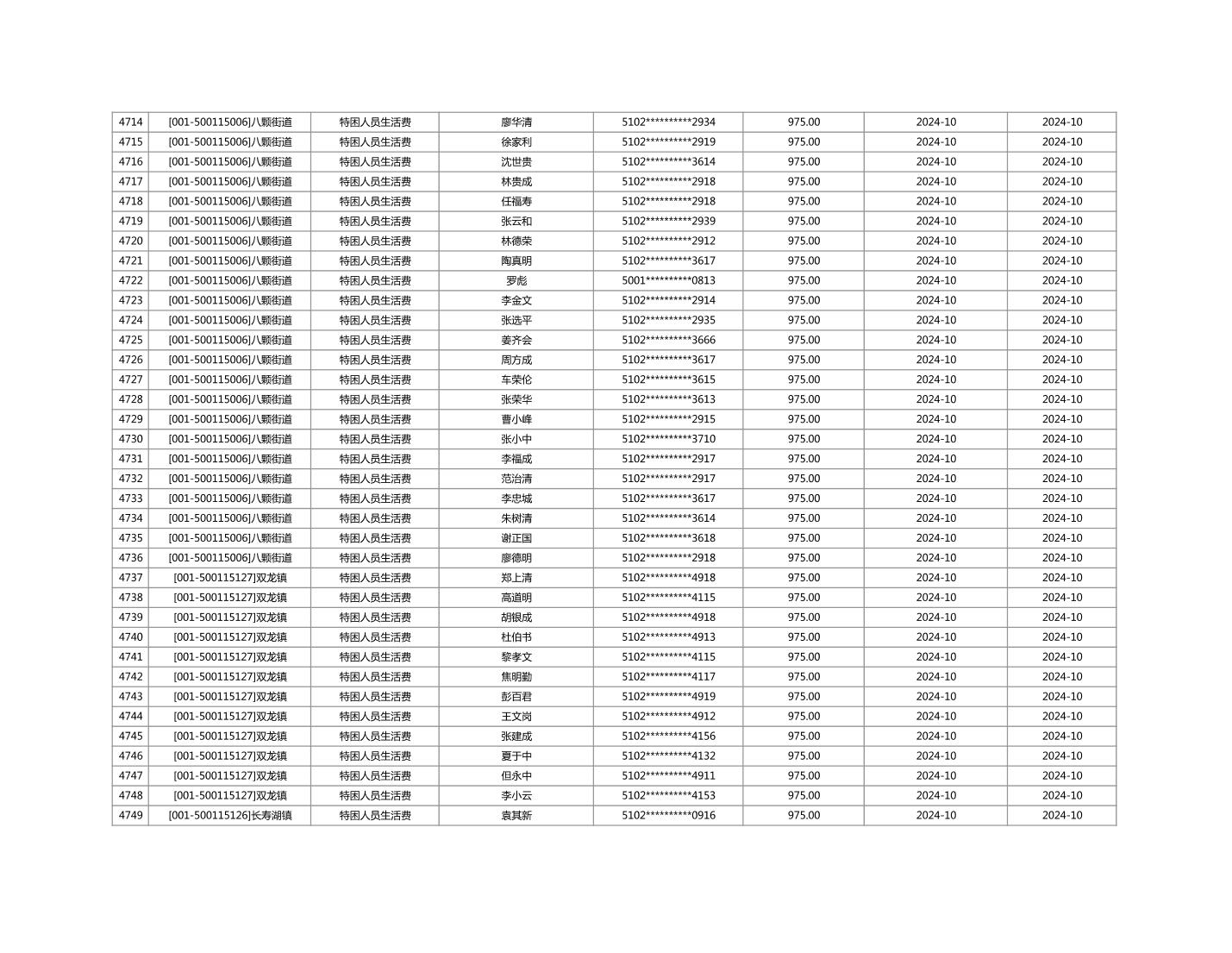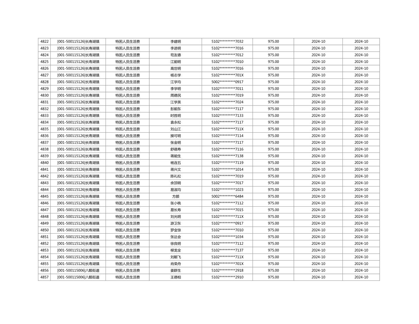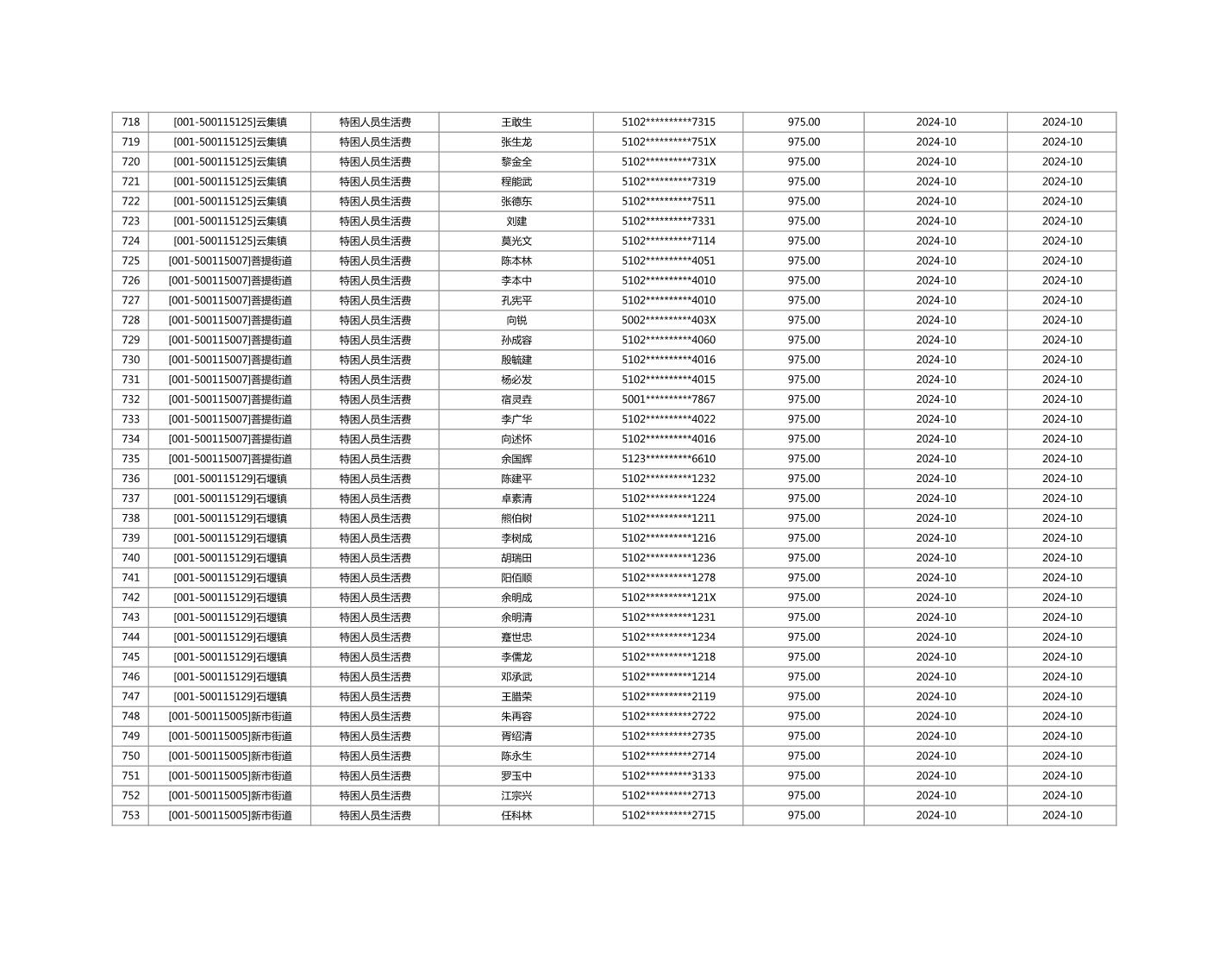 2024年10月重庆市长寿区特困救助供养资金发放情况