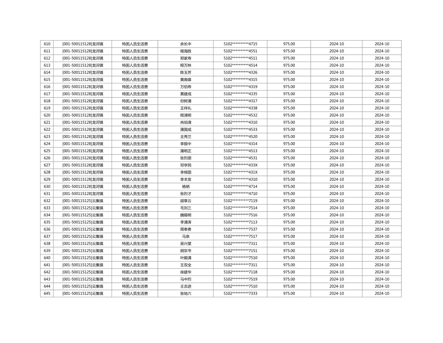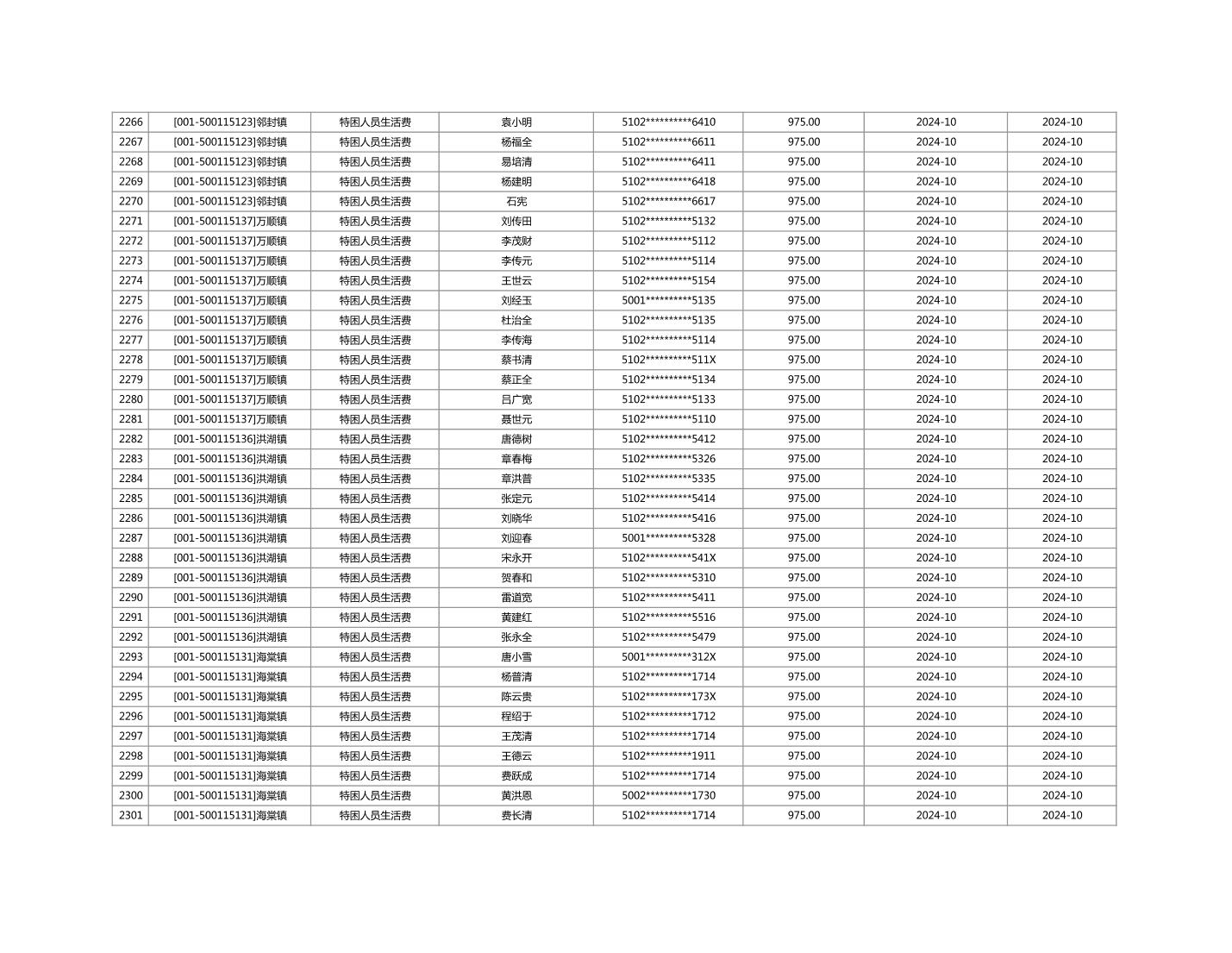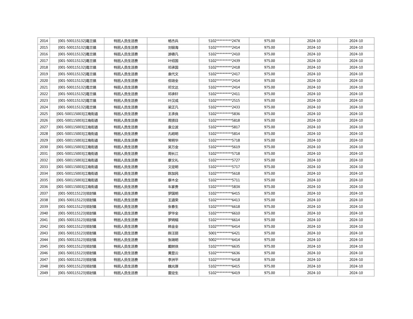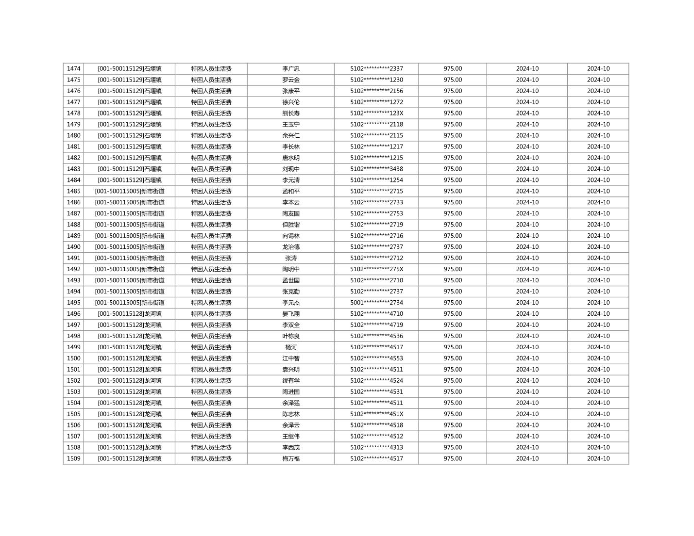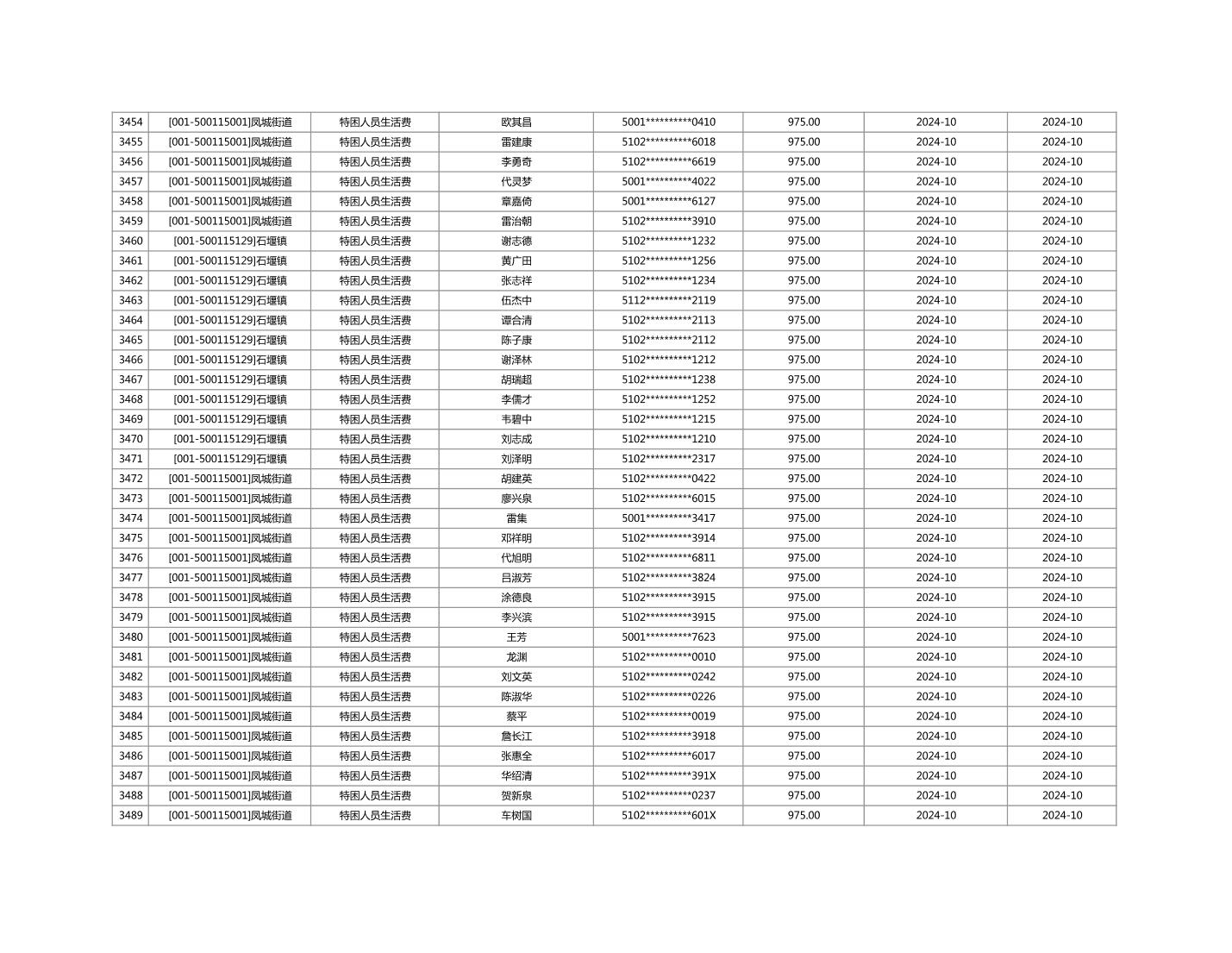 2024年10月重庆市长寿区特困救助供养资金发放情况
