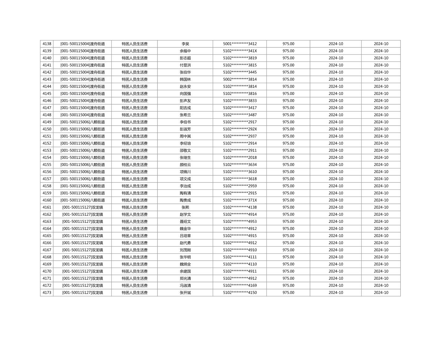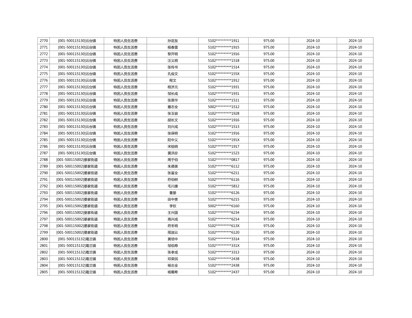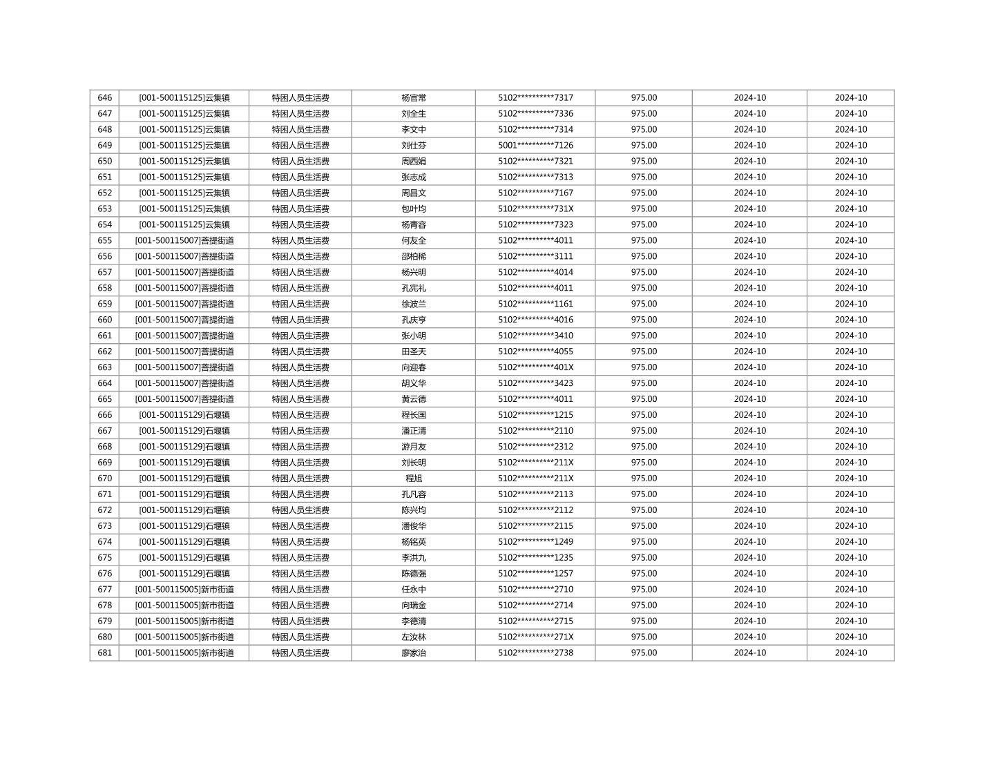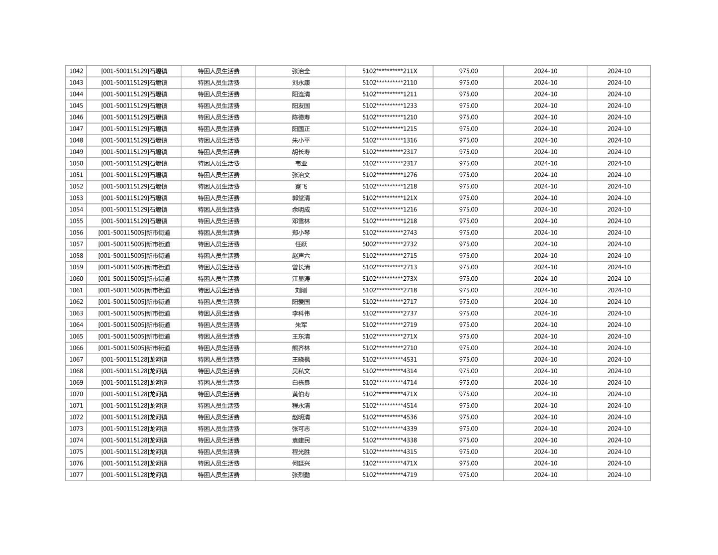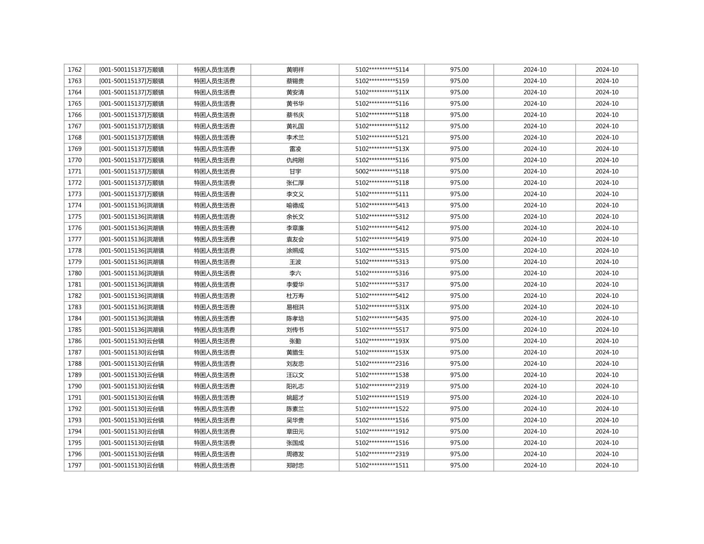 2024年10月重庆市长寿区特困救助供养资金发放情况
