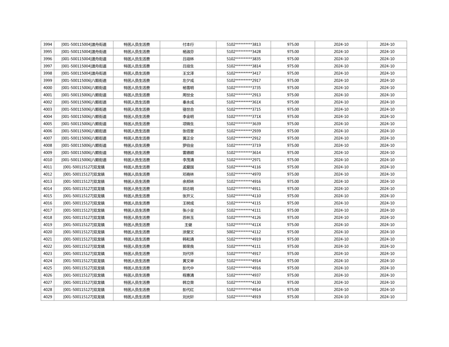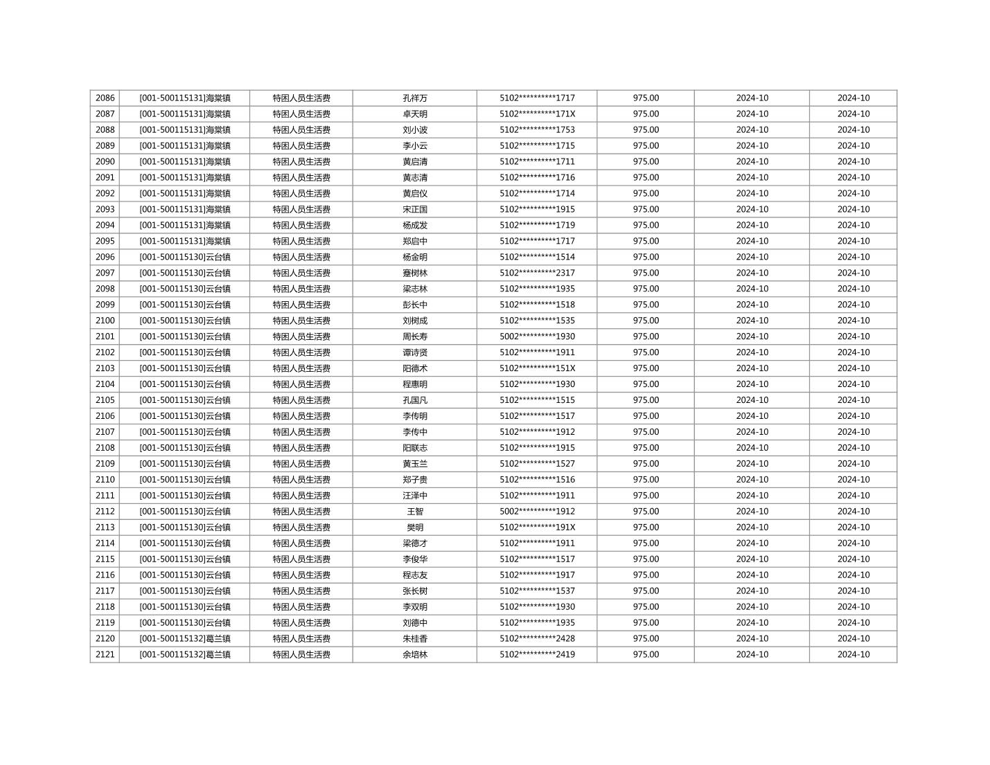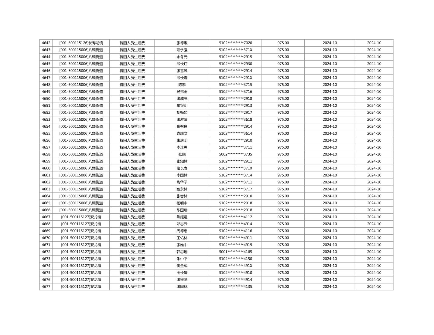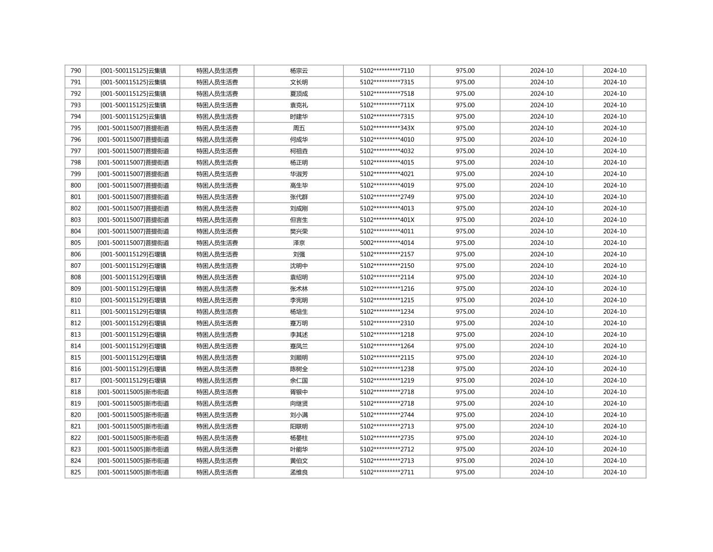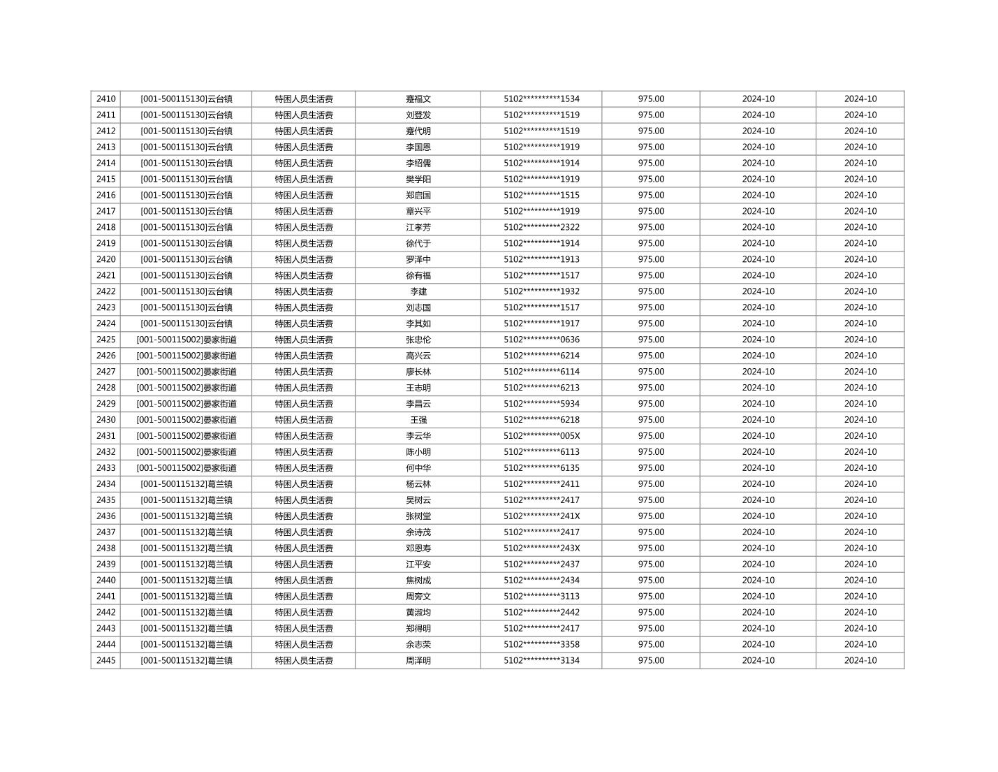 2024年10月重庆市长寿区特困救助供养资金发放情况