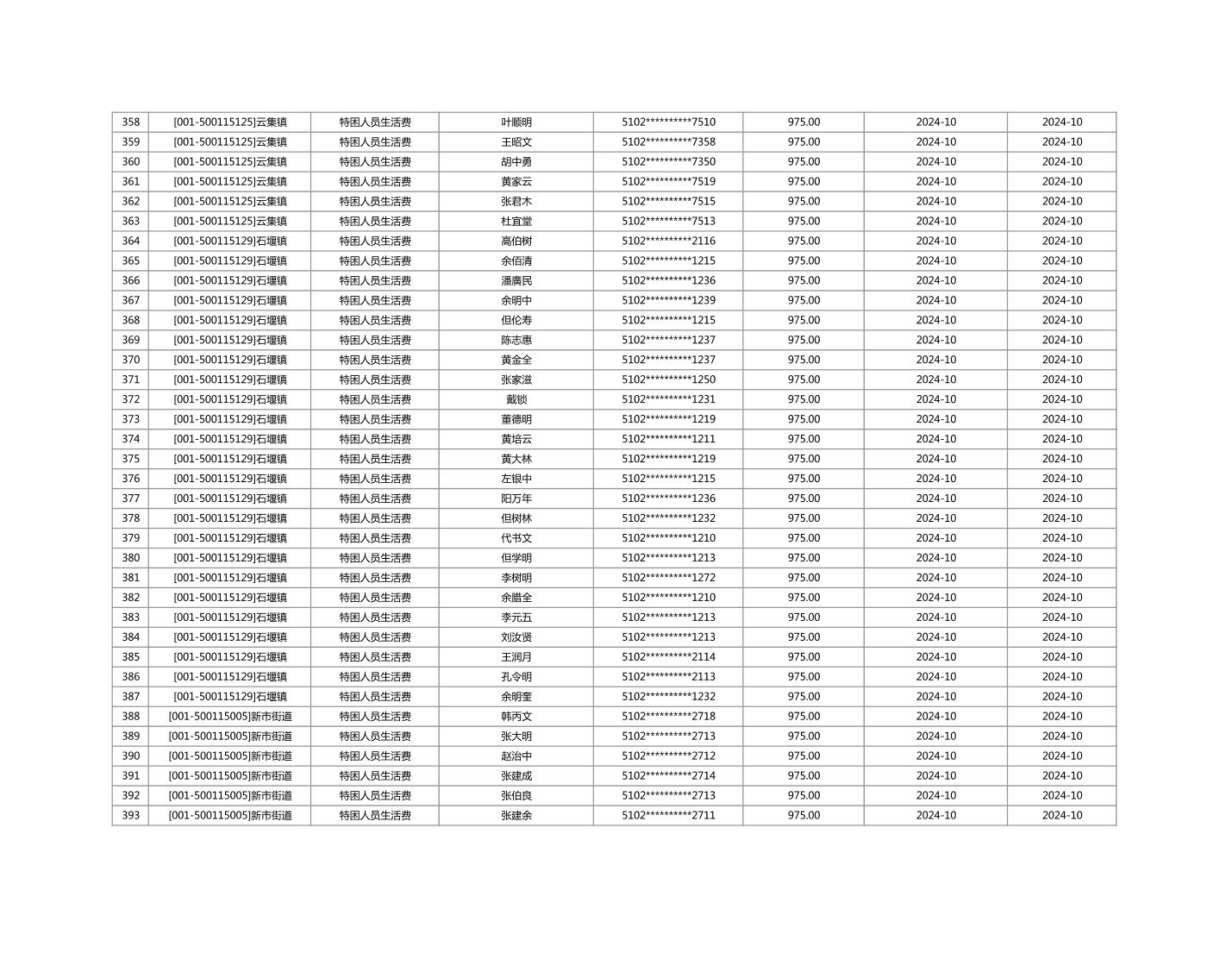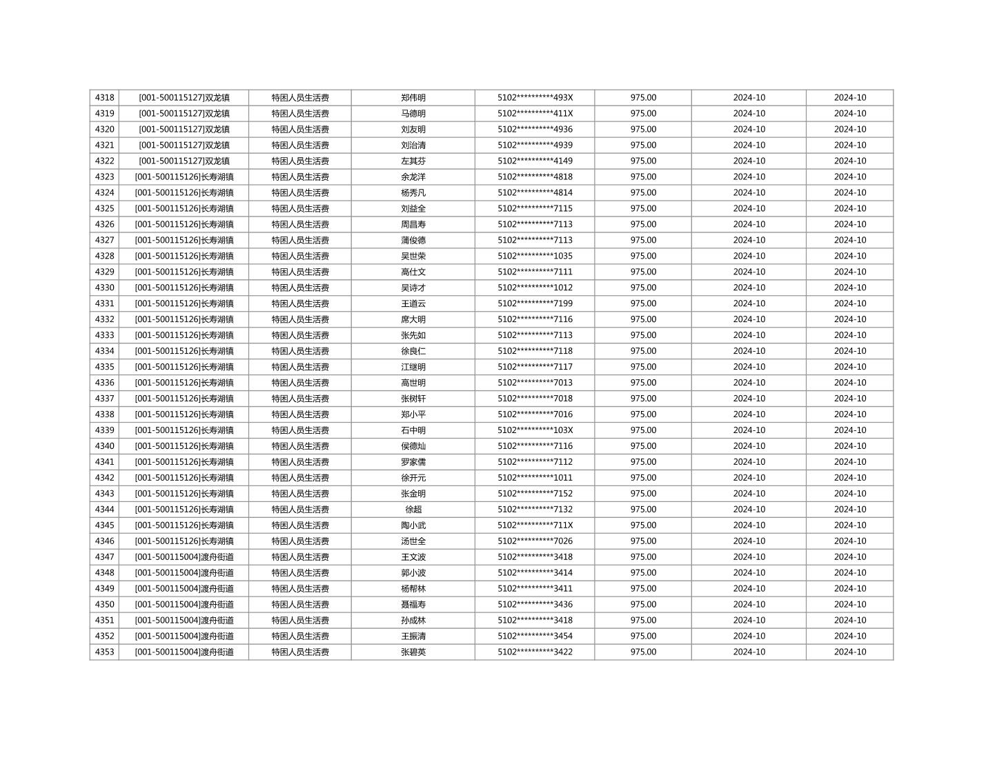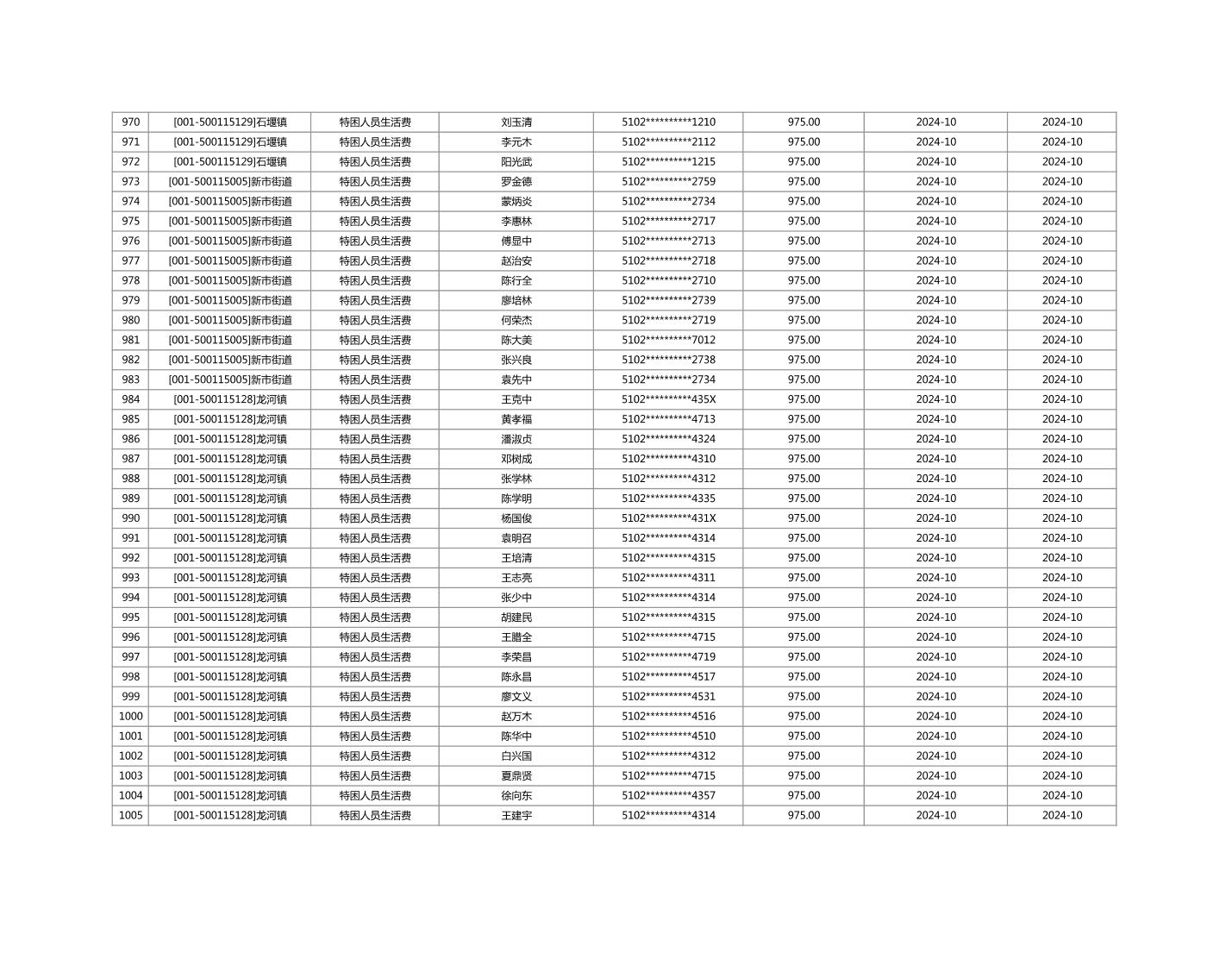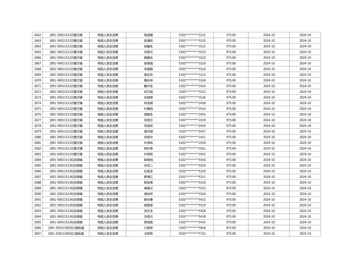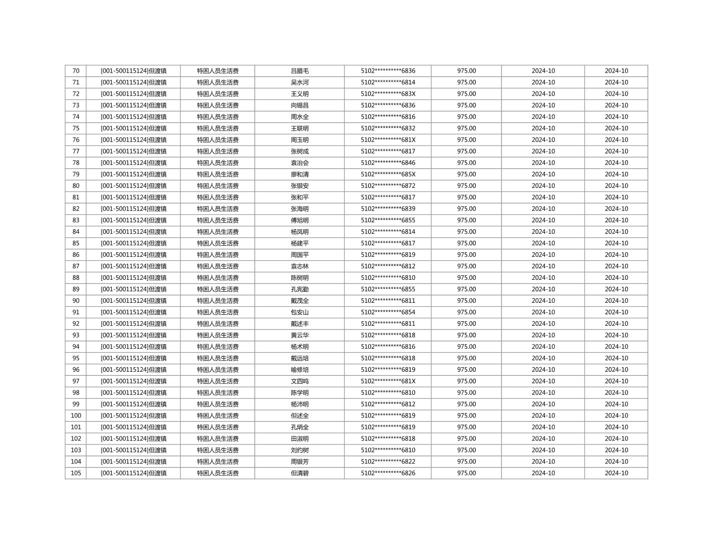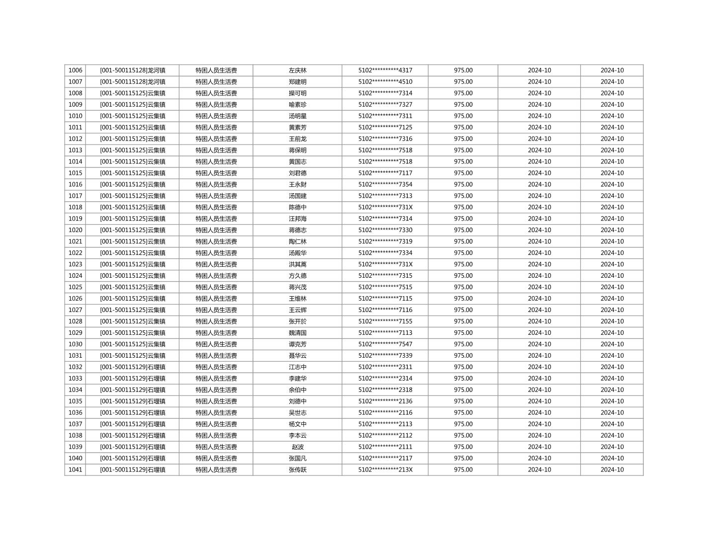 2024年10月重庆市长寿区特困救助供养资金发放情况
