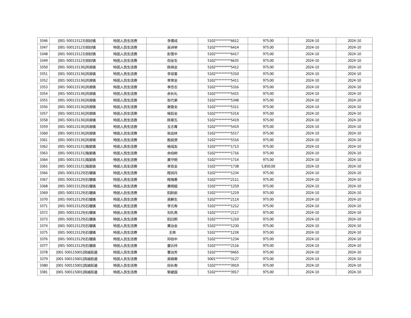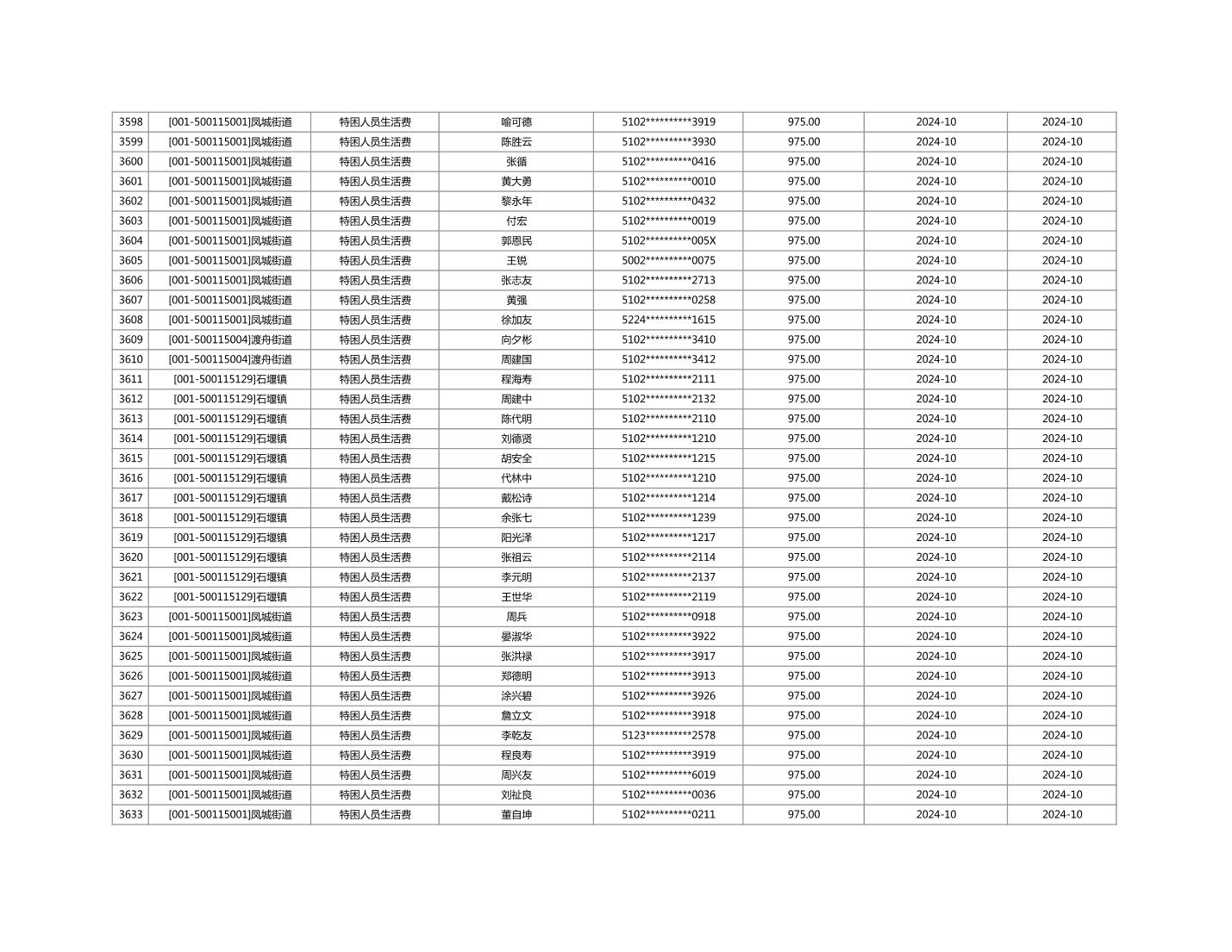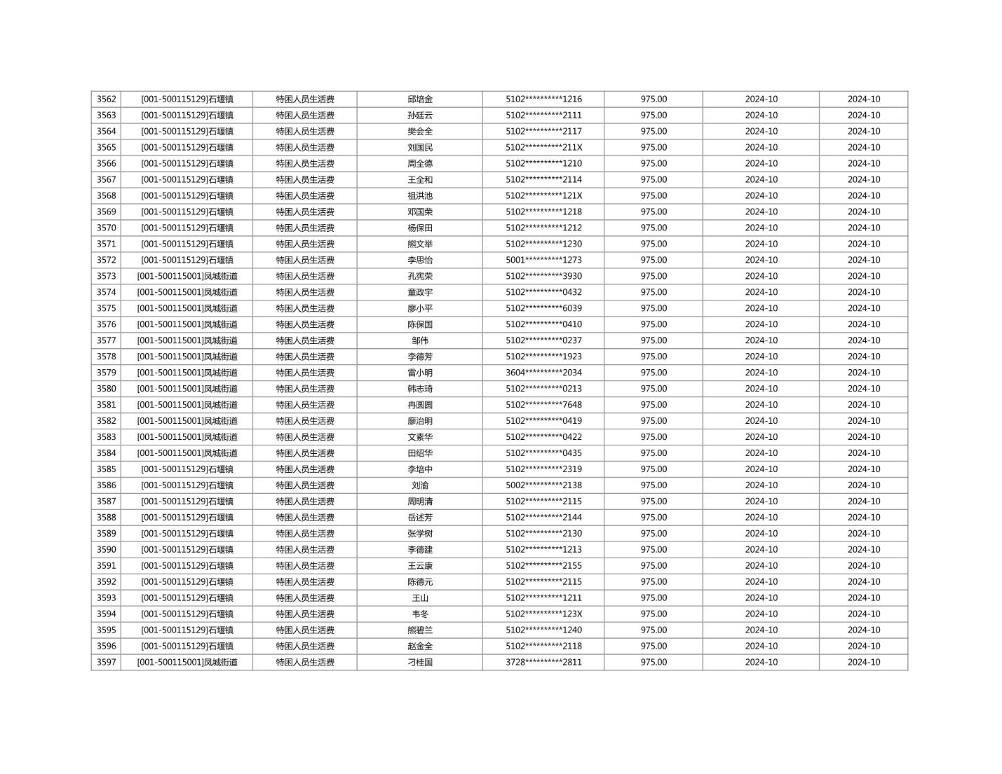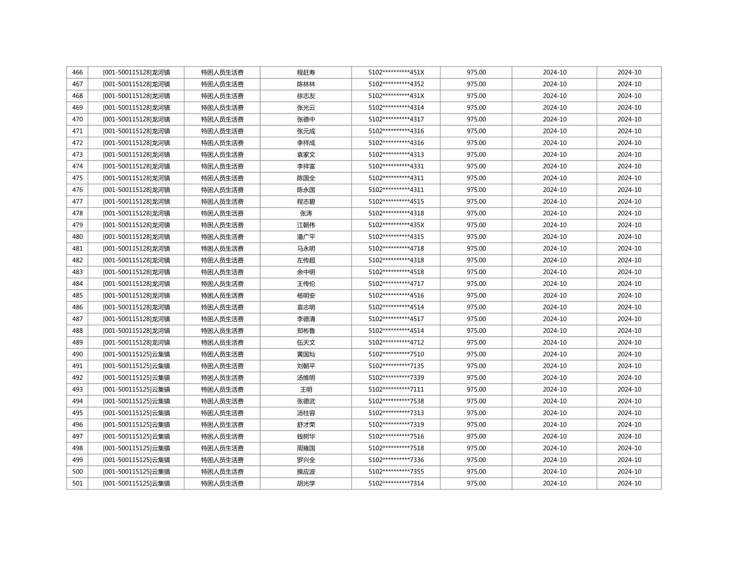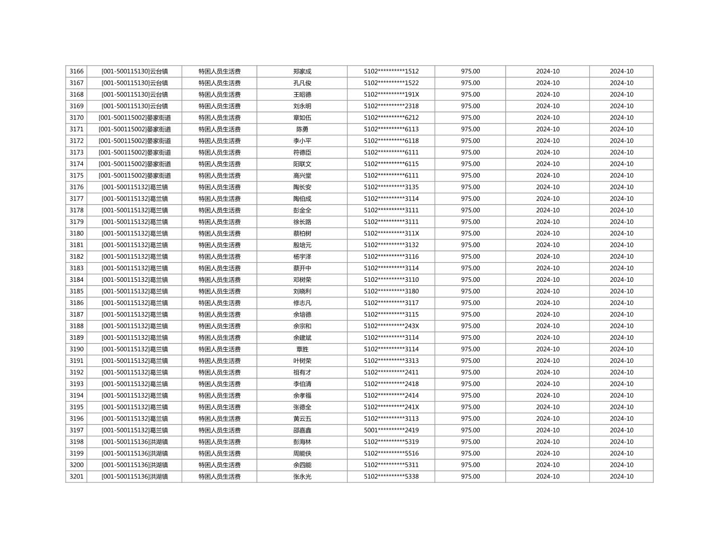 2024年10月重庆市长寿区特困救助供养资金发放情况