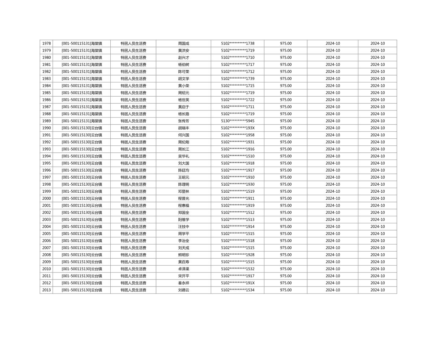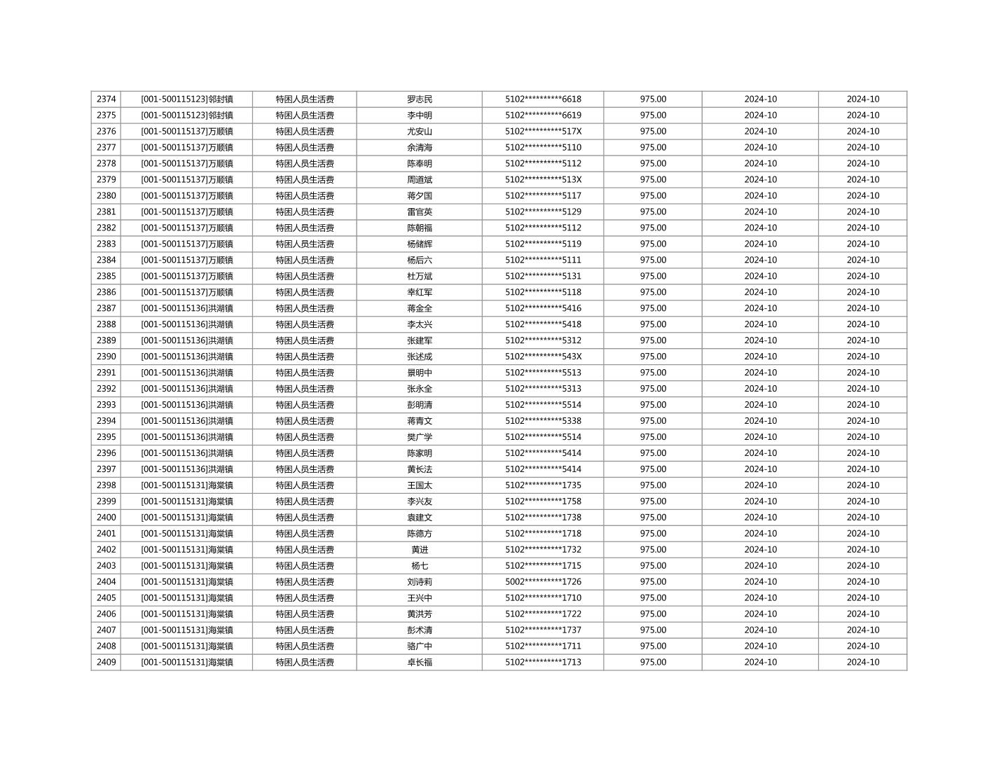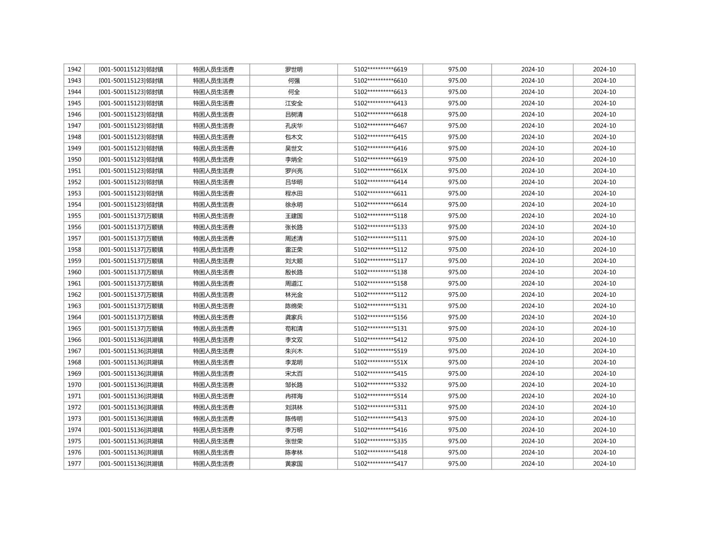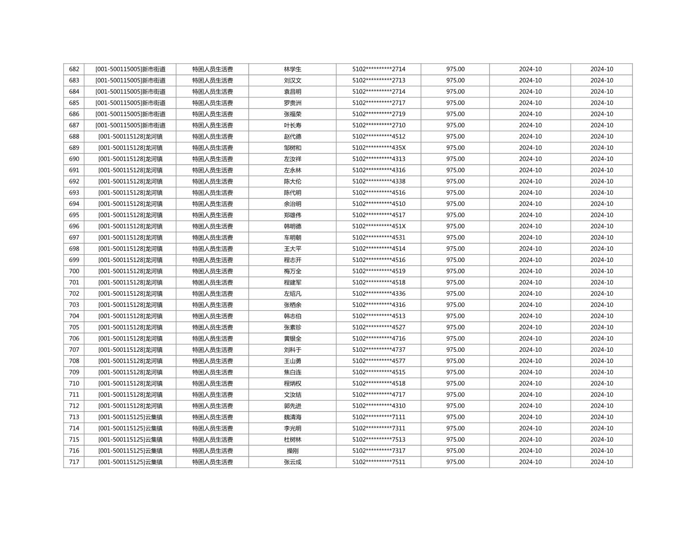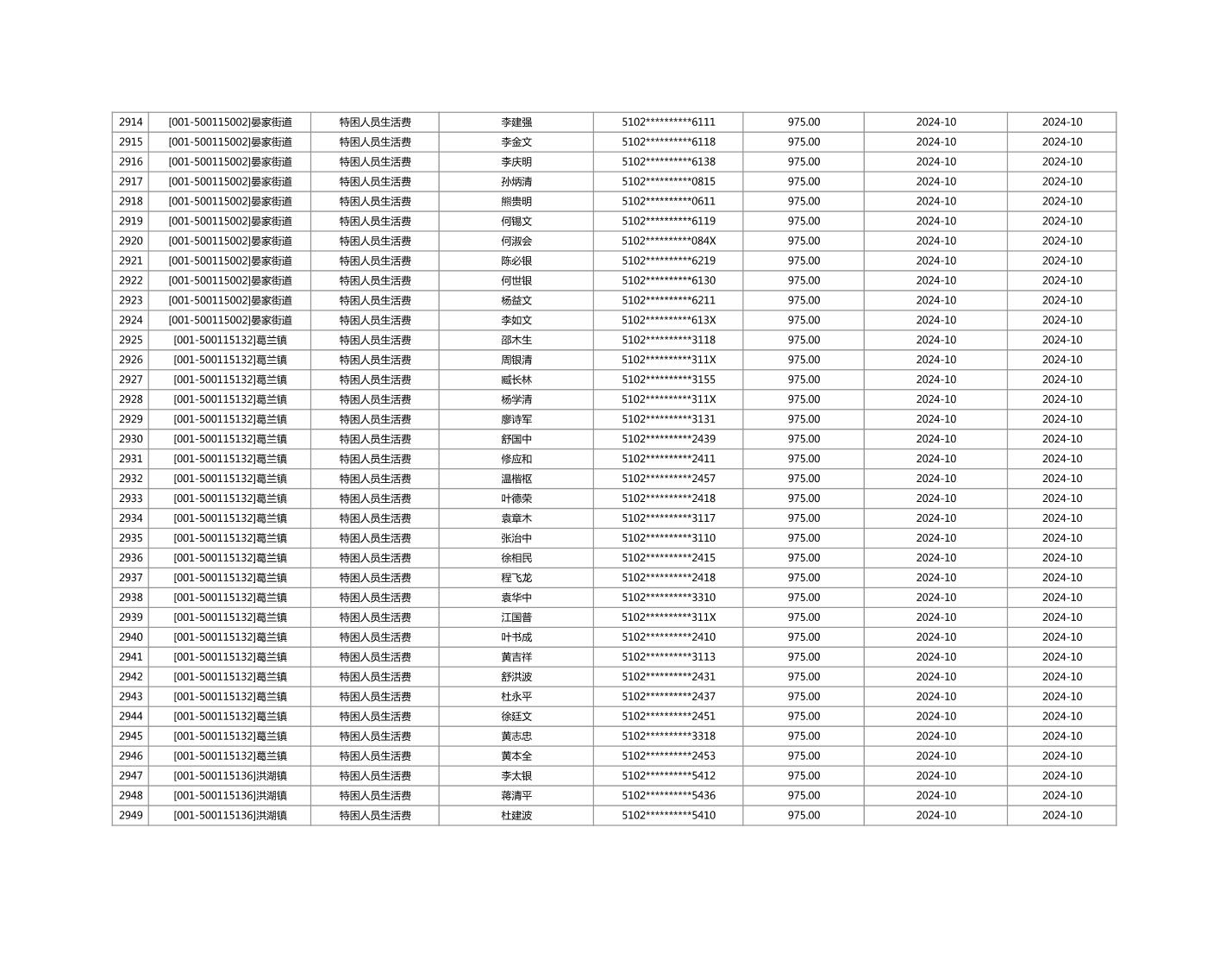 2024年10月重庆市长寿区特困救助供养资金发放情况