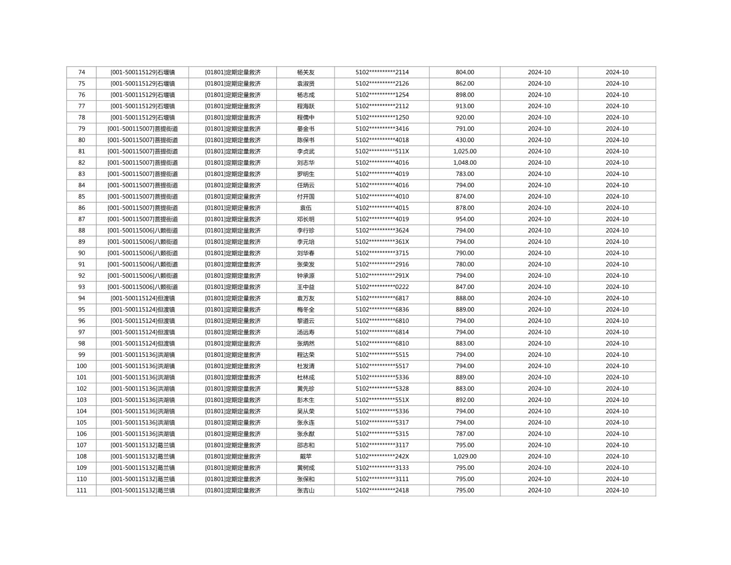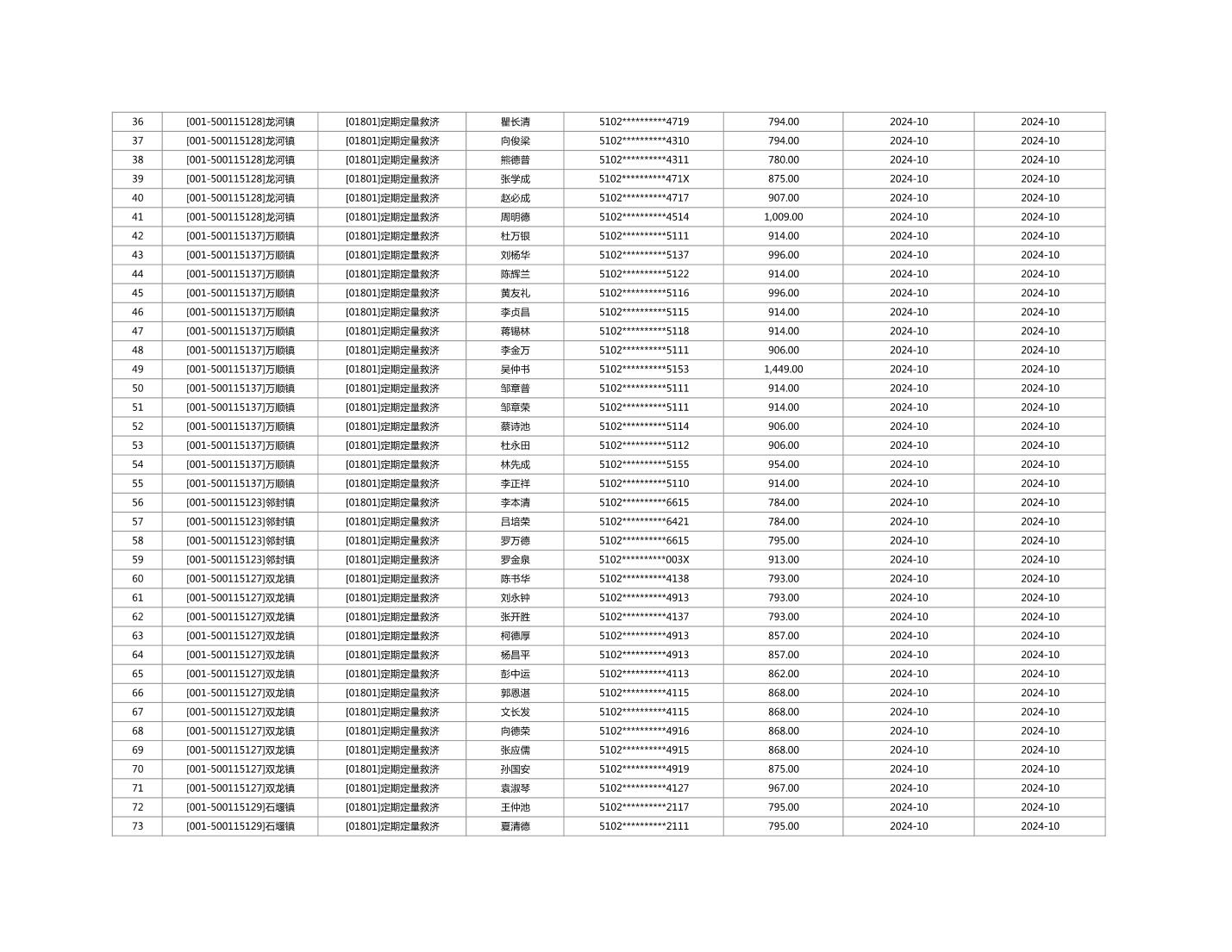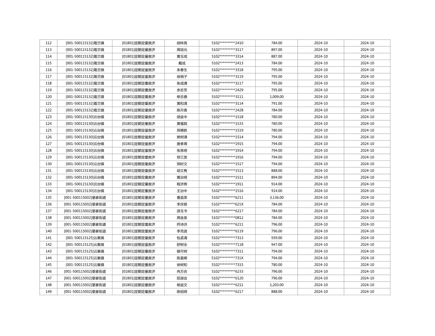2024年10月重庆市长寿区定期定量救济金发放情况