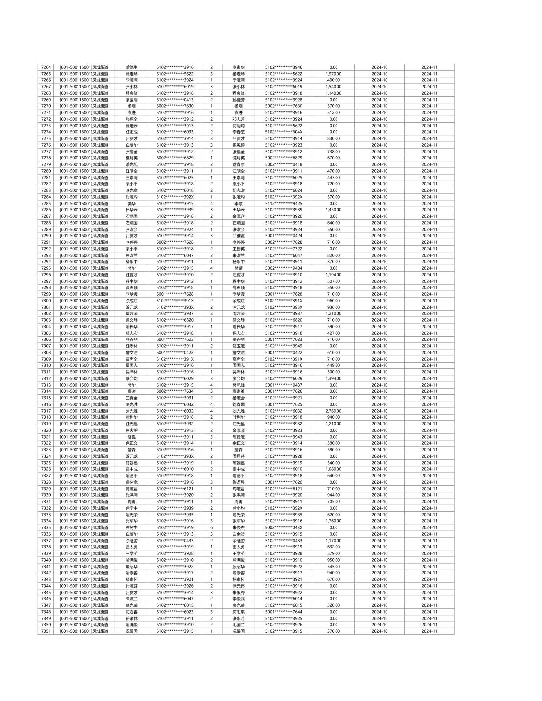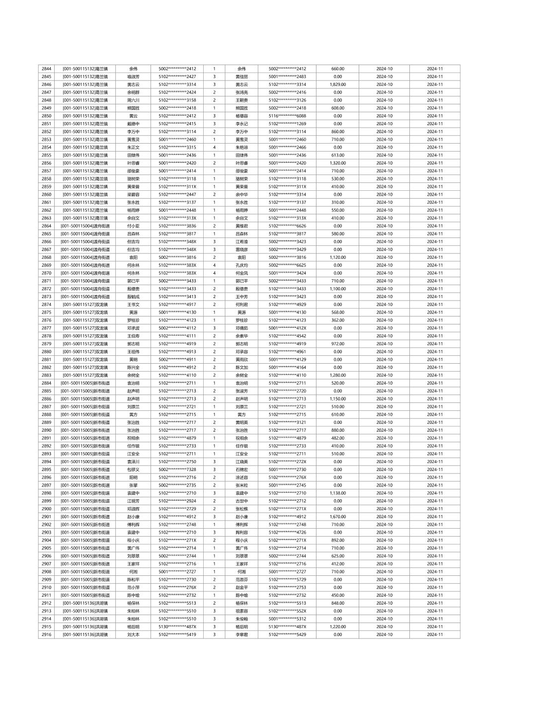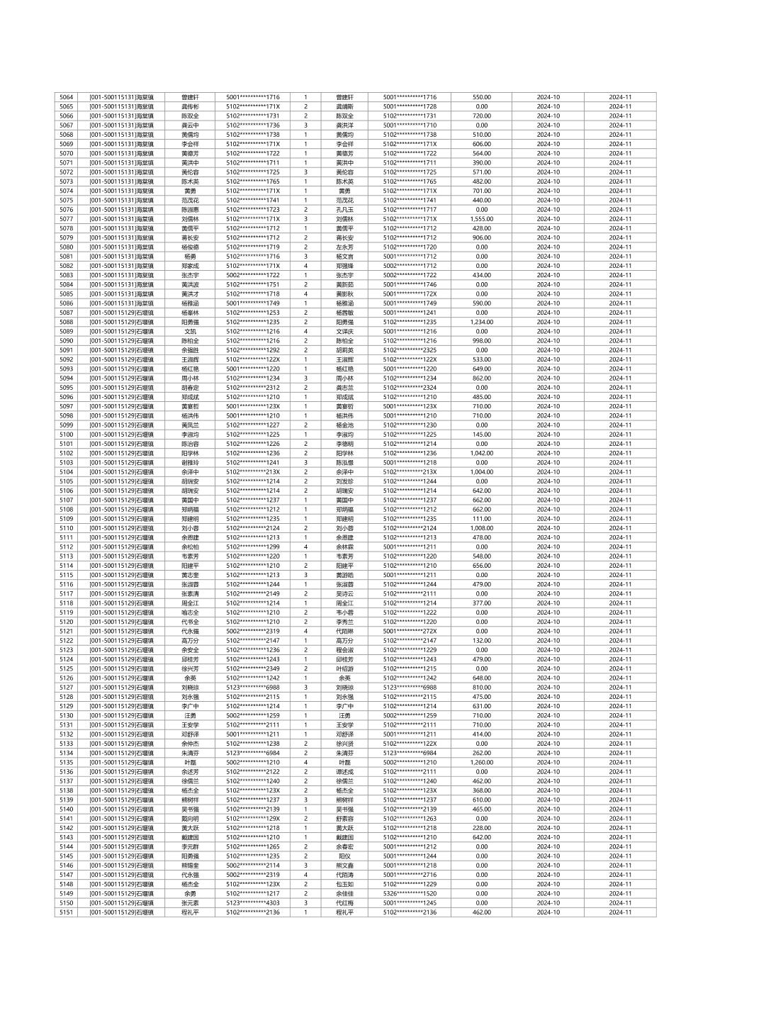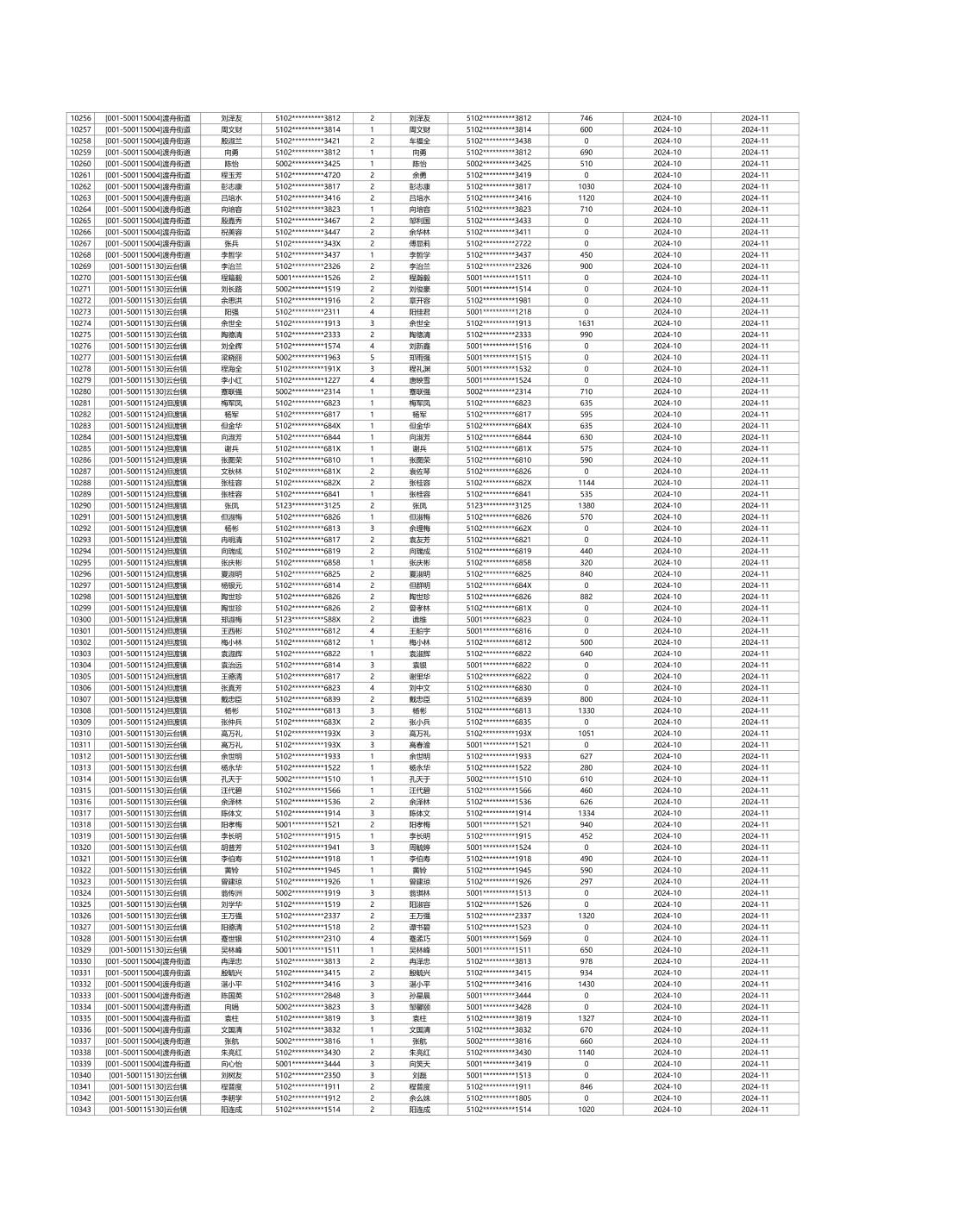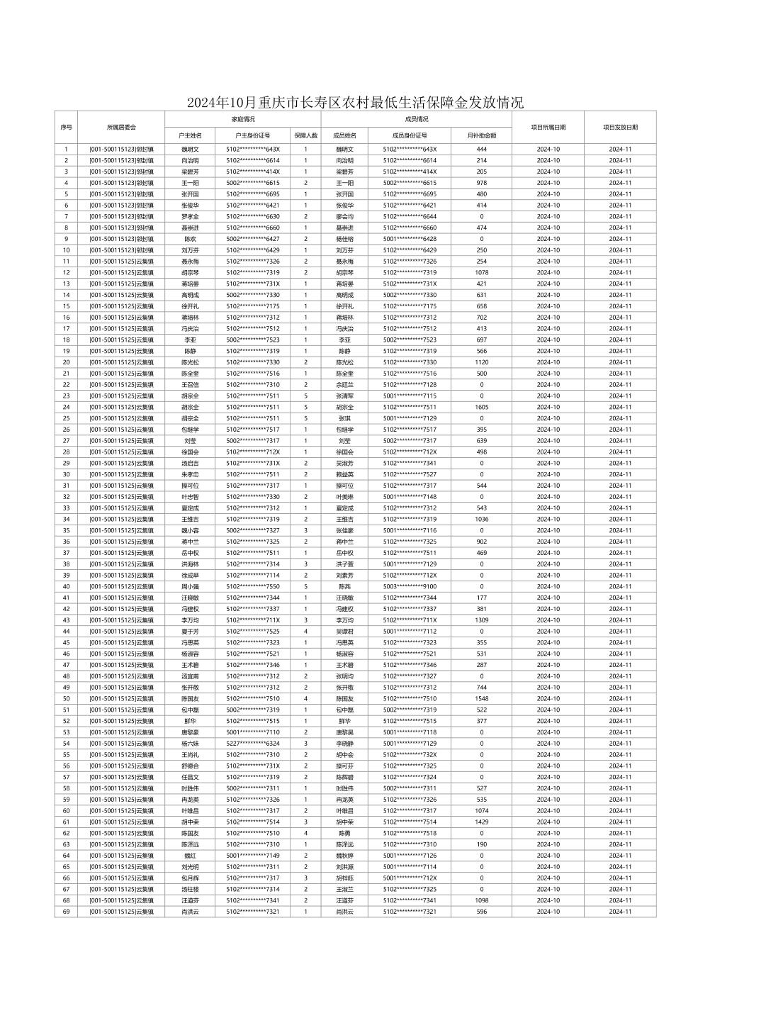 2024年10月重庆市长寿区农村最低生活保障金发放情况