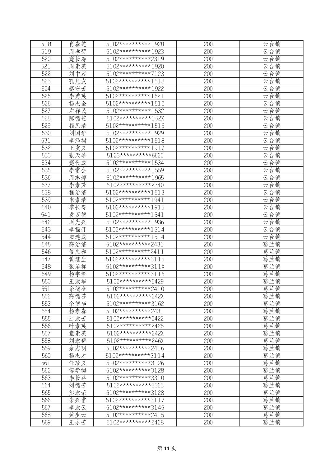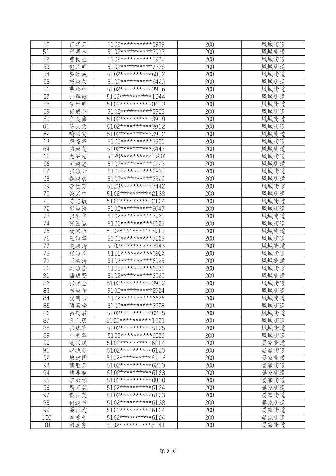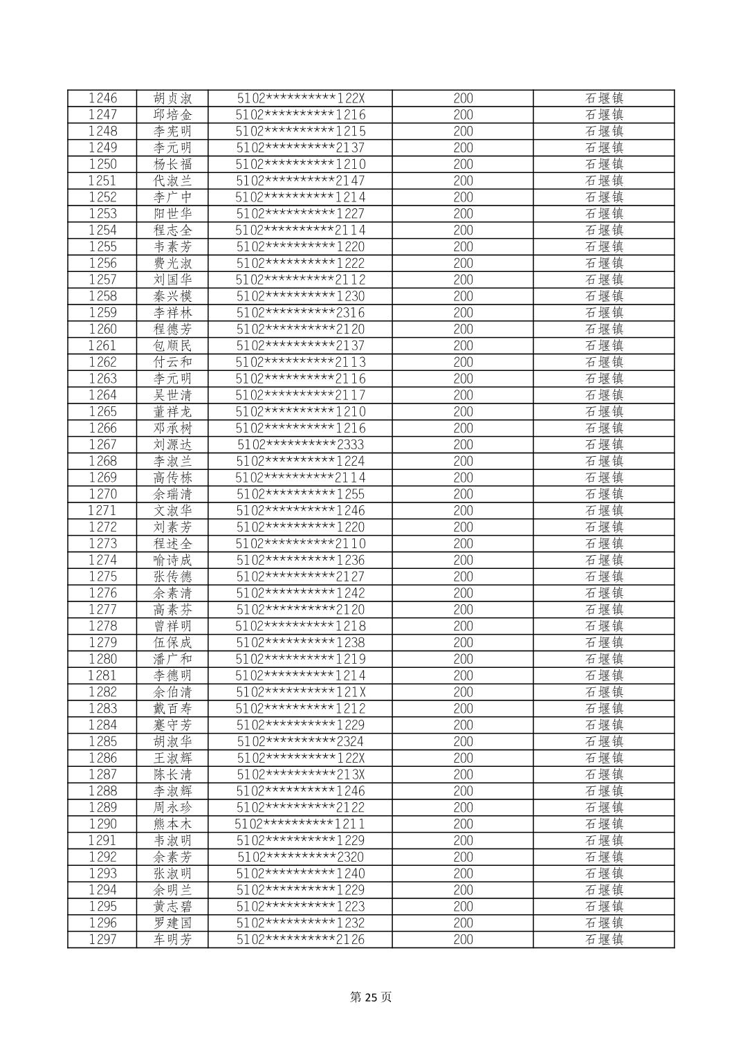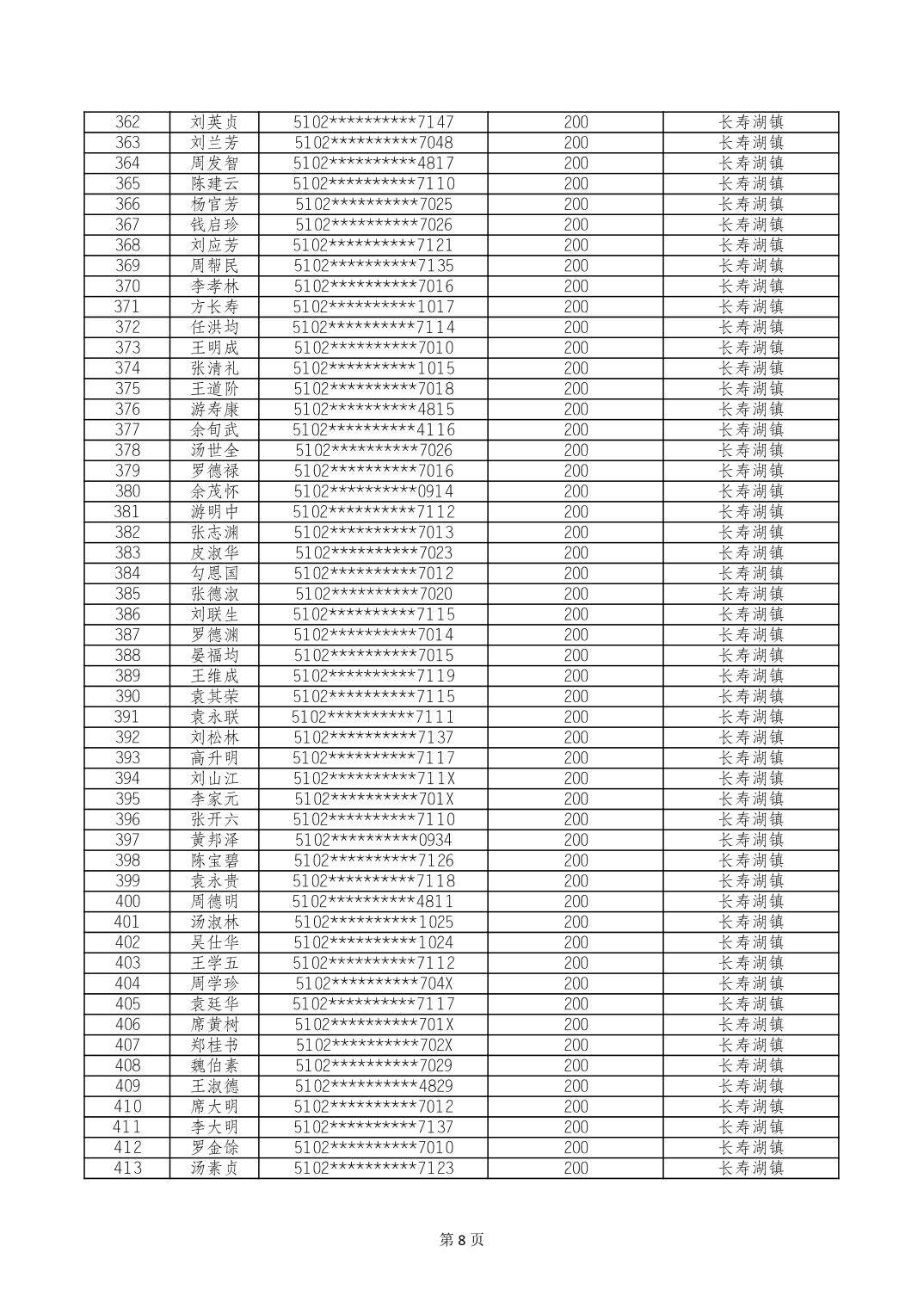 重庆市长寿区经济困难的高龄失能老年人养老服务补贴 2024年10月发放明细