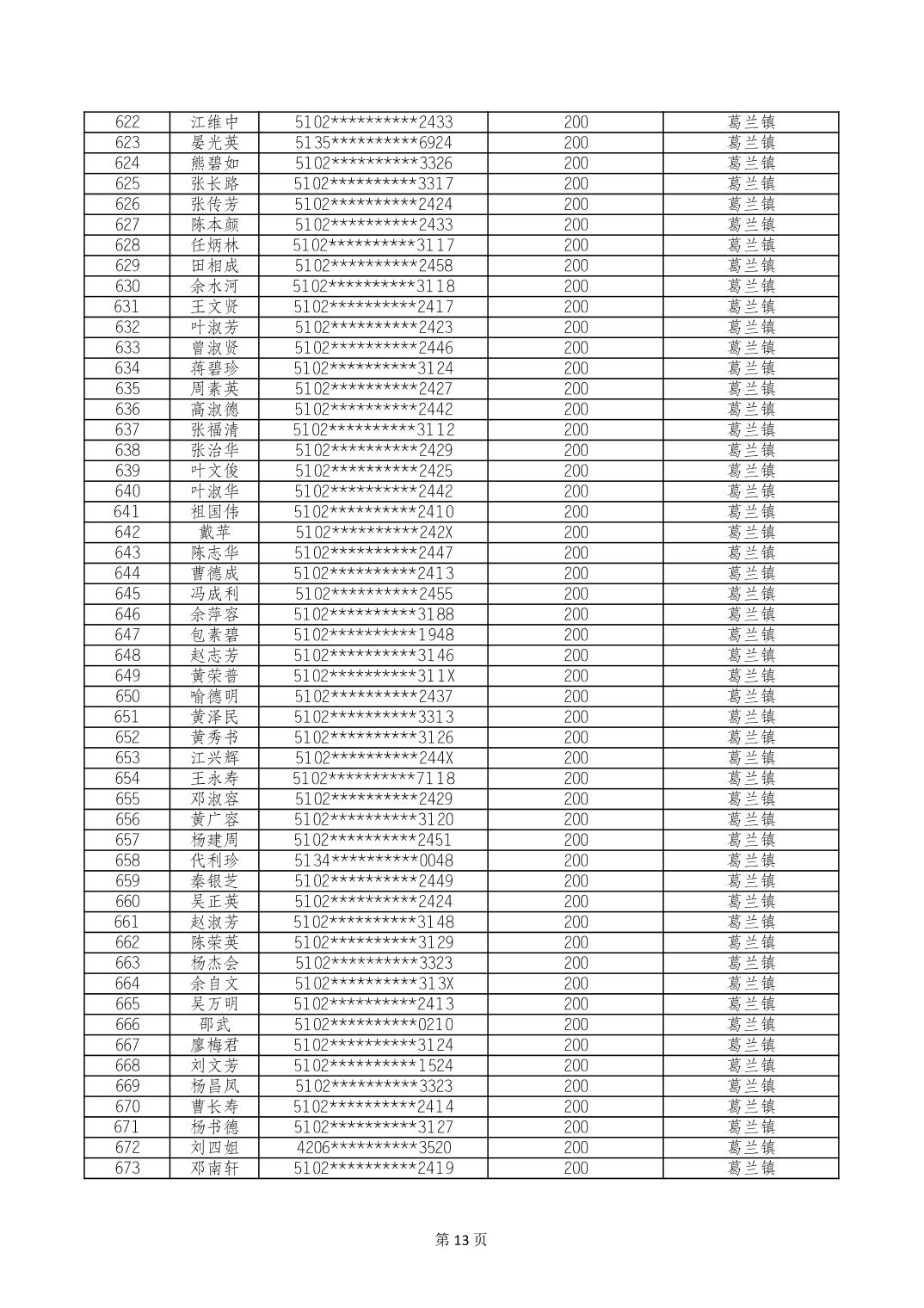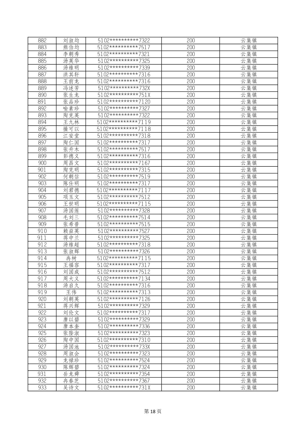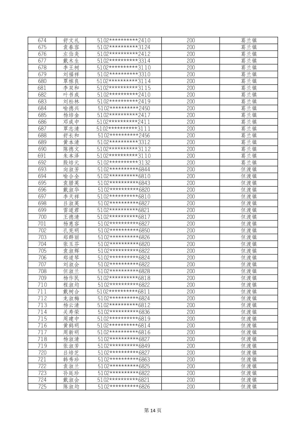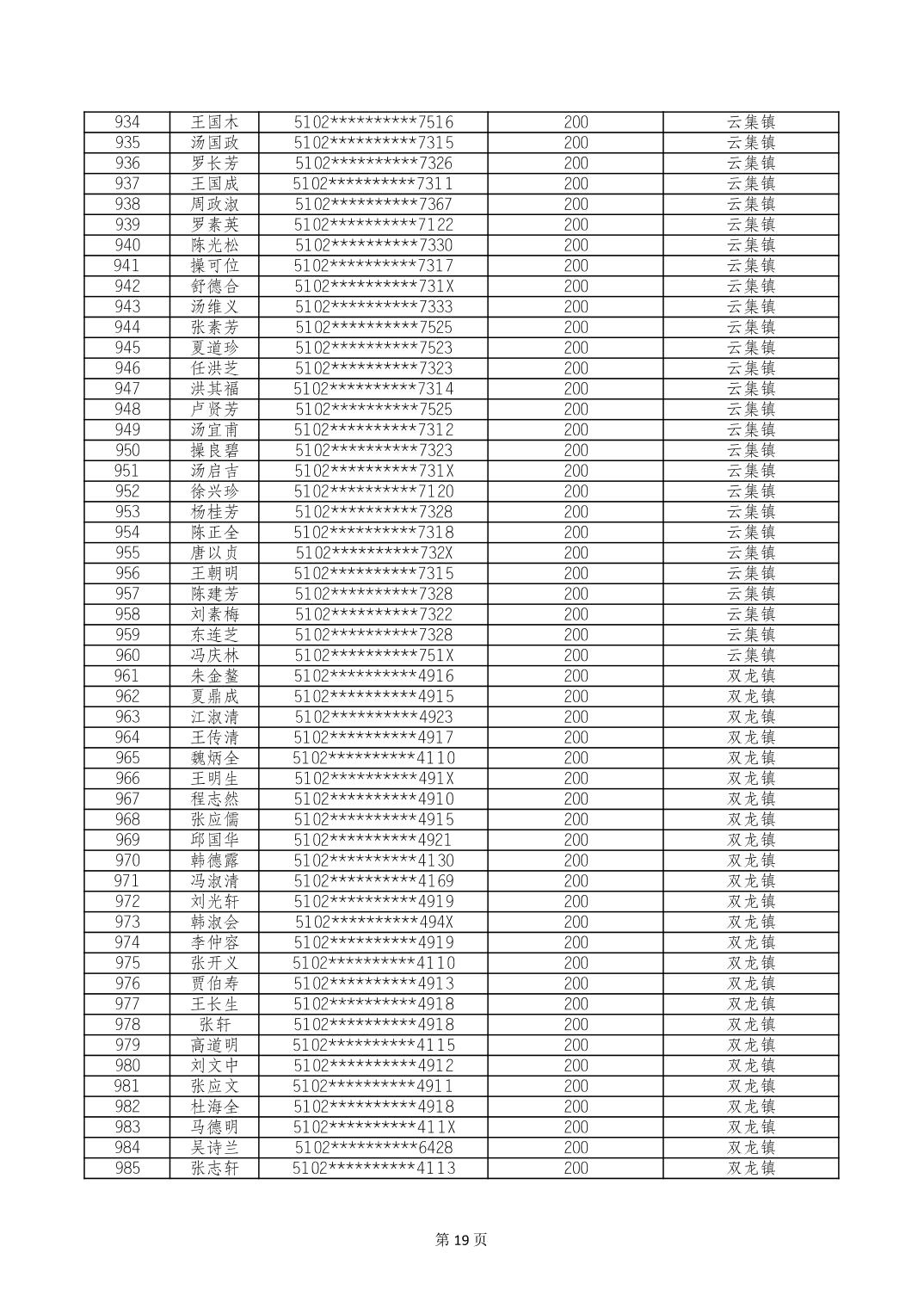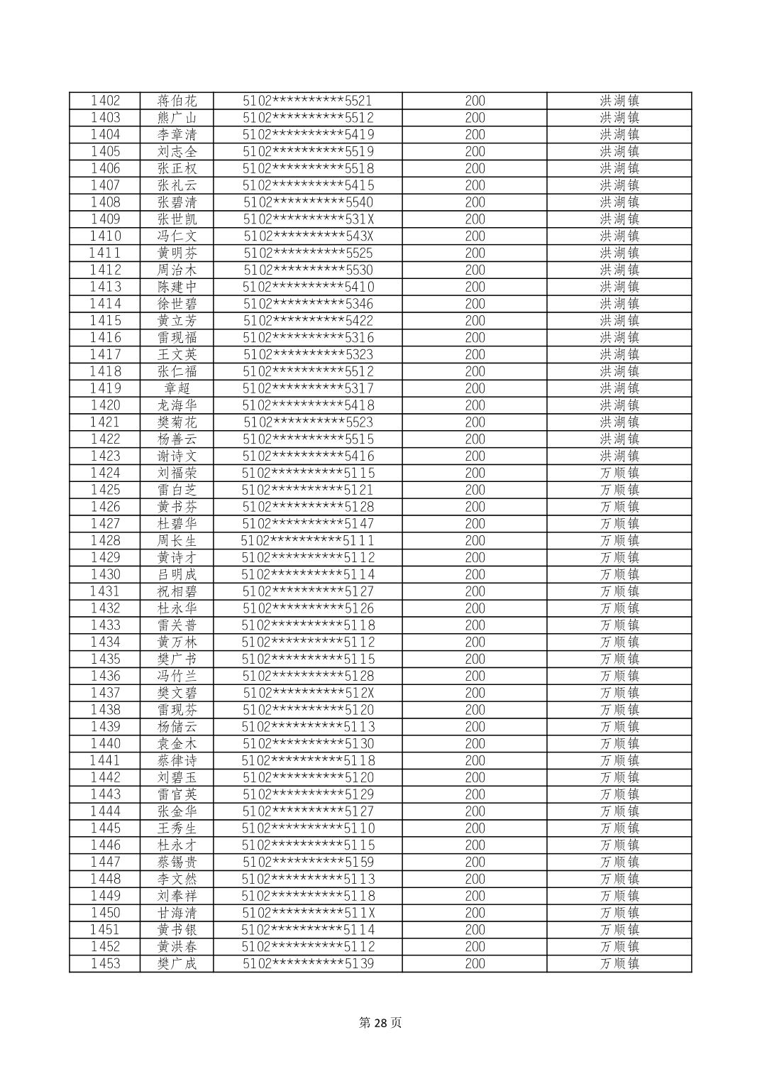 重庆市长寿区经济困难的高龄失能老年人养老服务补贴 2024年10月发放明细