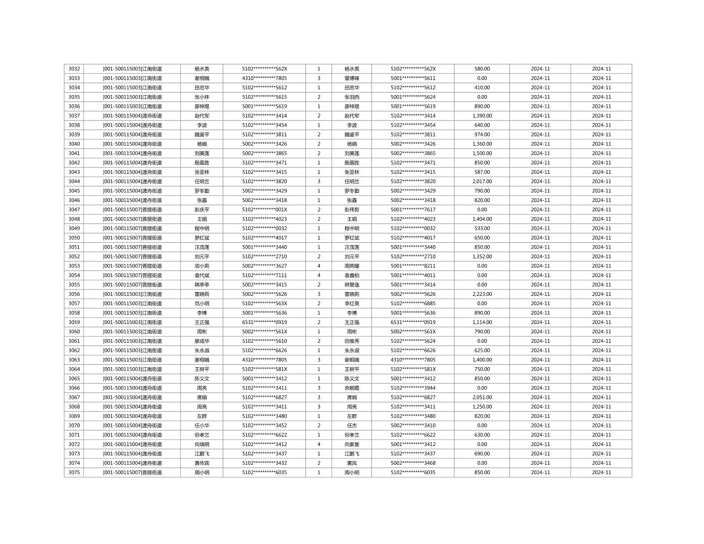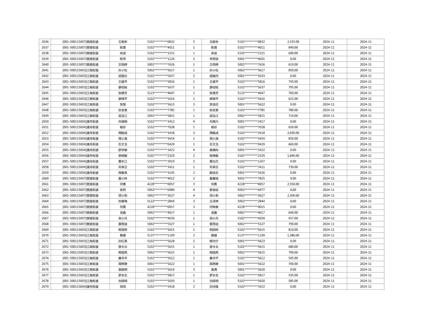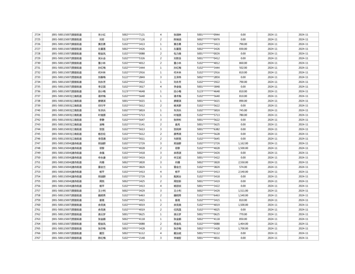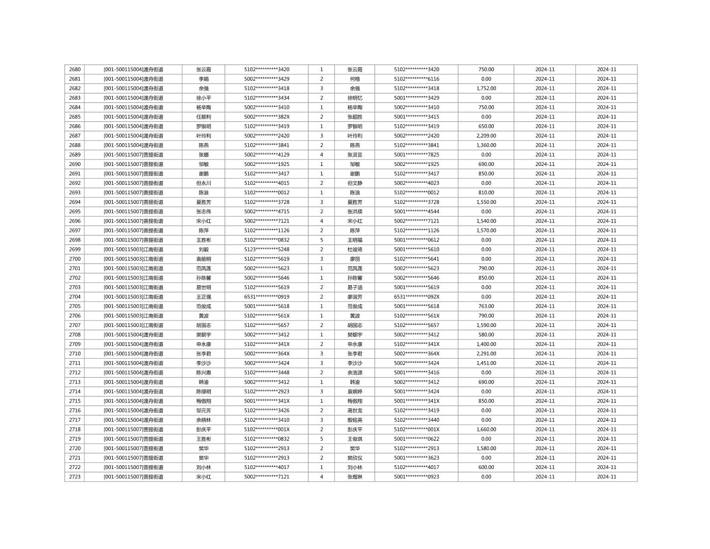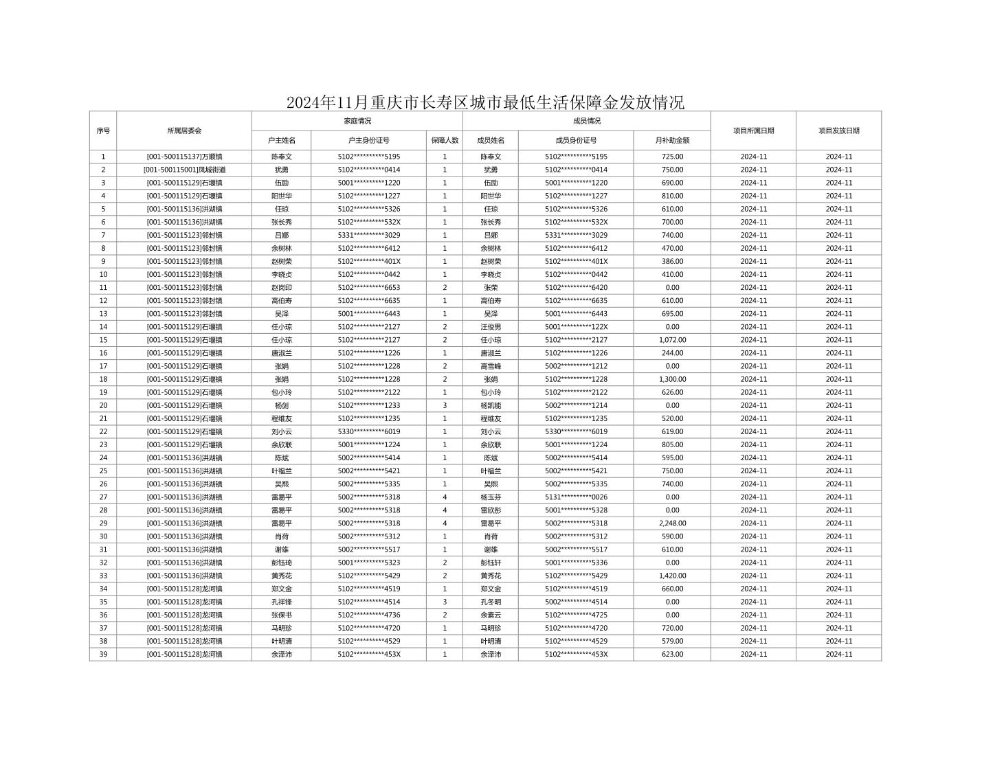 2024年11月重庆市长寿区城市最低生活保障金发放情况