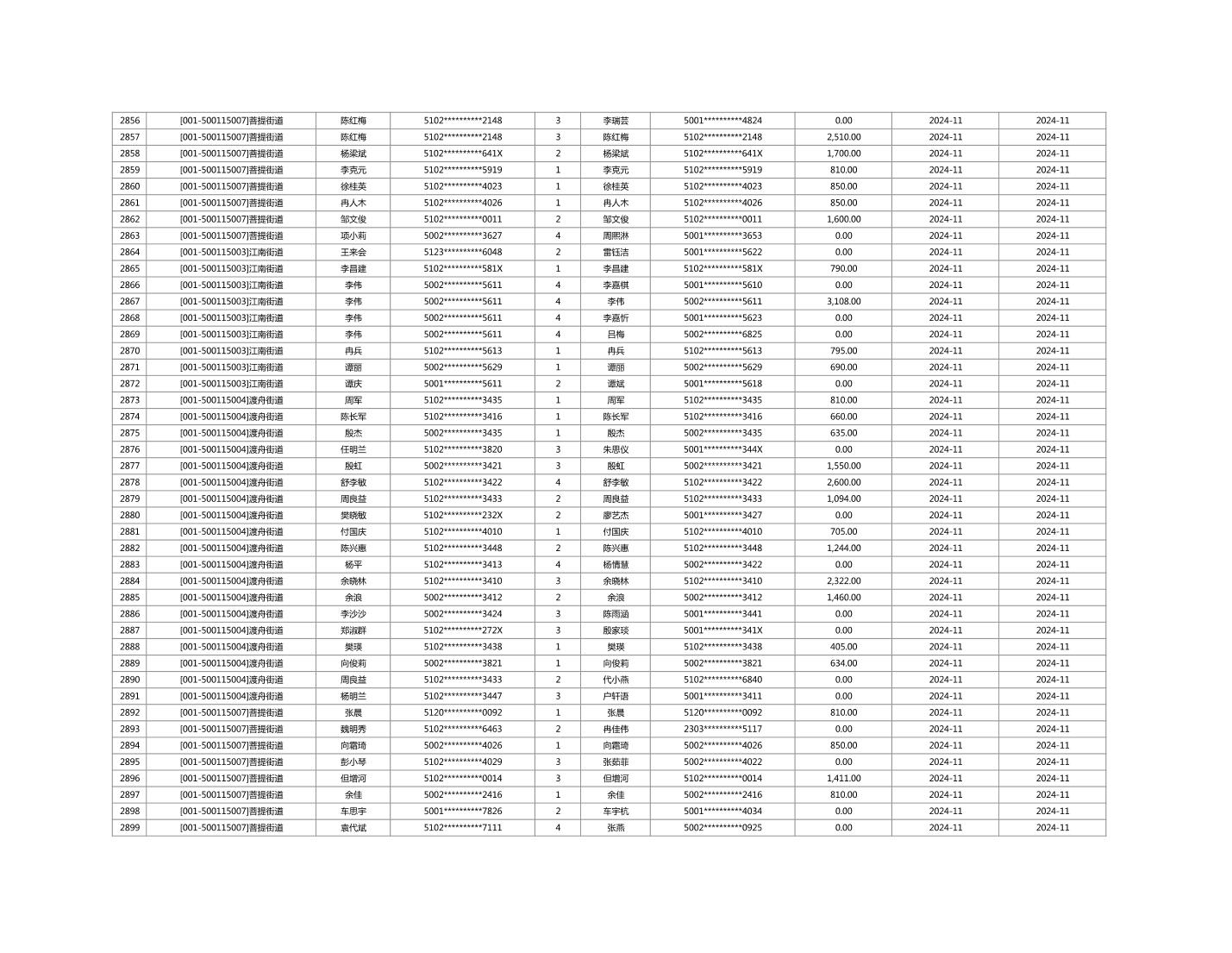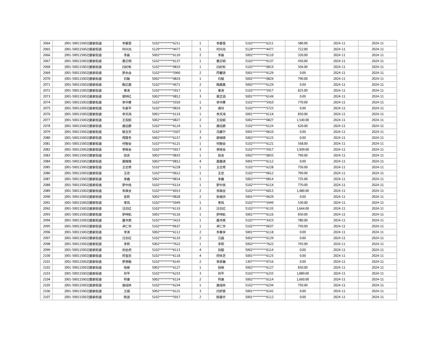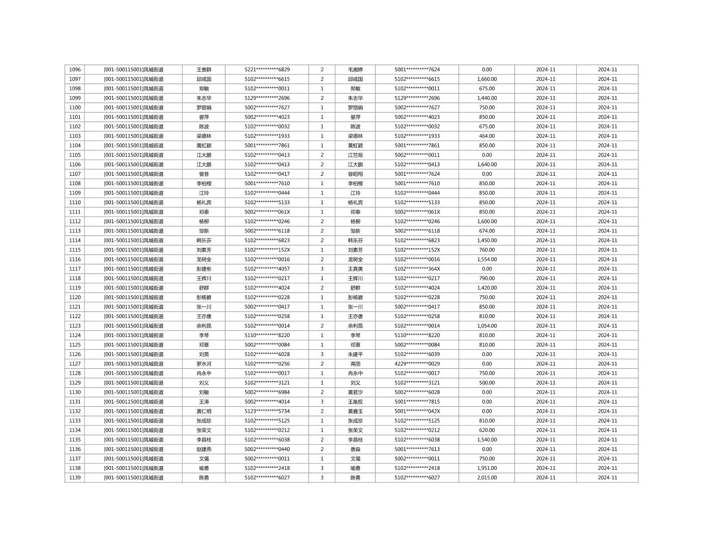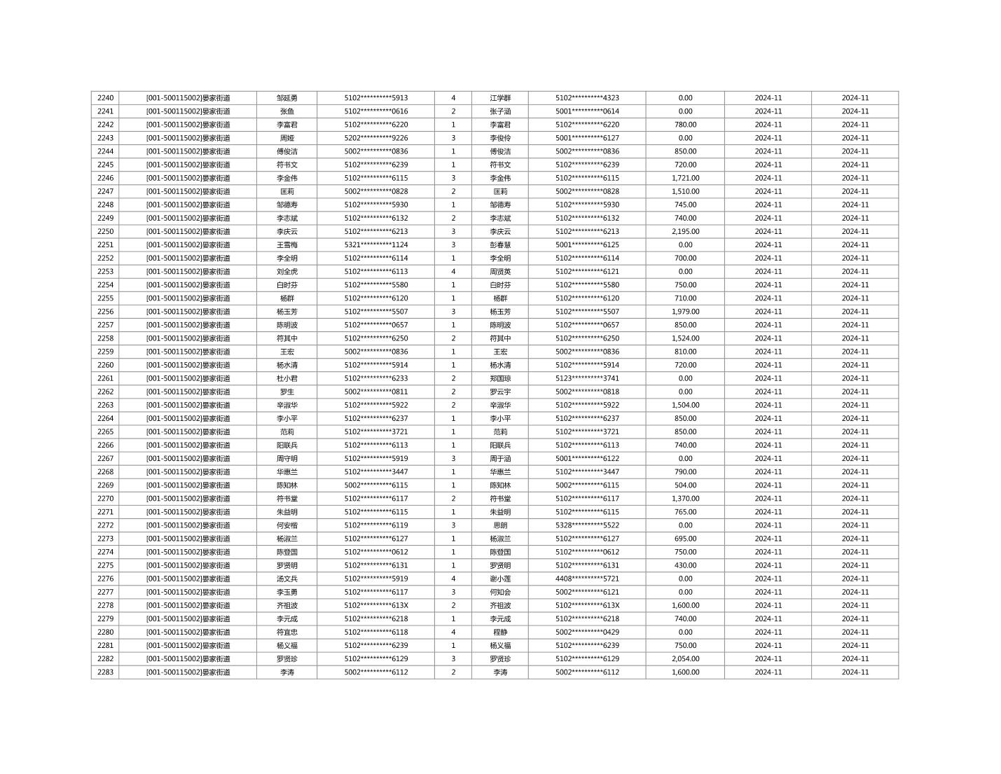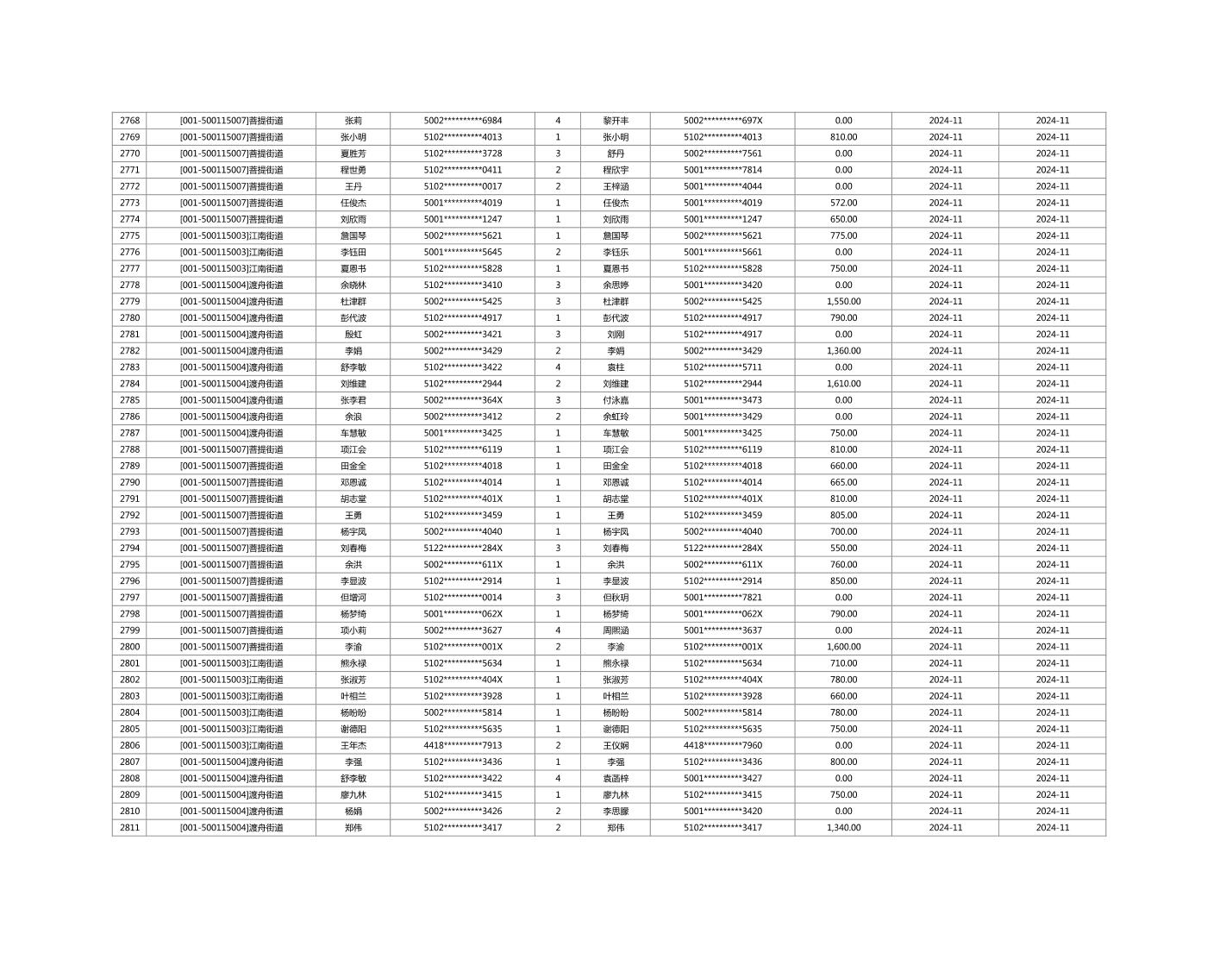 2024年11月重庆市长寿区城市最低生活保障金发放情况