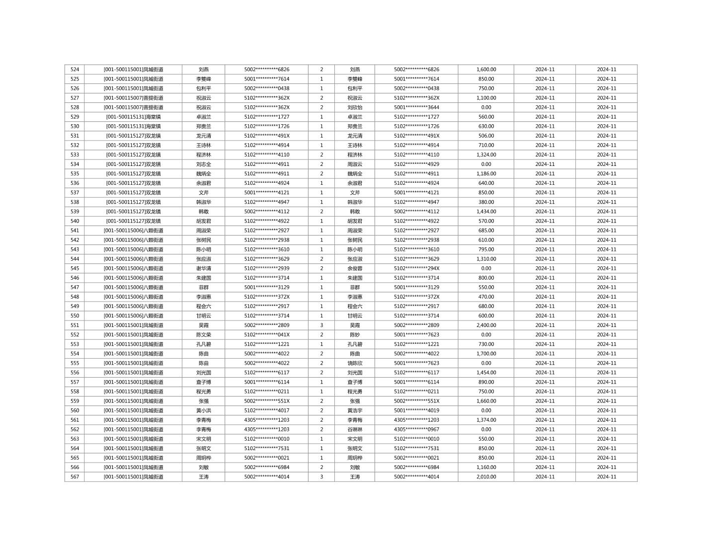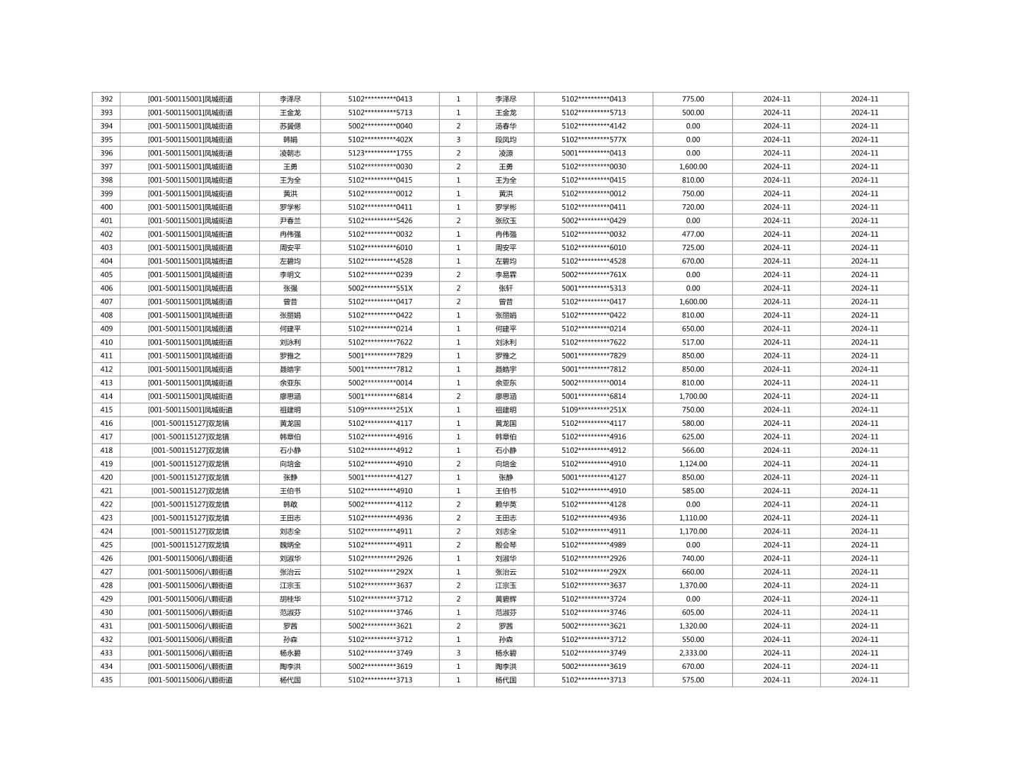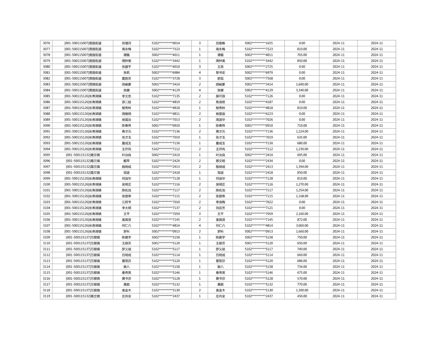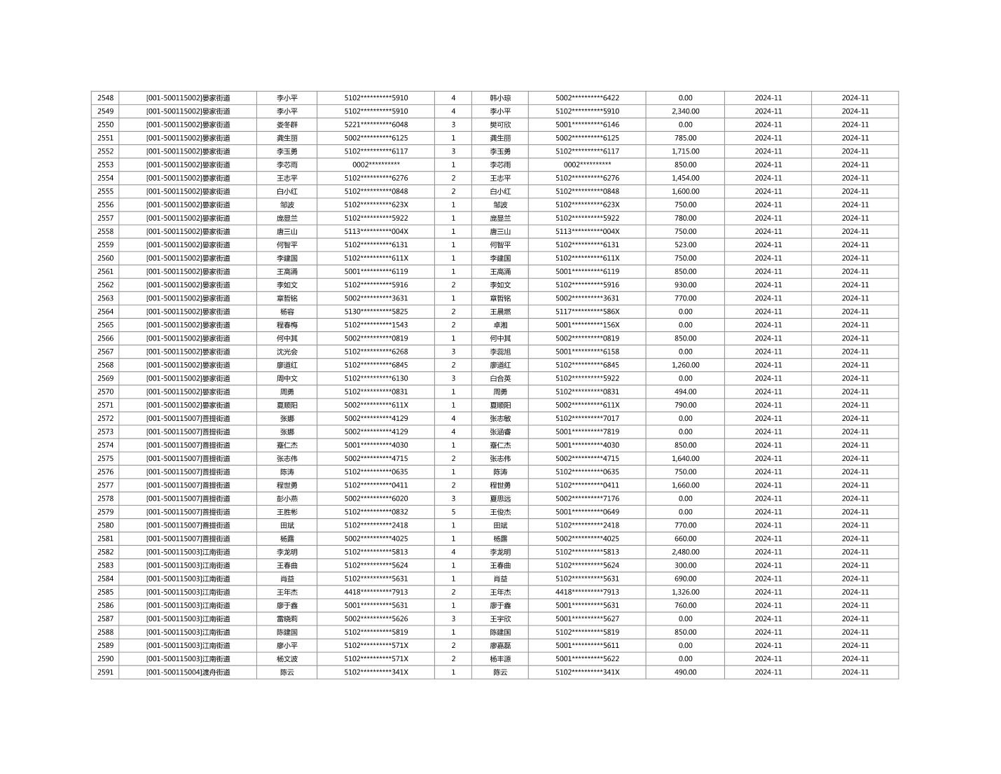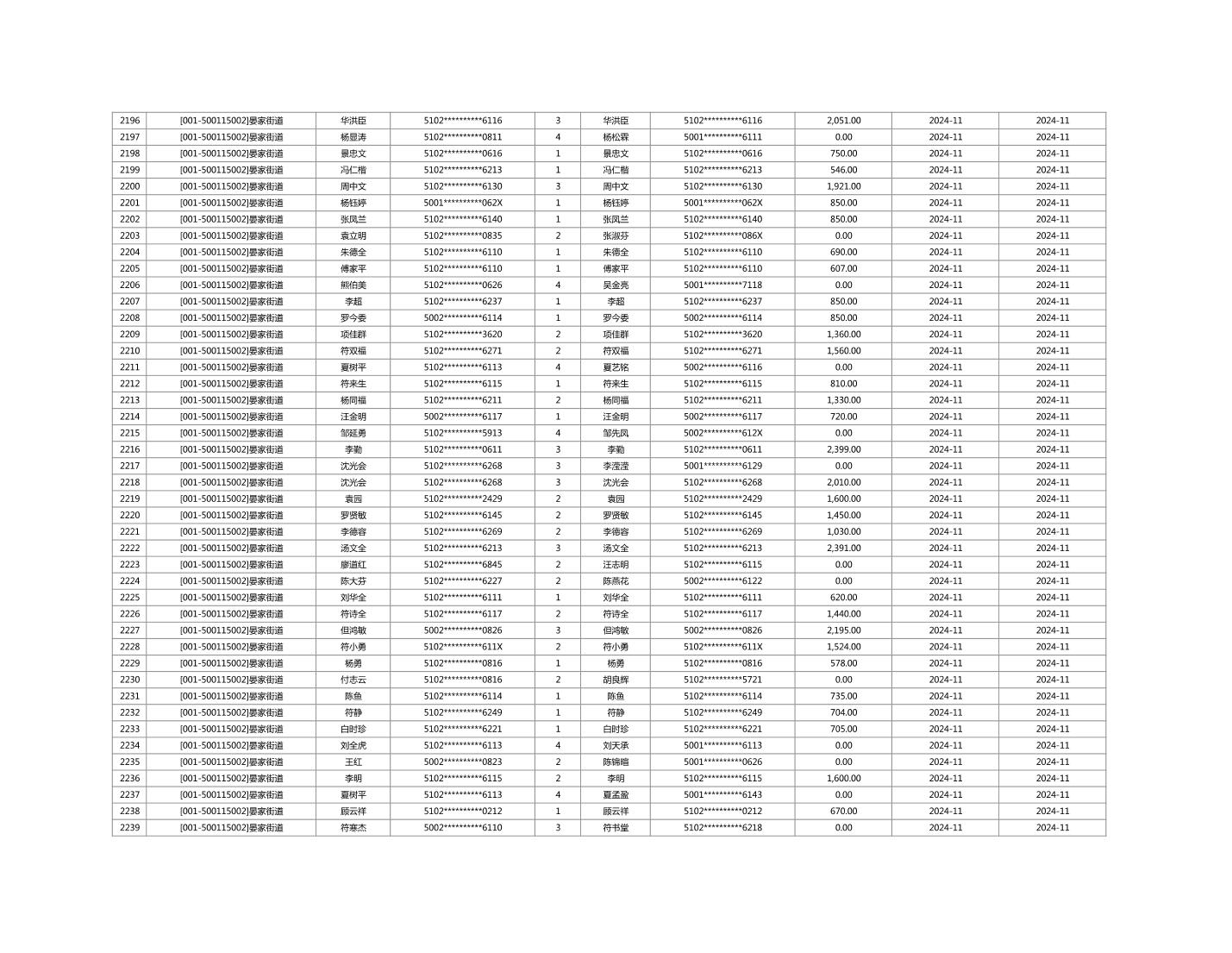 2024年11月重庆市长寿区城市最低生活保障金发放情况