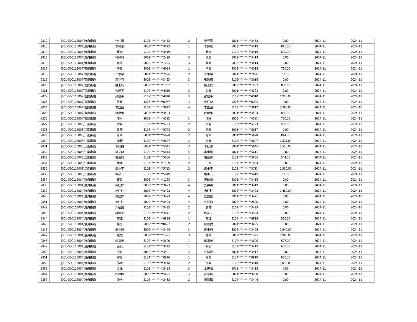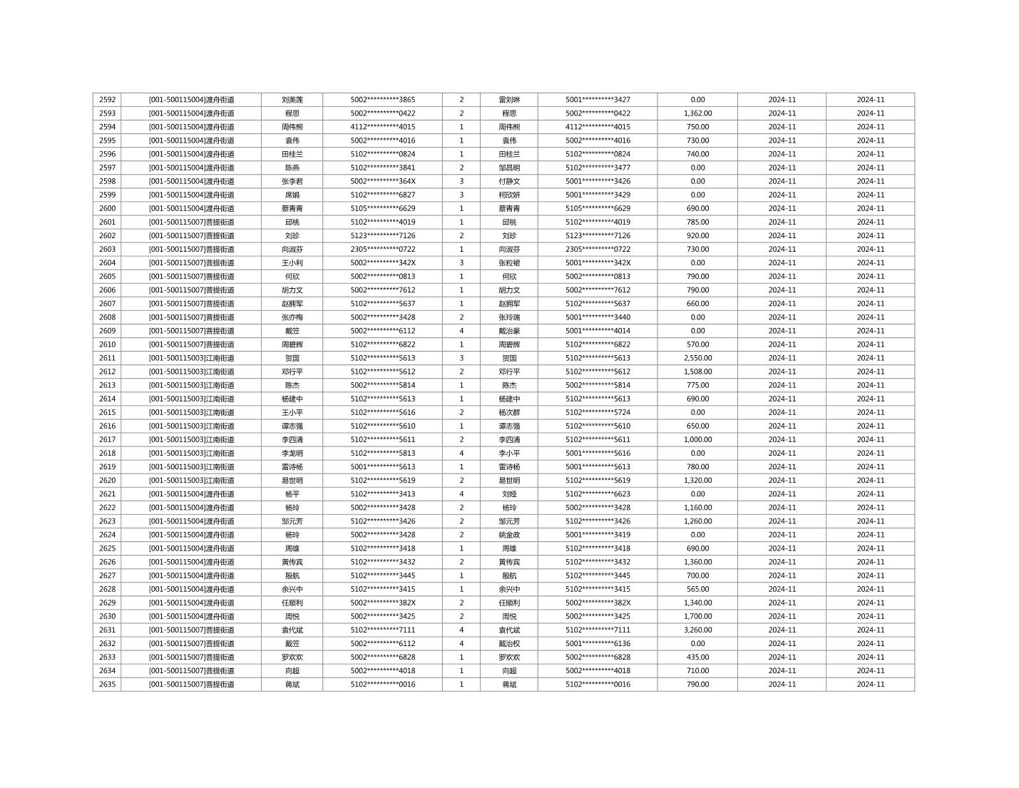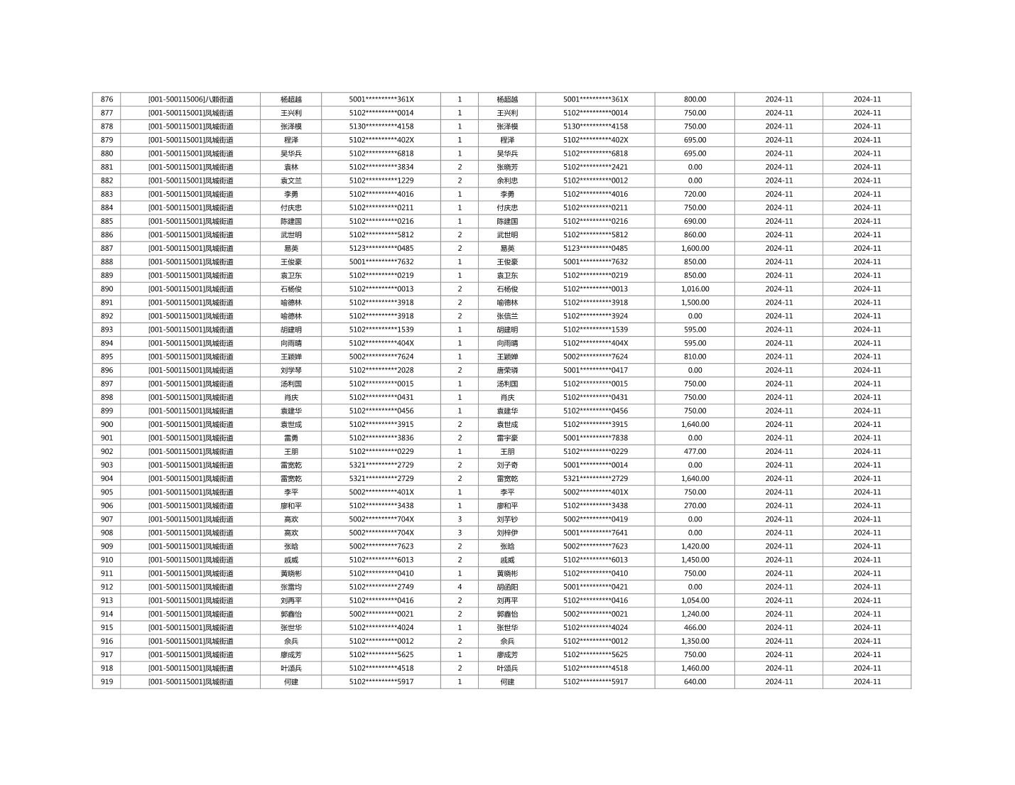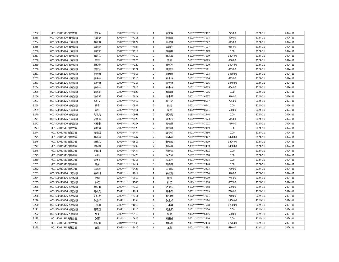2024年11月重庆市长寿区城市最低生活保障金发放情况