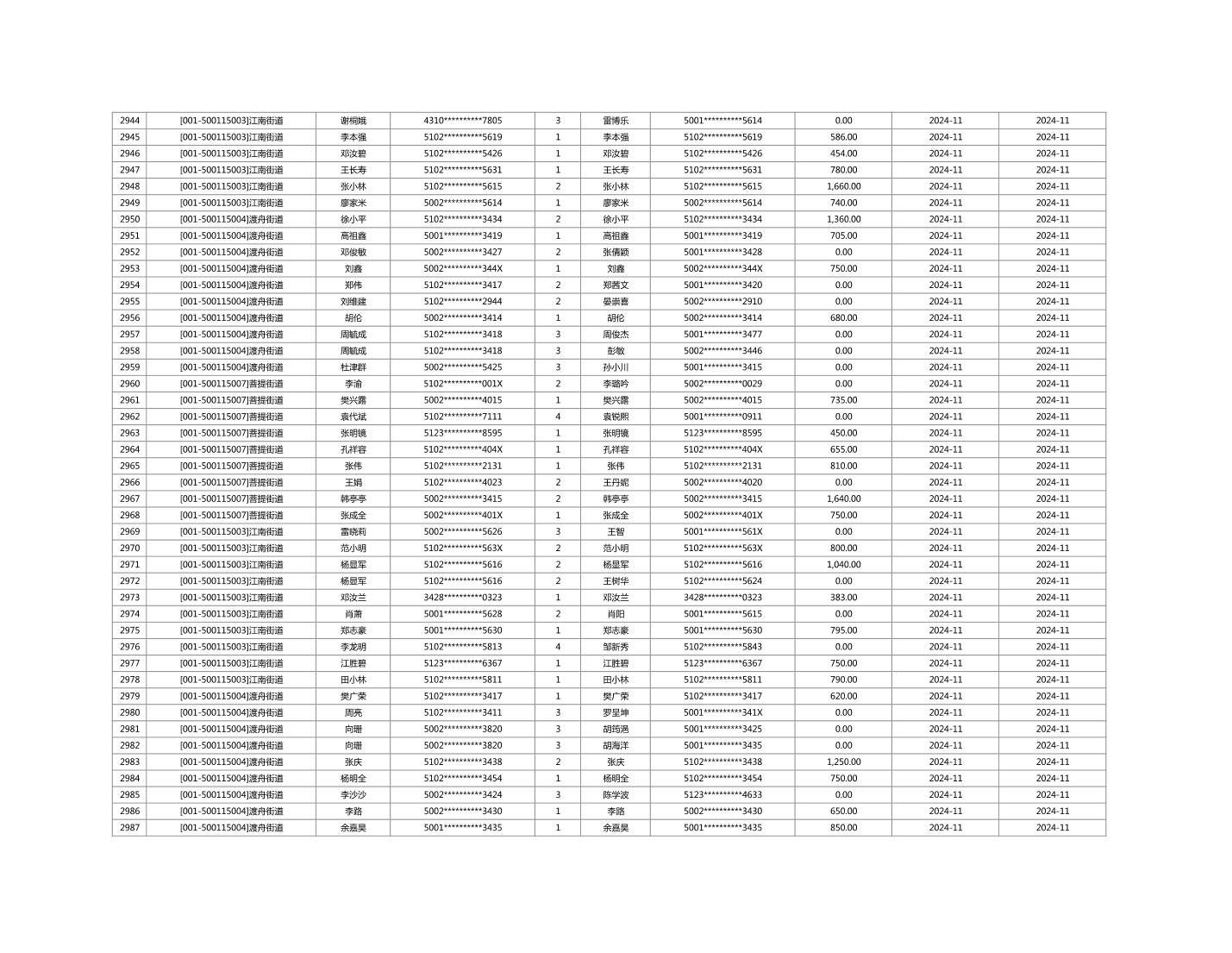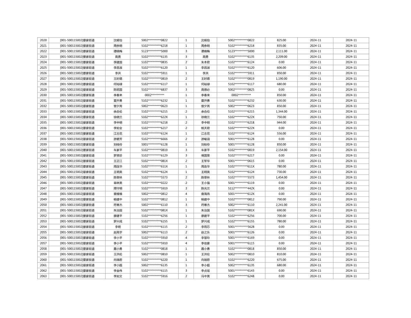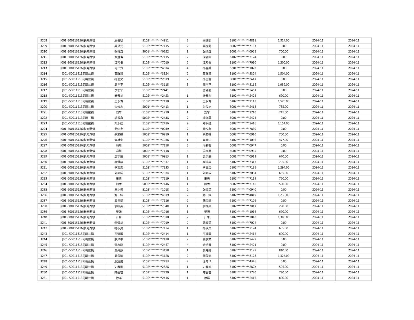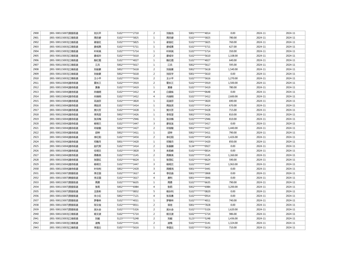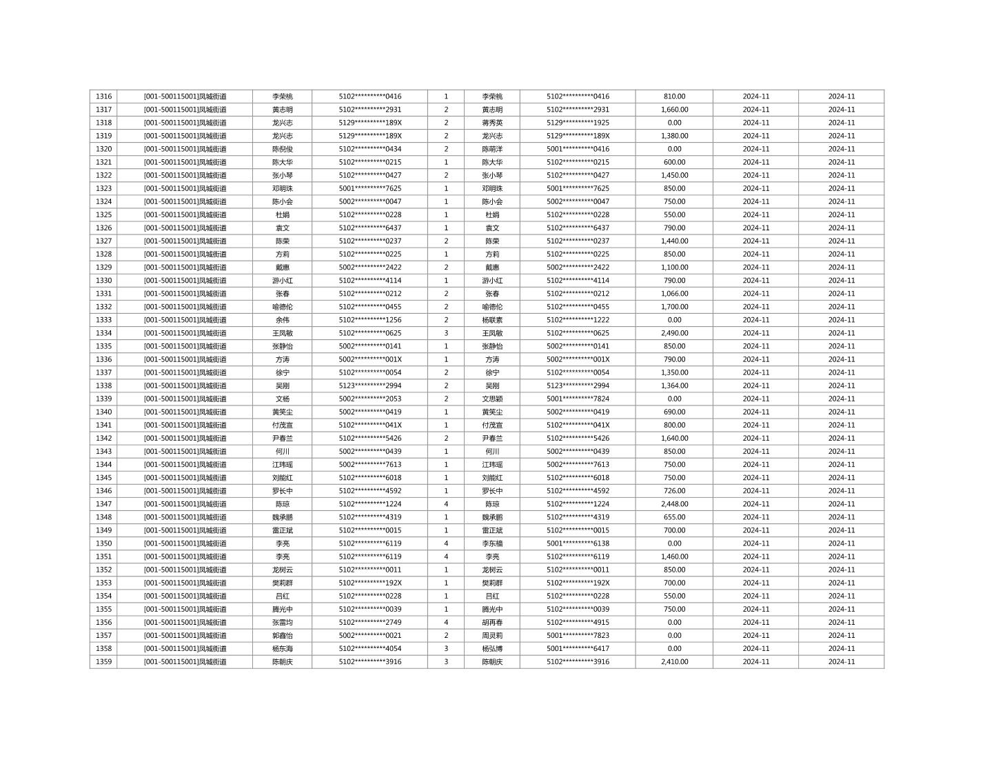 2024年11月重庆市长寿区城市最低生活保障金发放情况