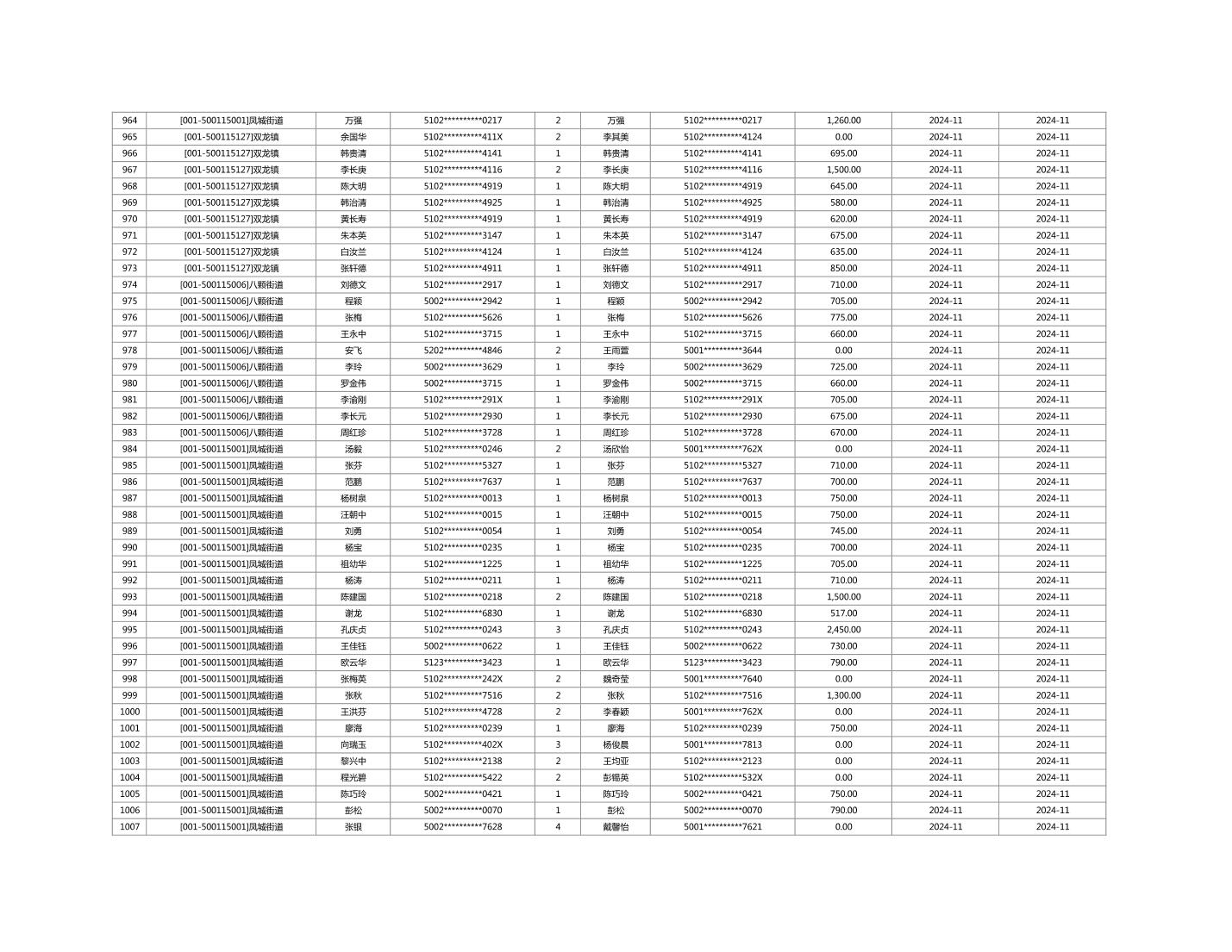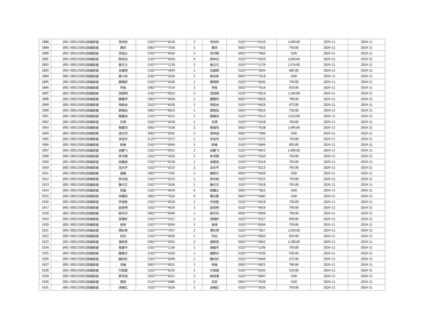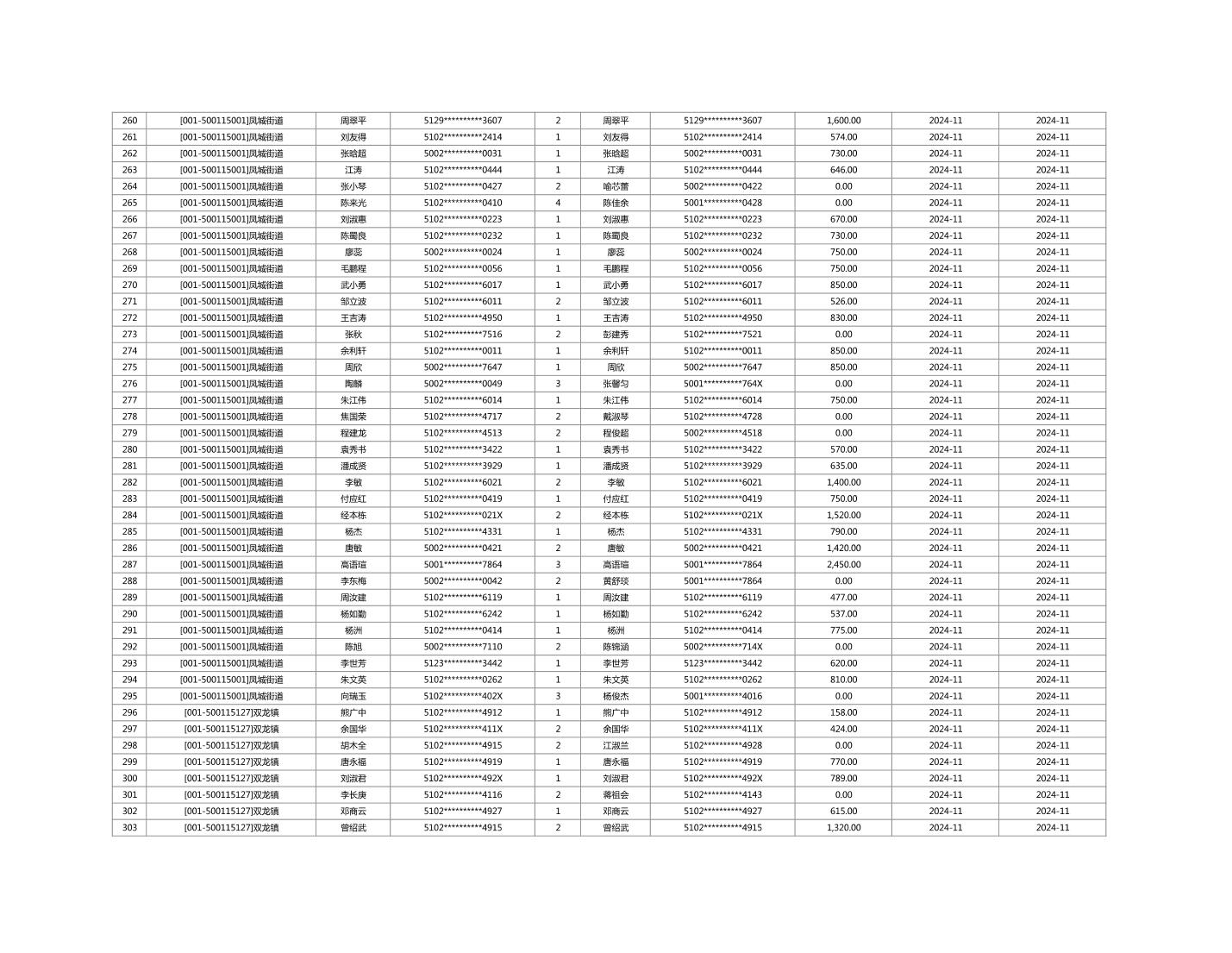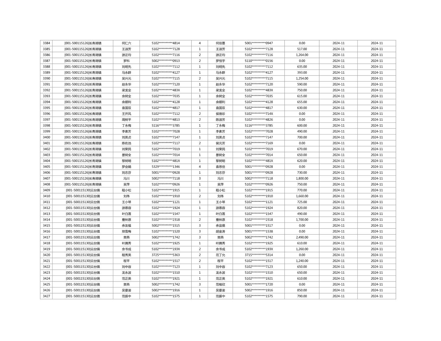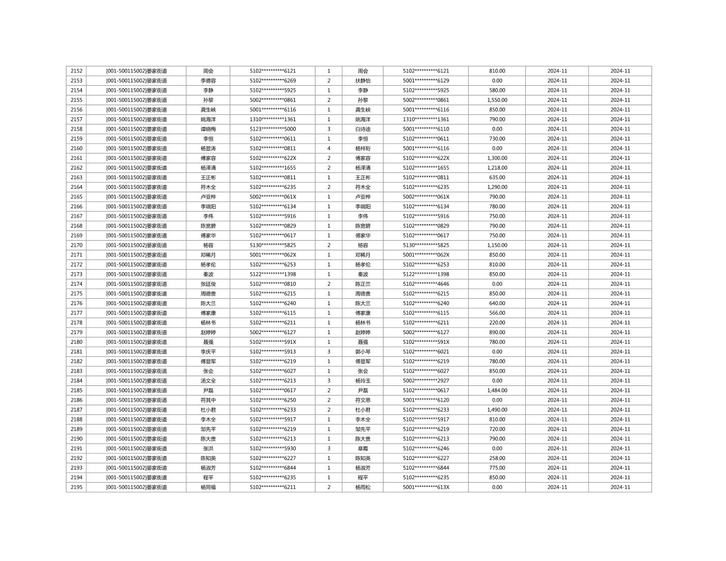 2024年11月重庆市长寿区城市最低生活保障金发放情况