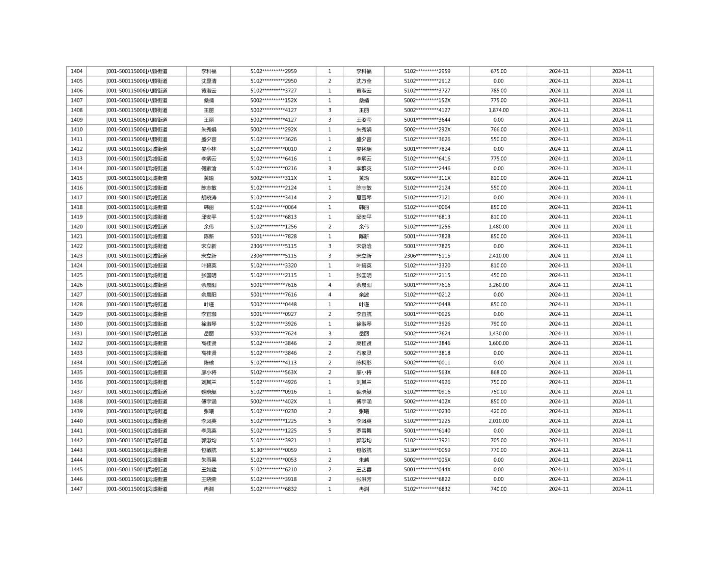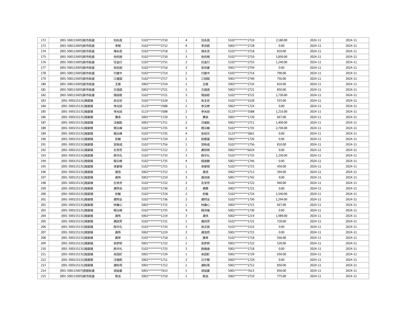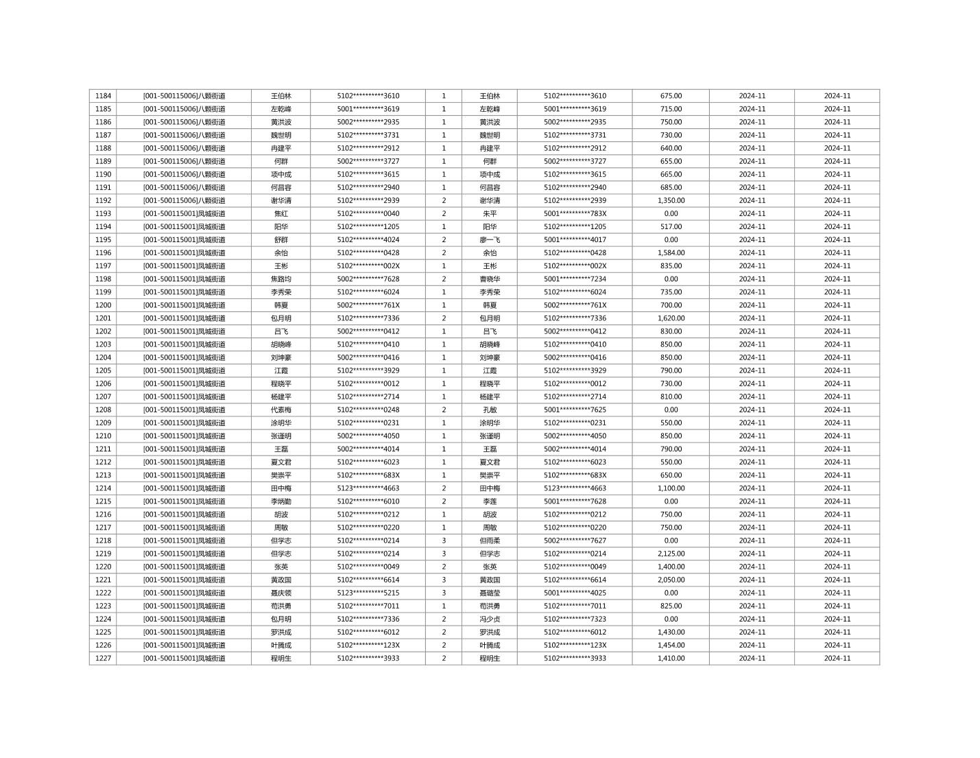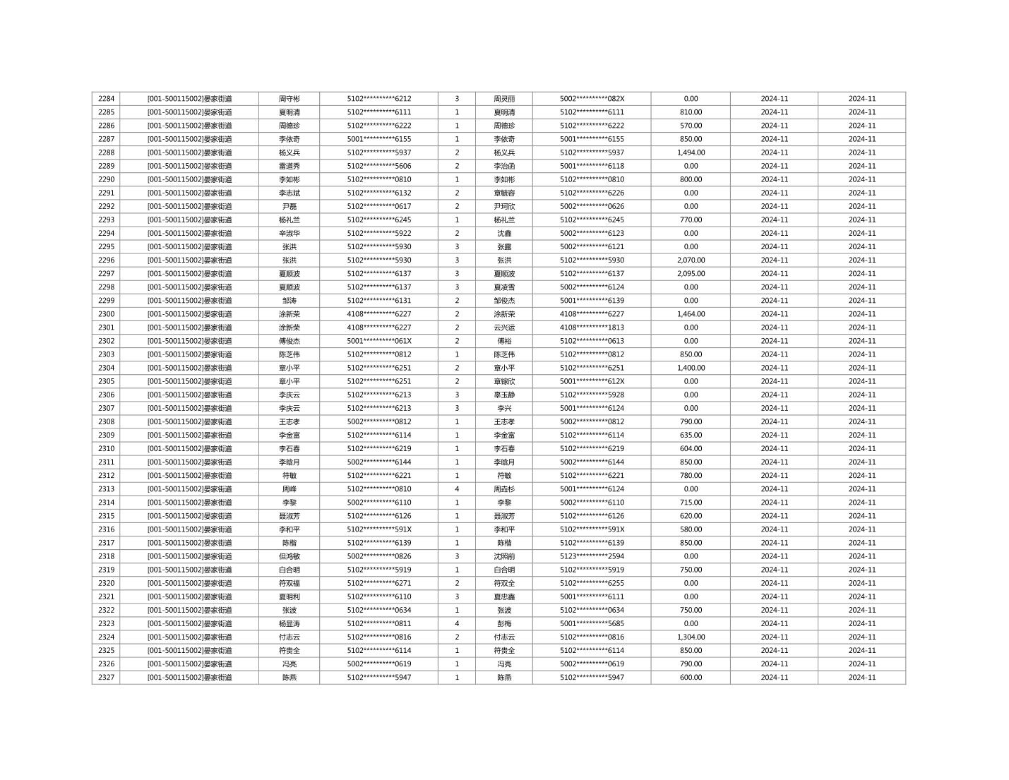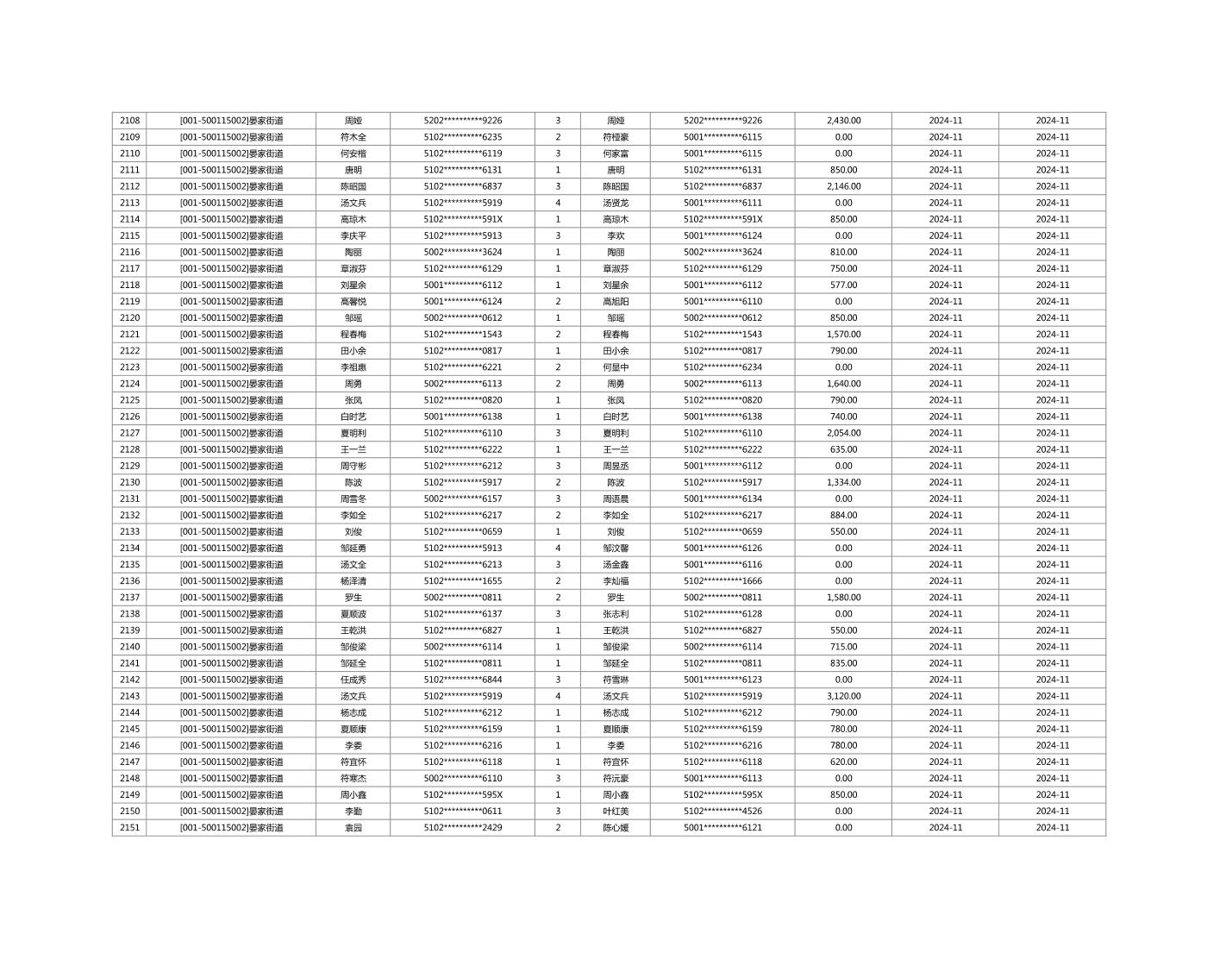 2024年11月重庆市长寿区城市最低生活保障金发放情况