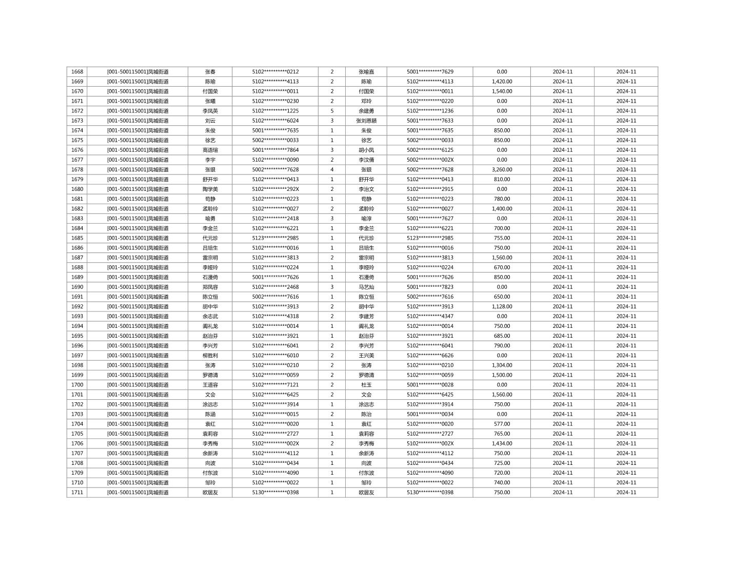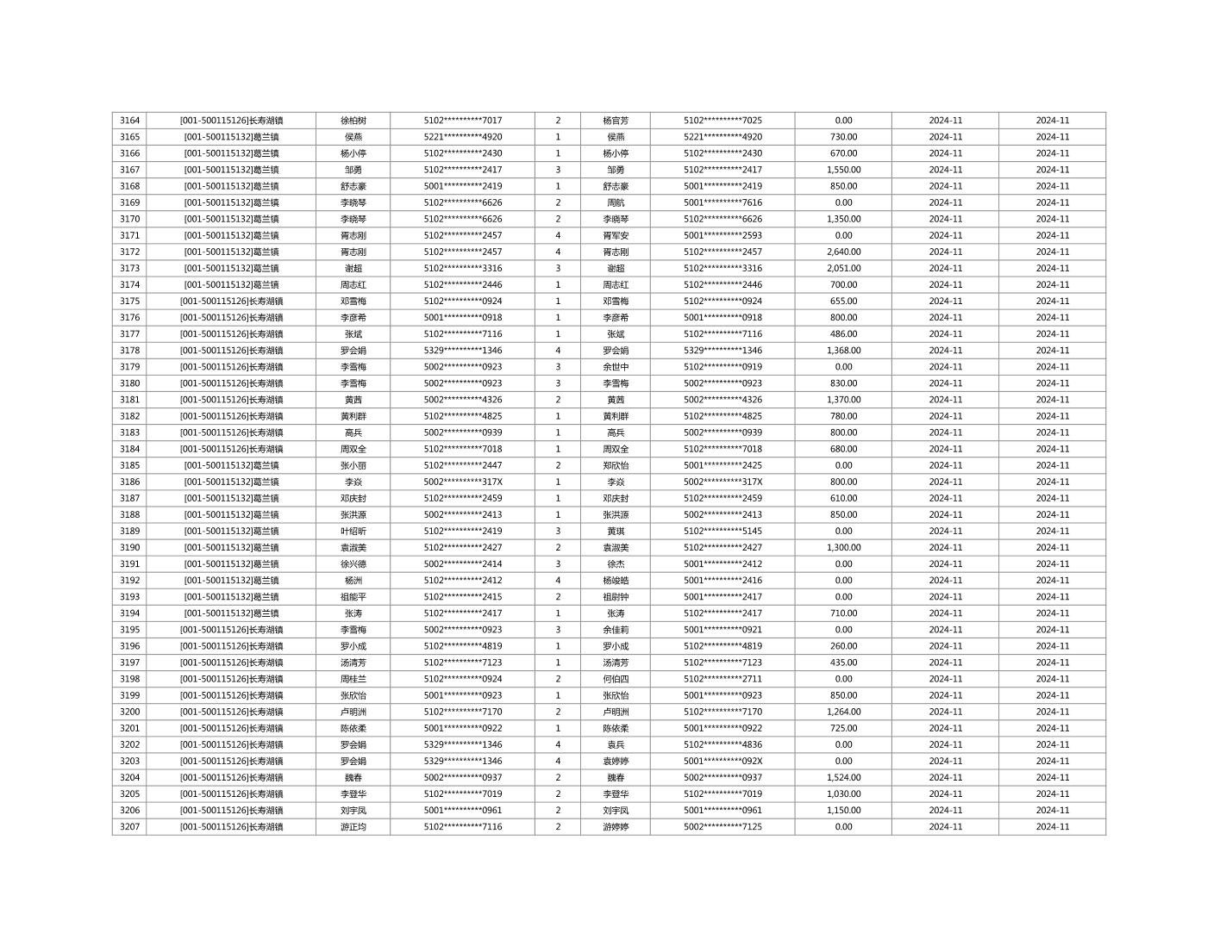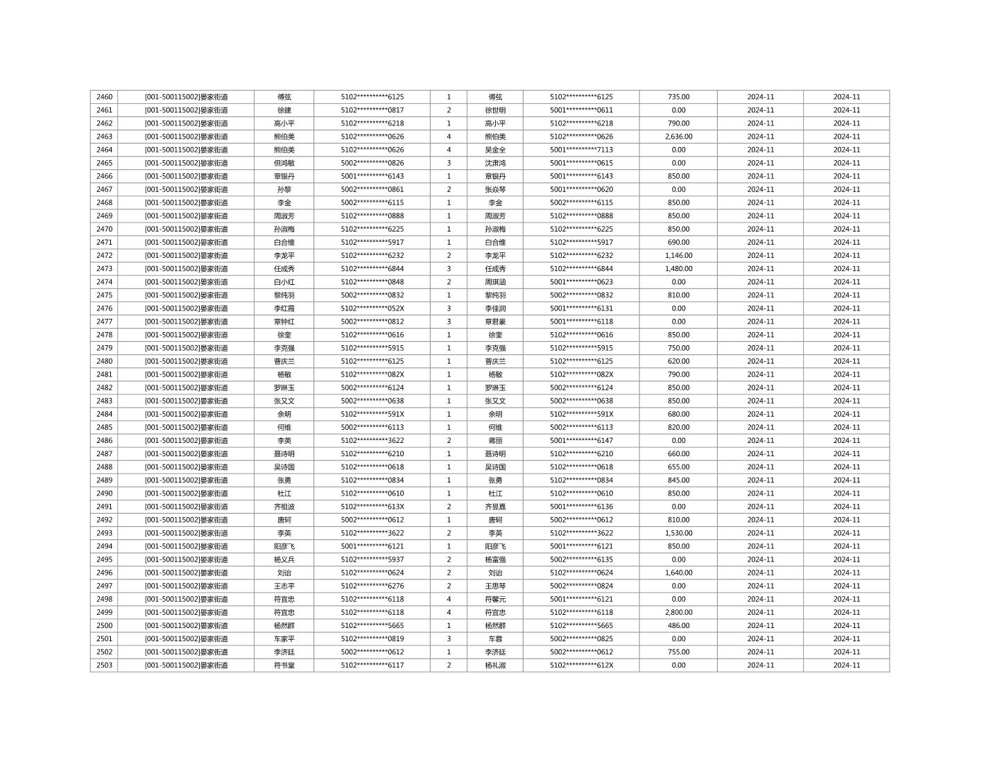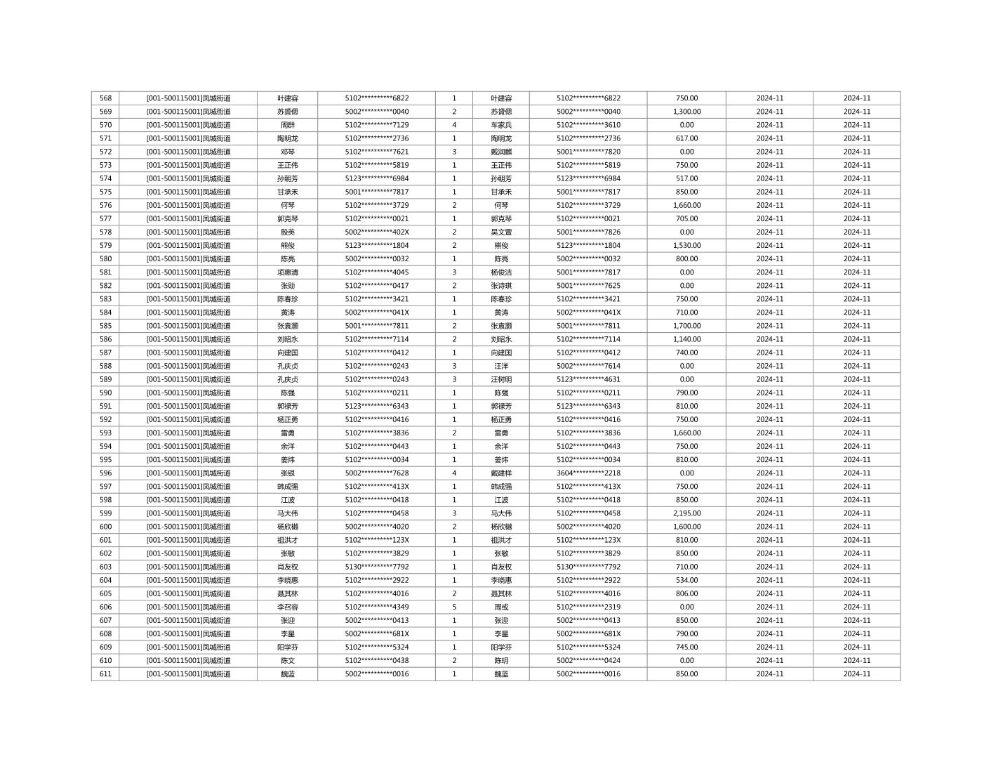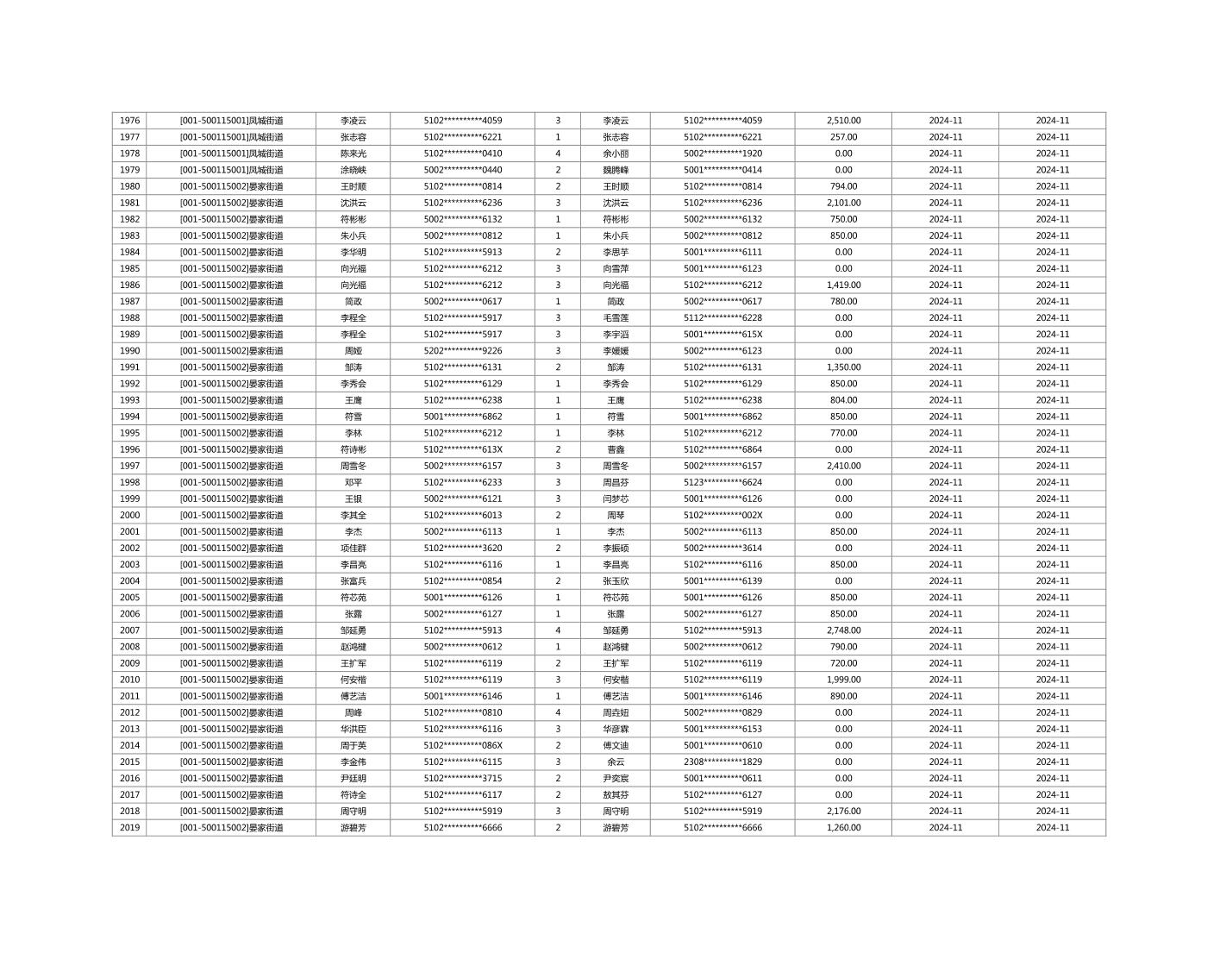 2024年11月重庆市长寿区城市最低生活保障金发放情况