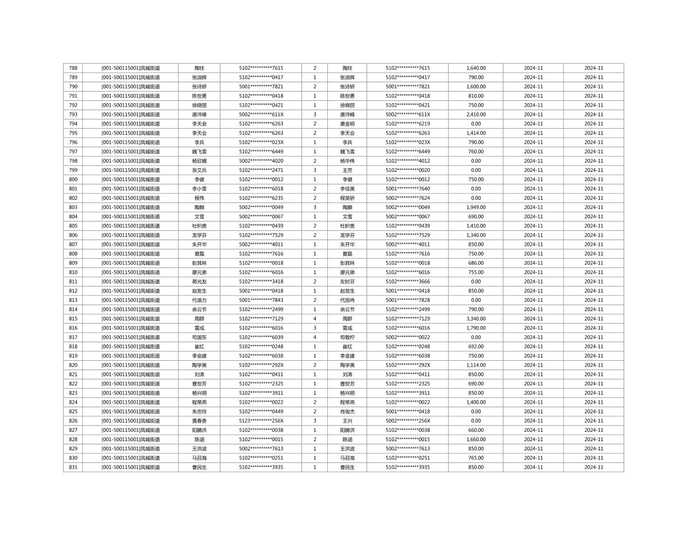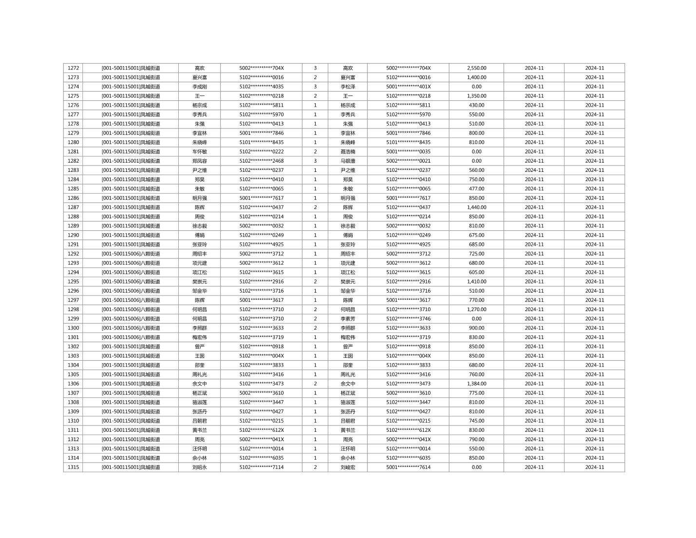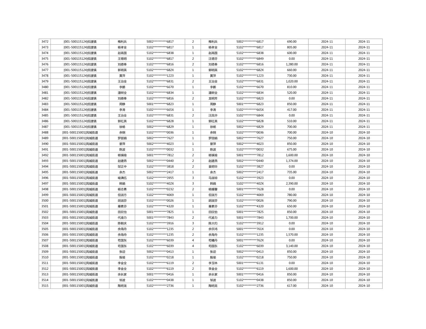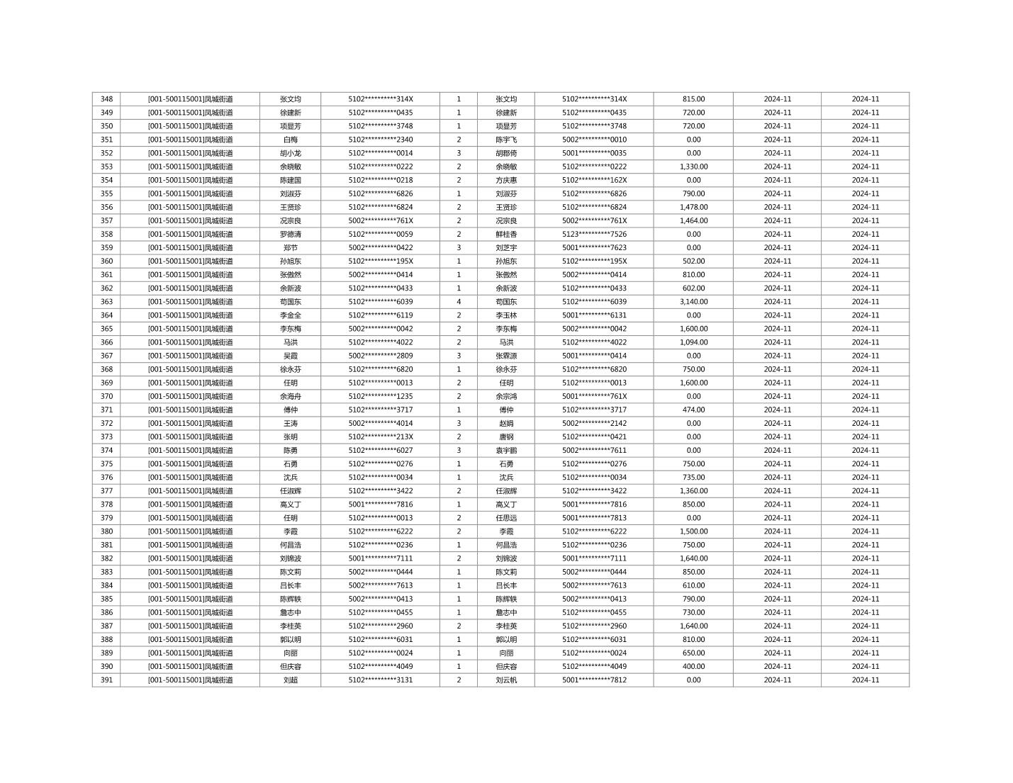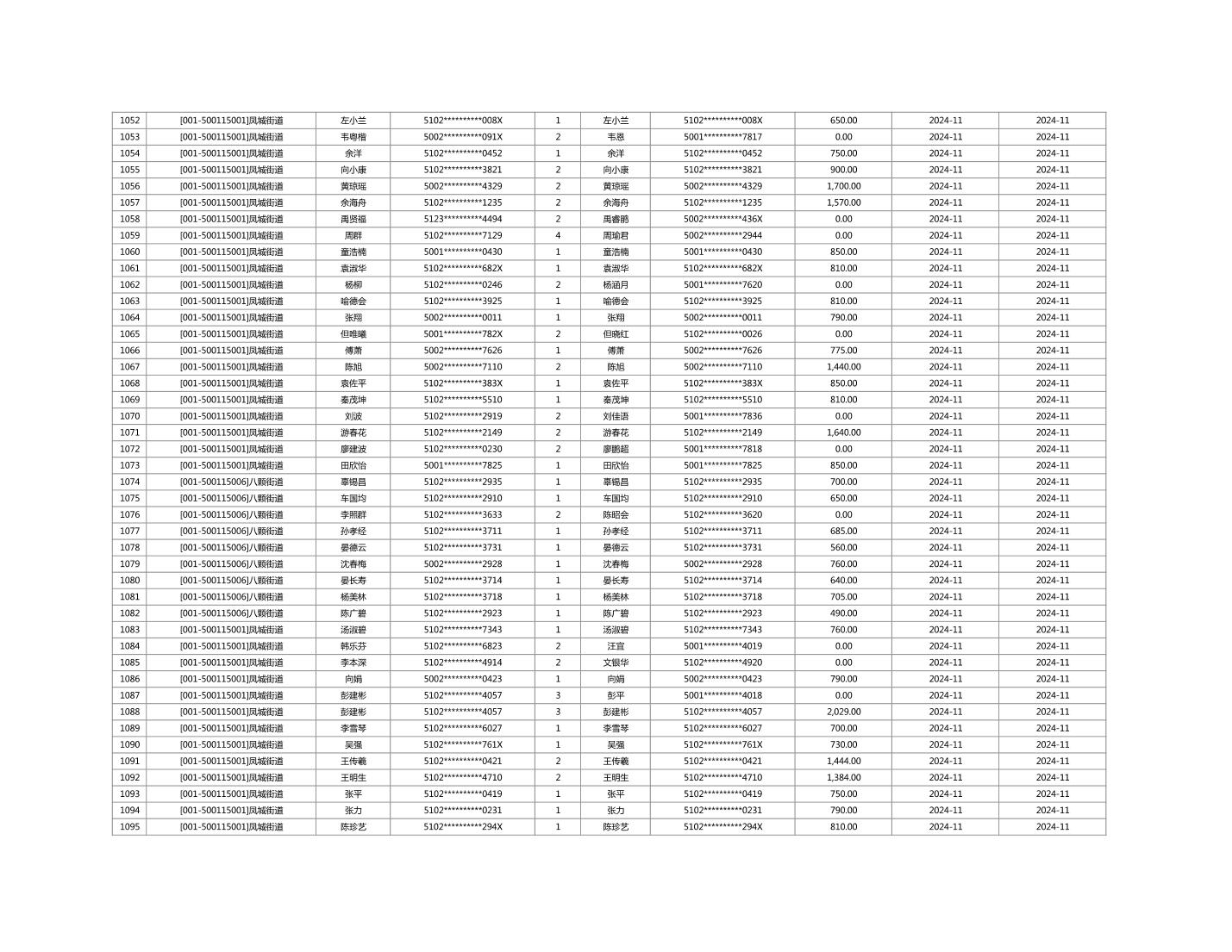 2024年11月重庆市长寿区城市最低生活保障金发放情况