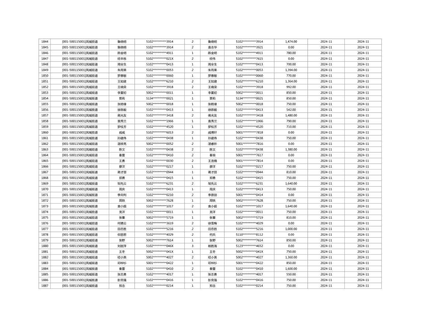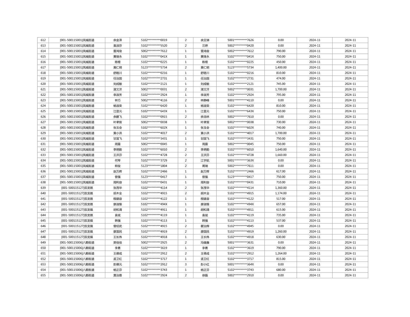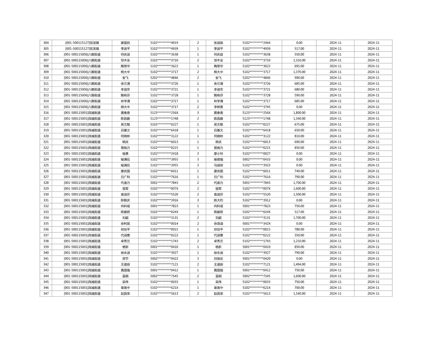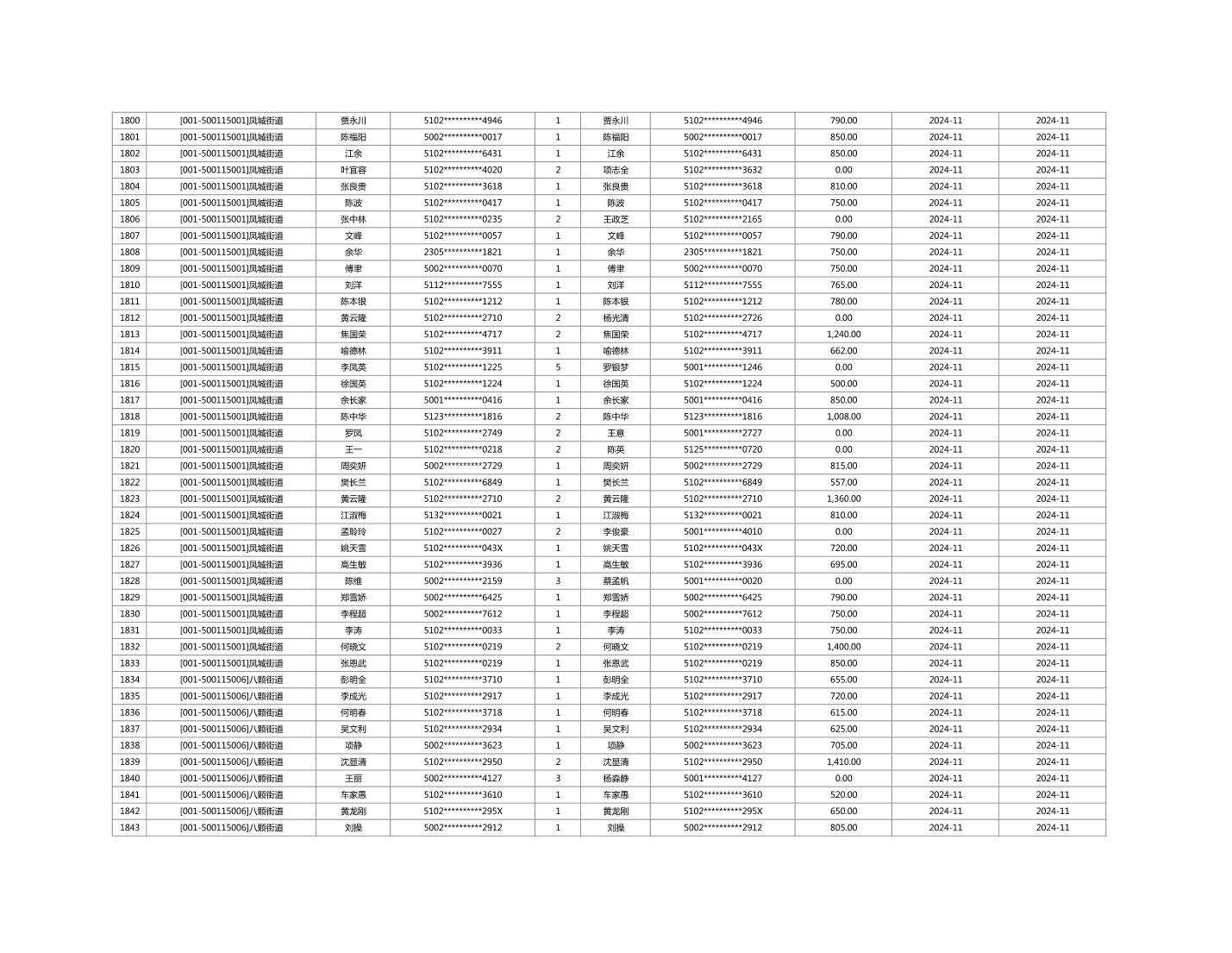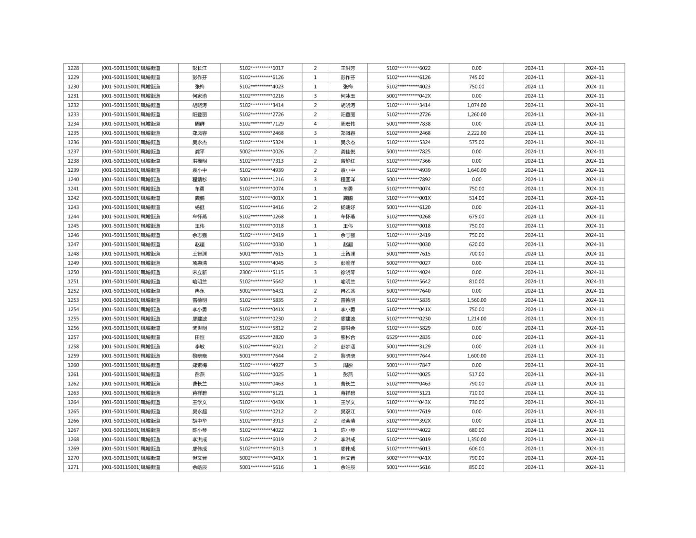 2024年11月重庆市长寿区城市最低生活保障金发放情况