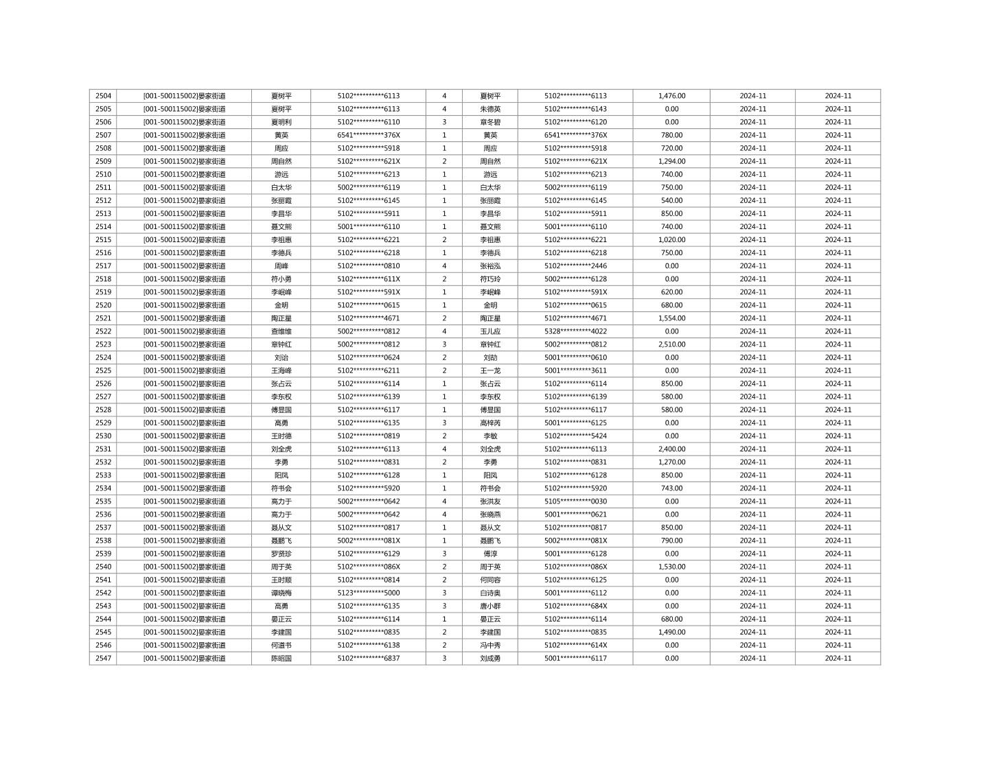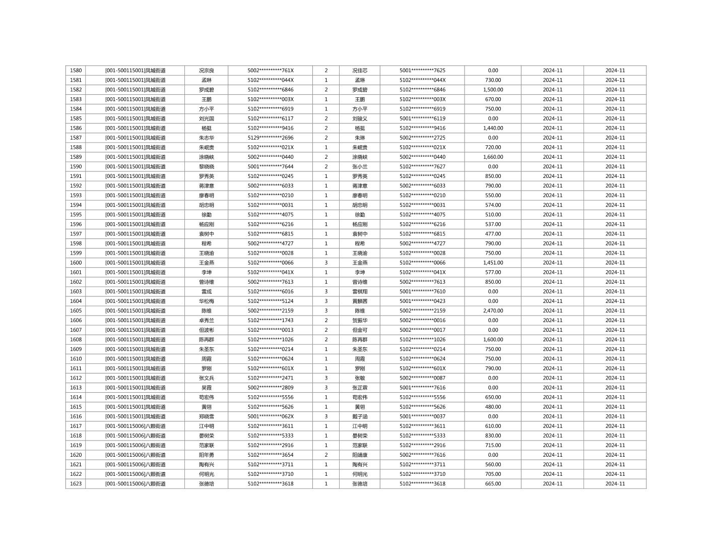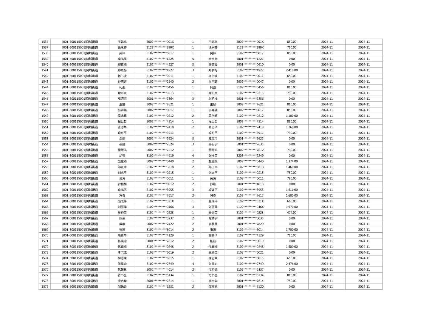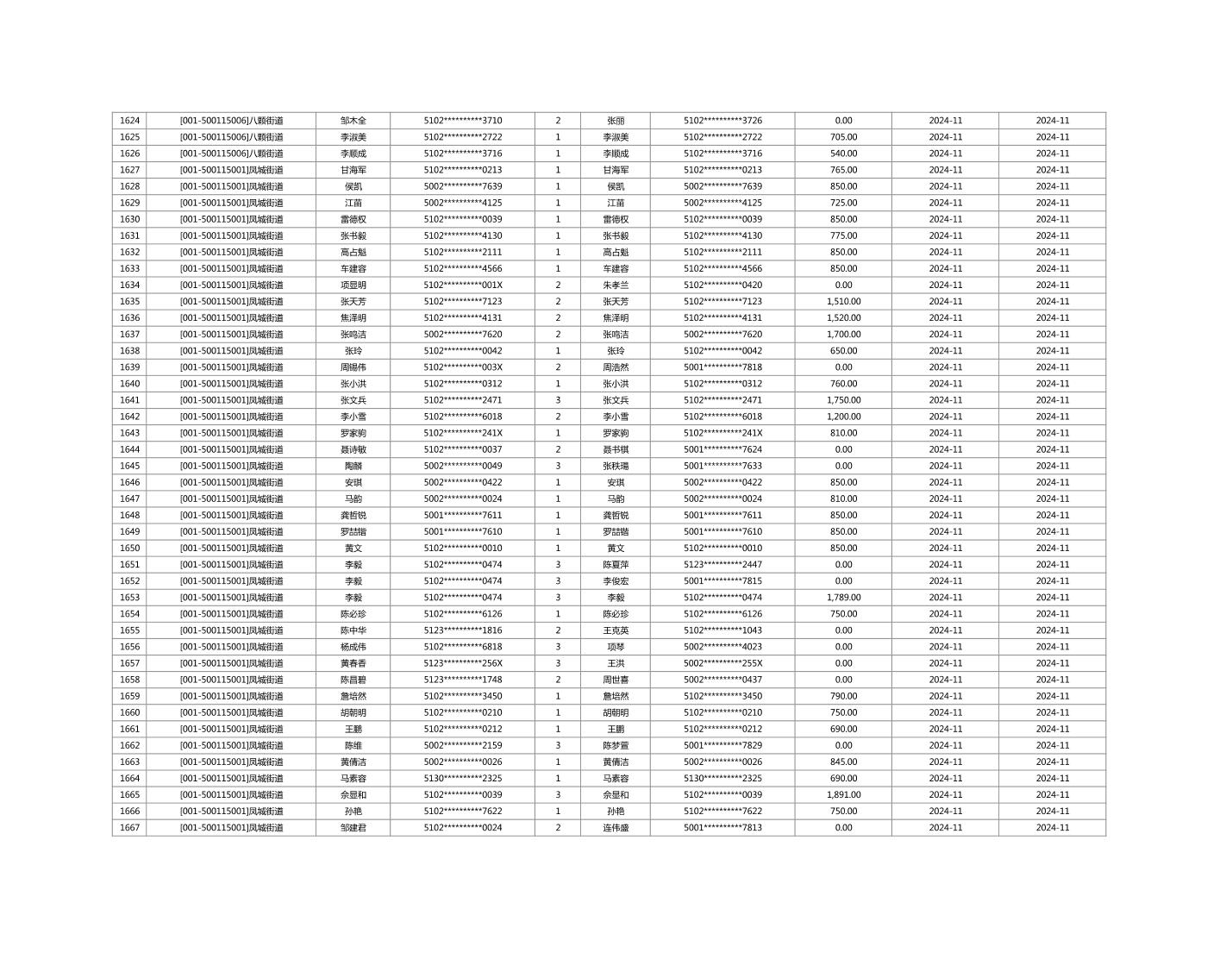 2024年11月重庆市长寿区城市最低生活保障金发放情况