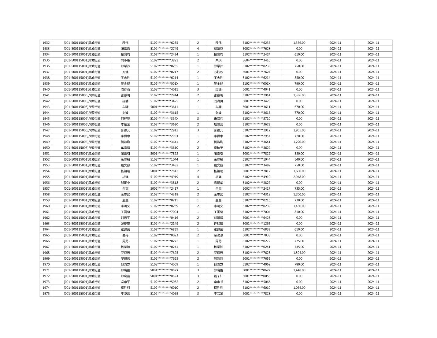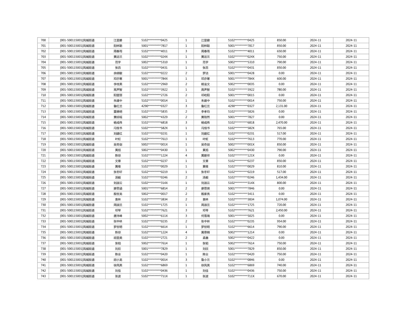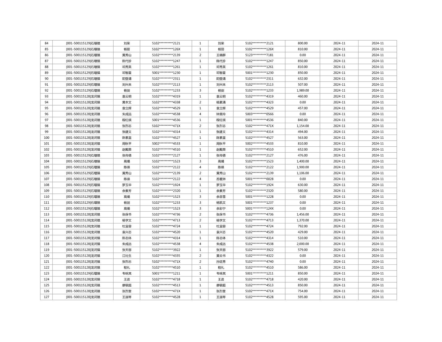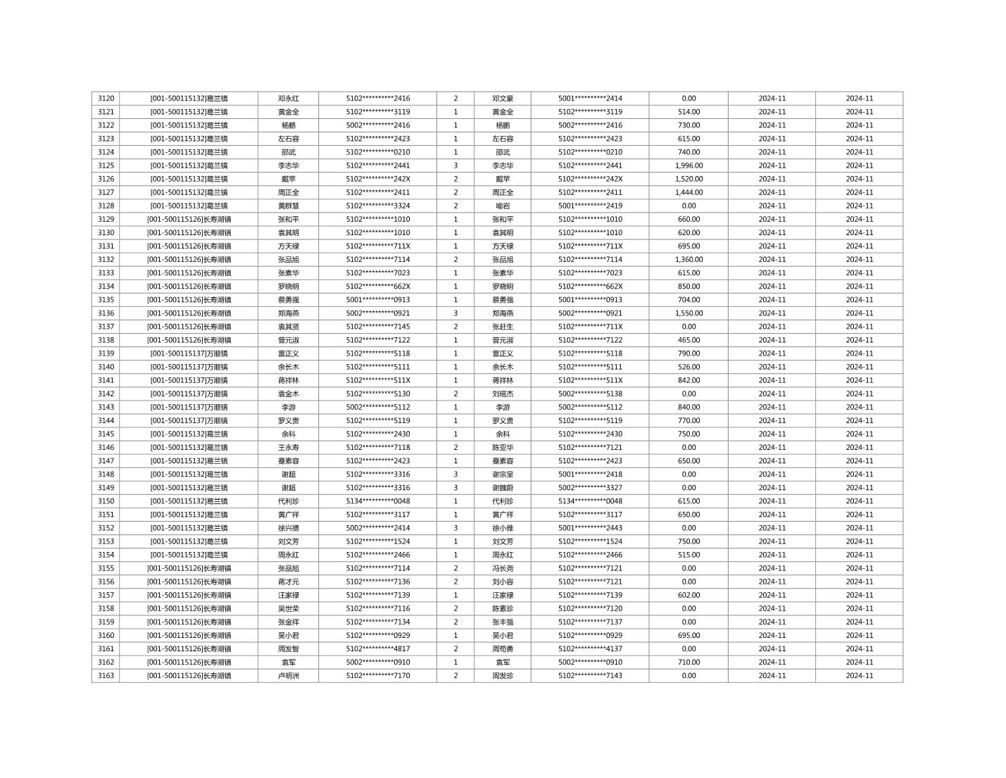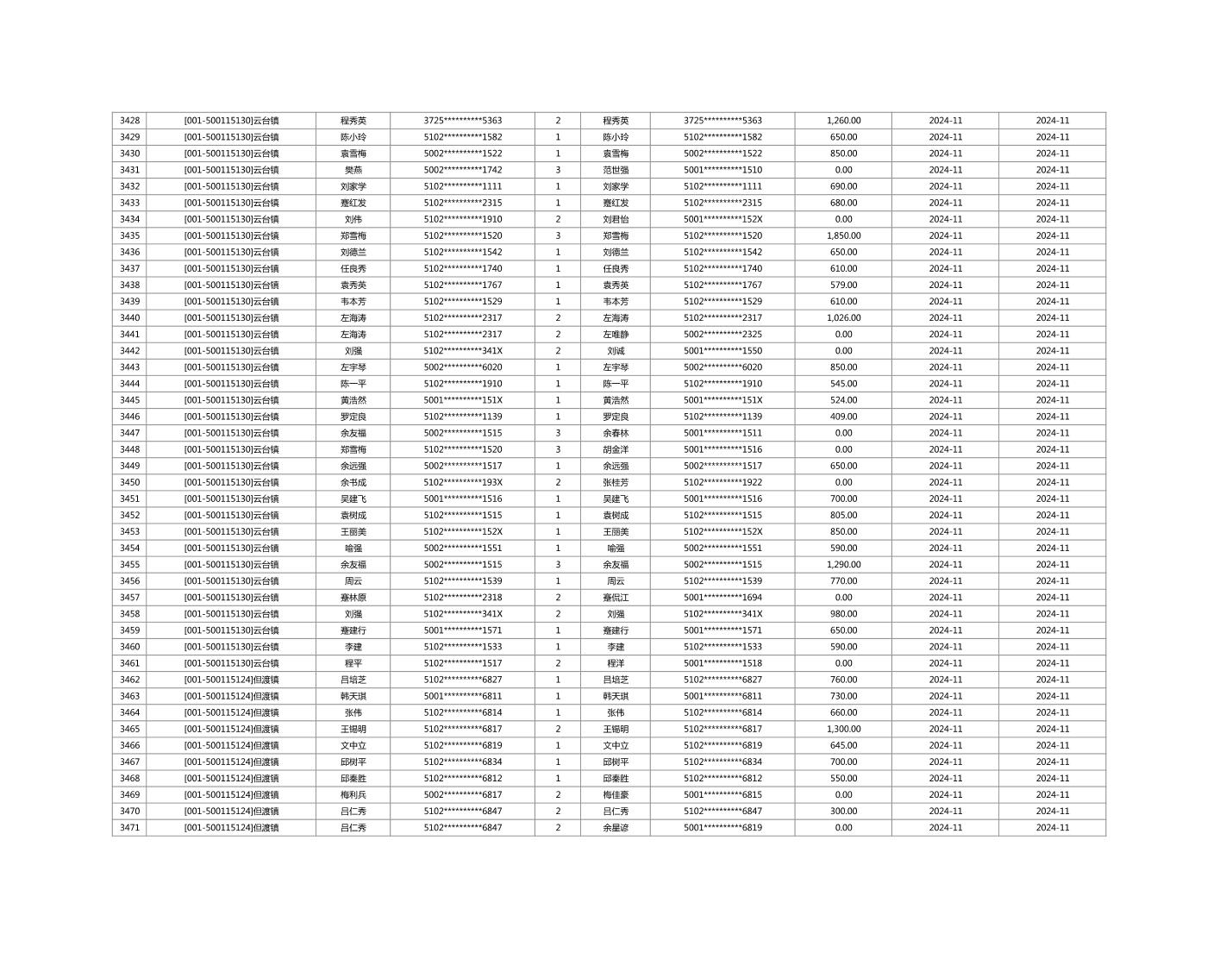 2024年11月重庆市长寿区城市最低生活保障金发放情况