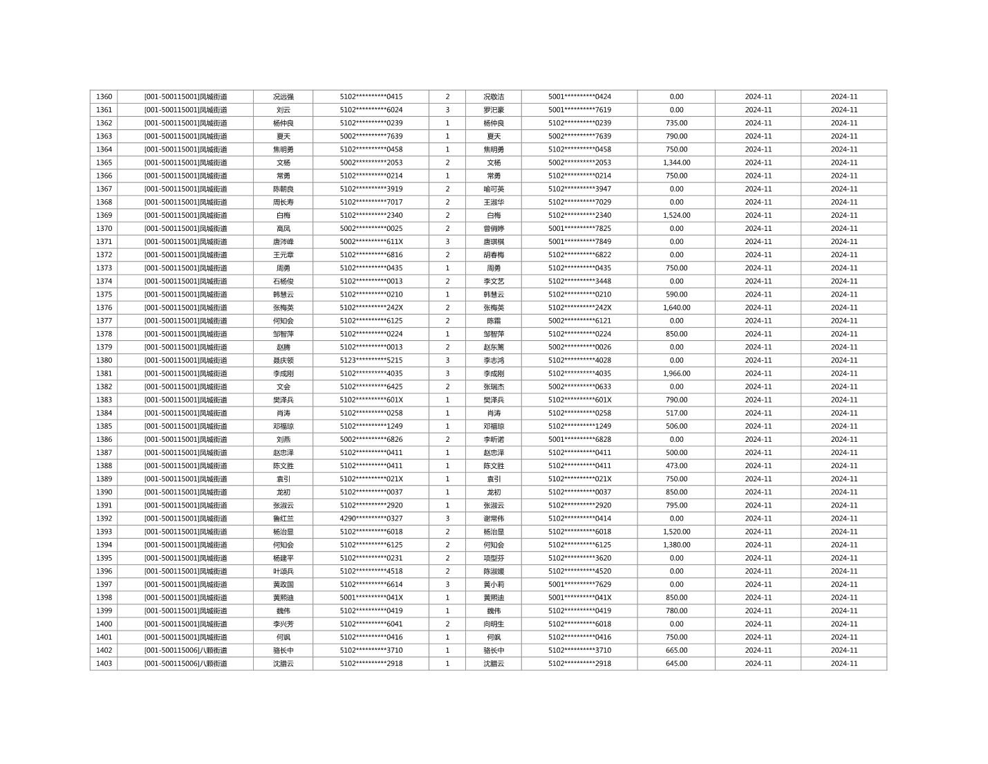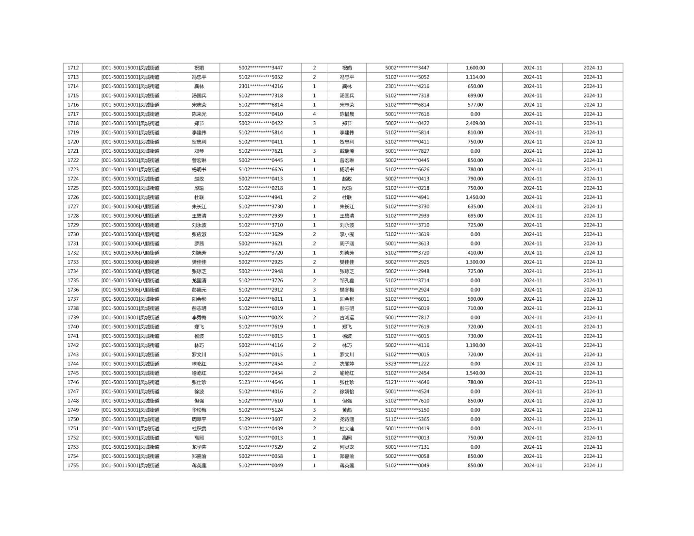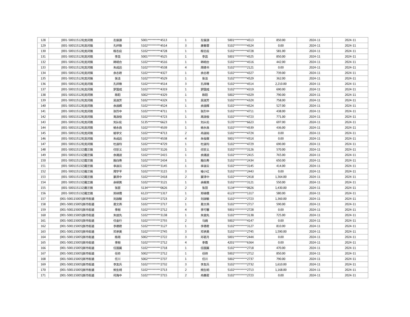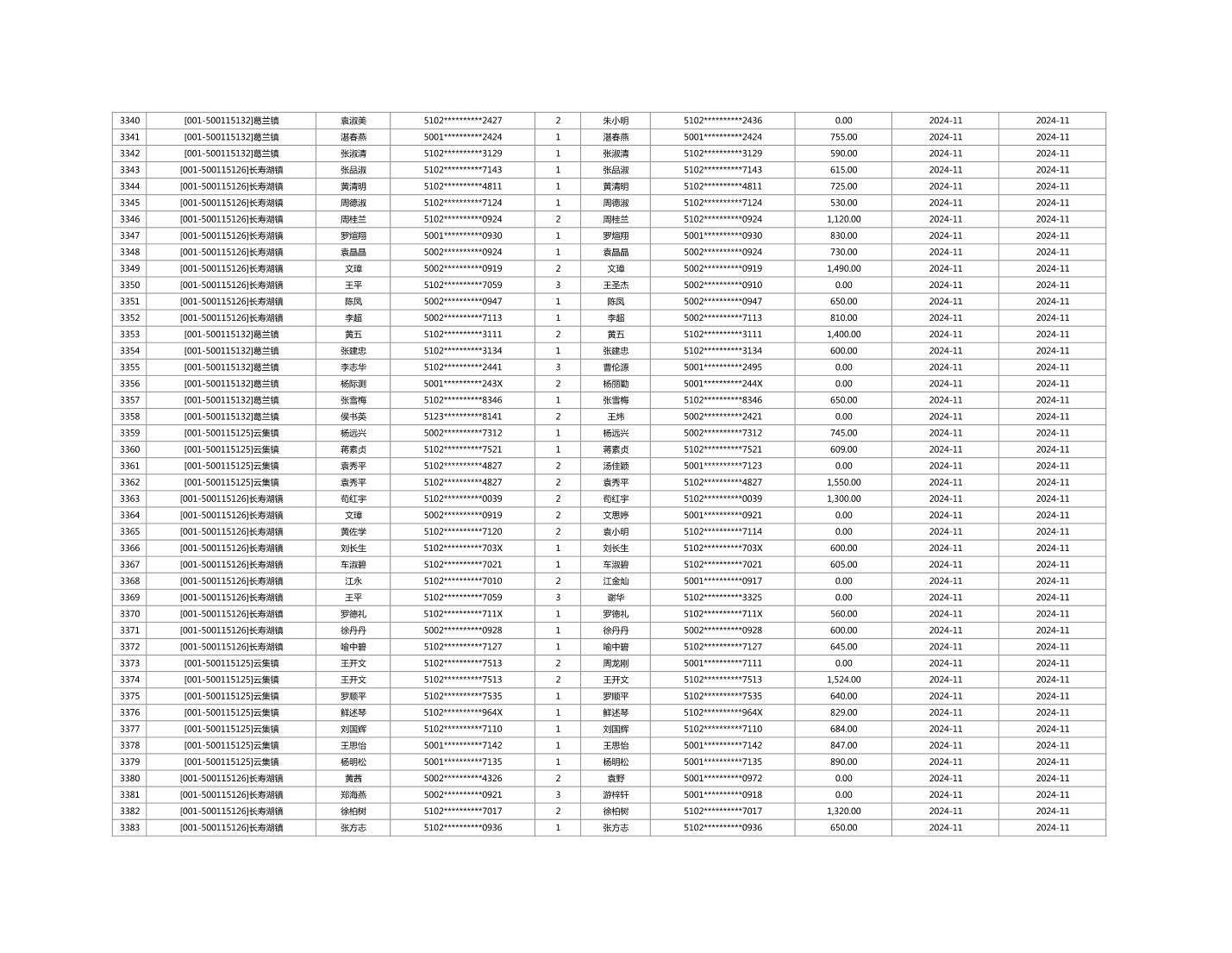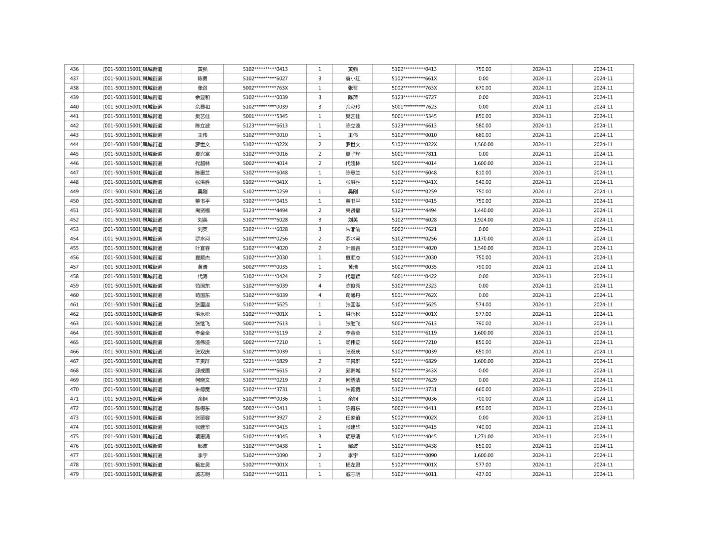 2024年11月重庆市长寿区城市最低生活保障金发放情况