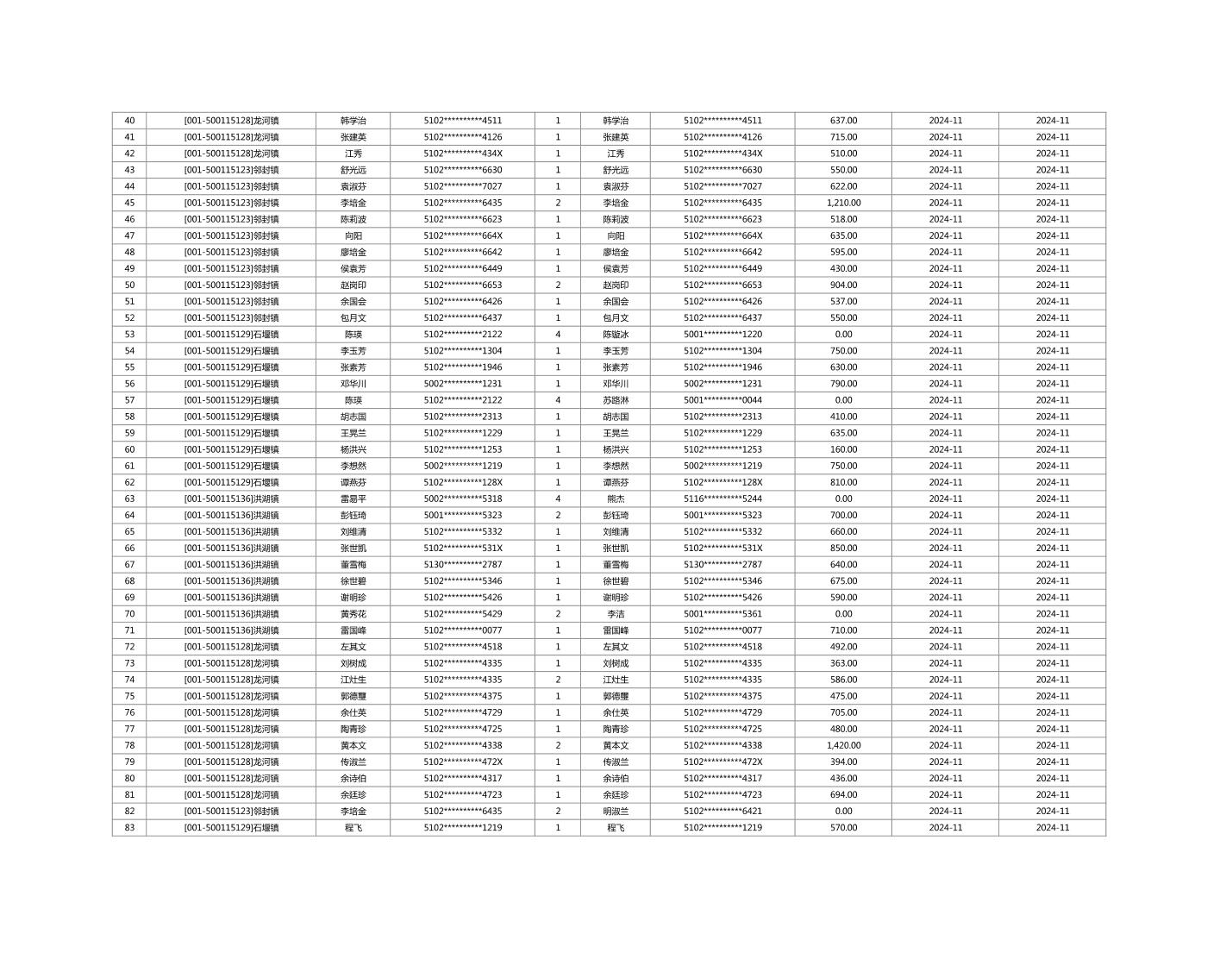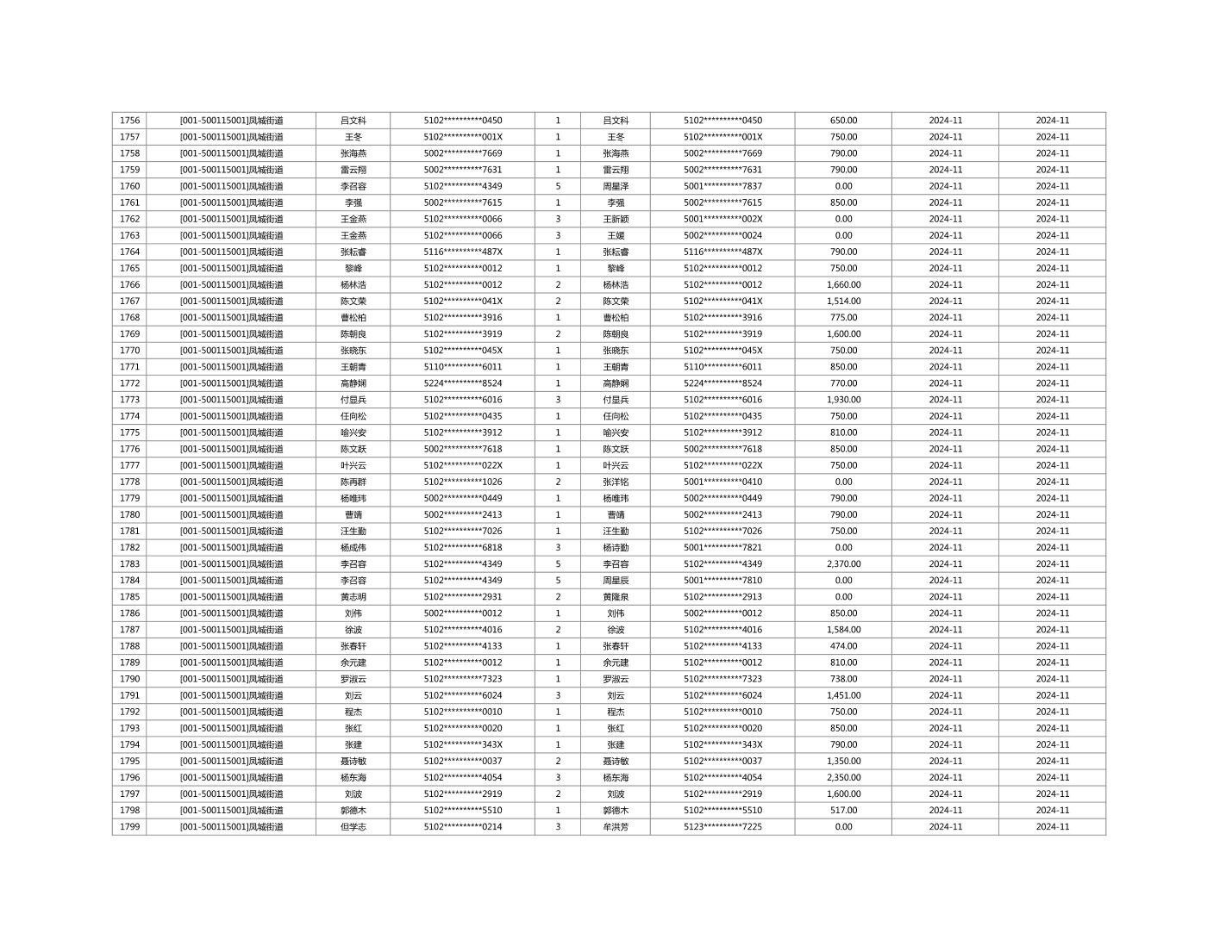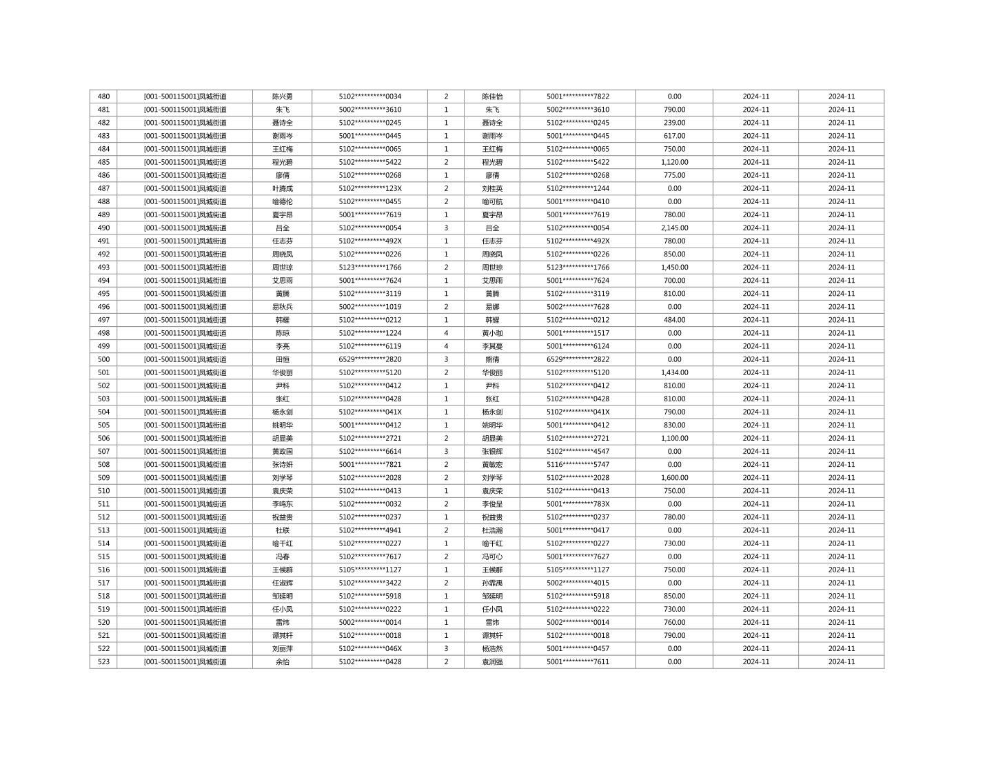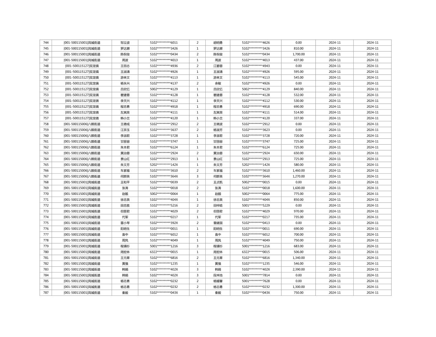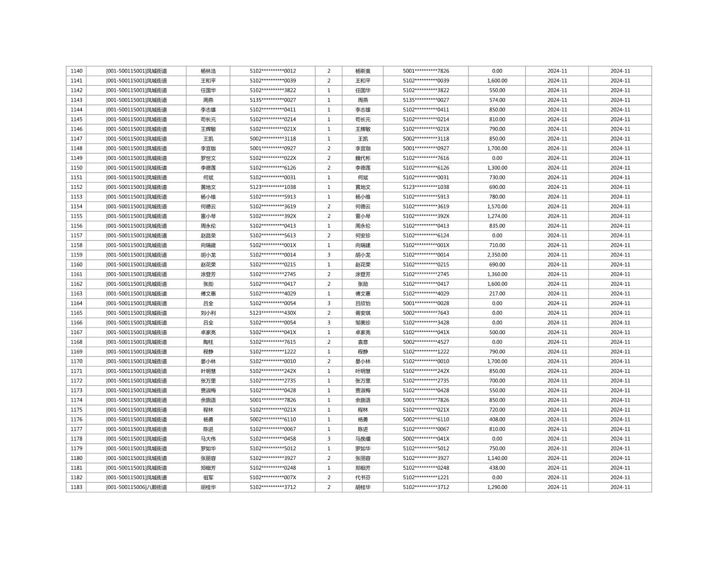 2024年11月重庆市长寿区城市最低生活保障金发放情况