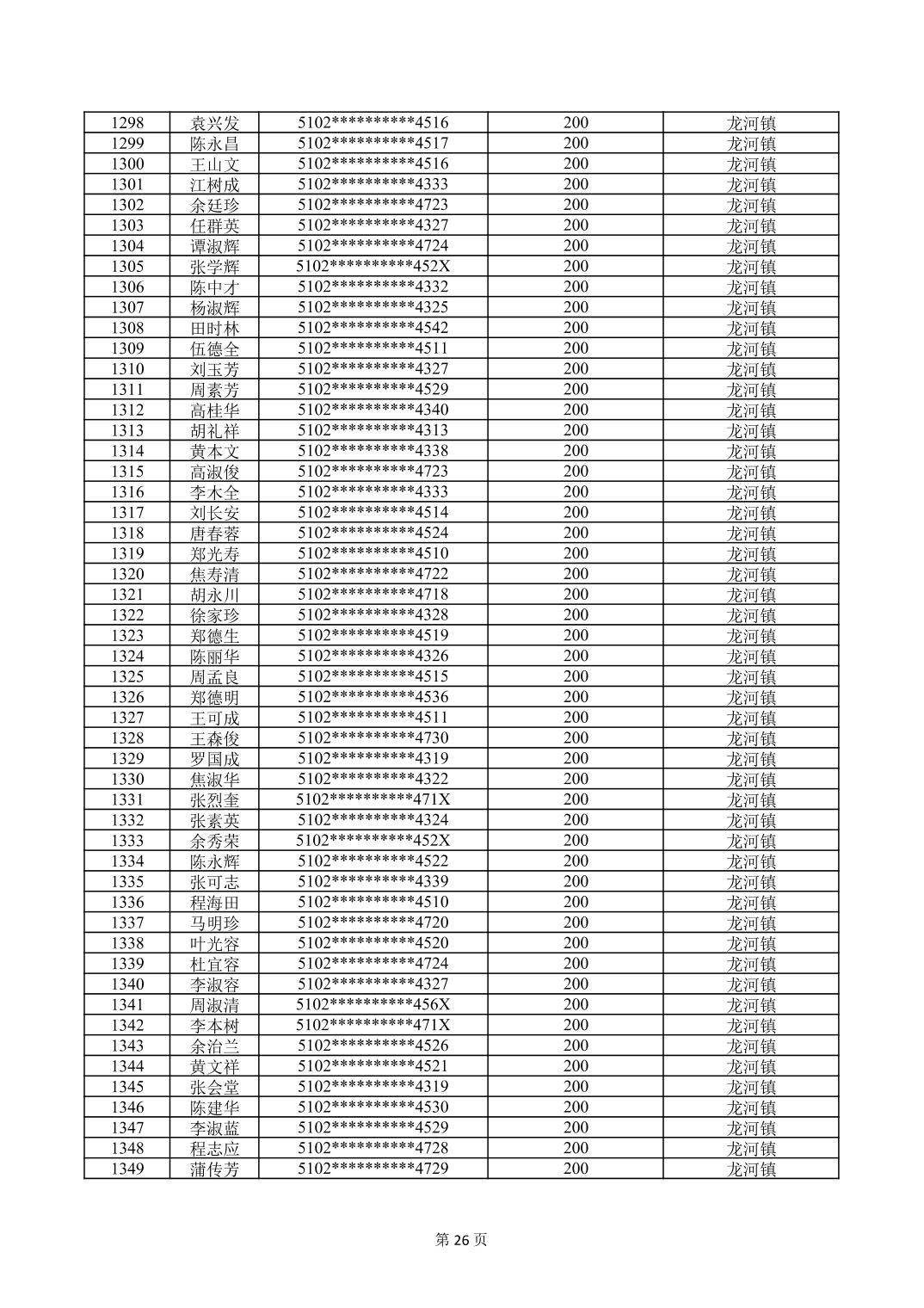 重庆市长寿区经济困难的高龄失能老年人养老服务补贴2026年2月发放情况