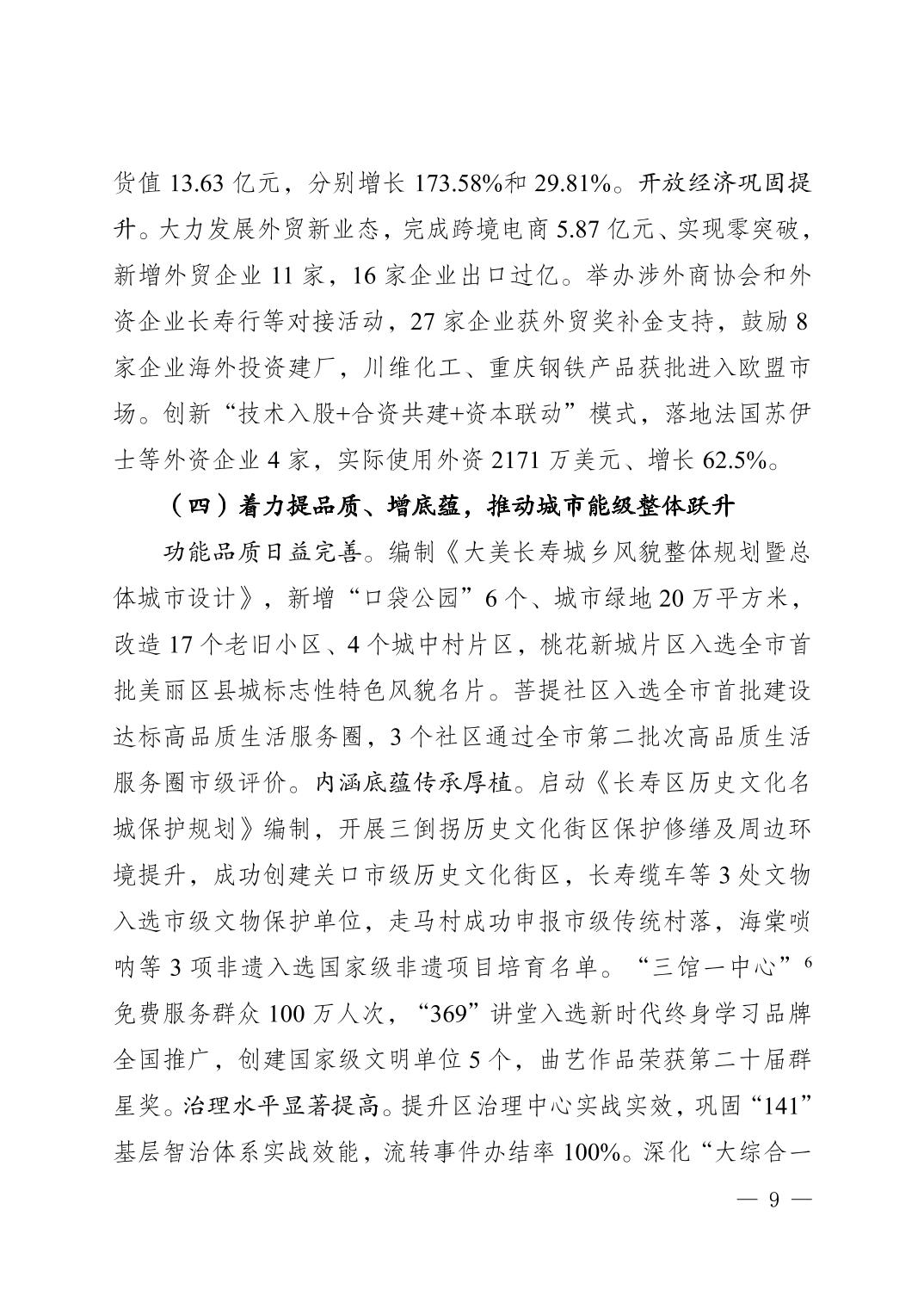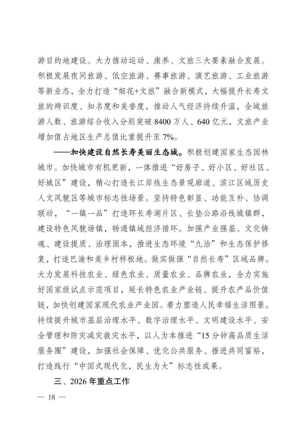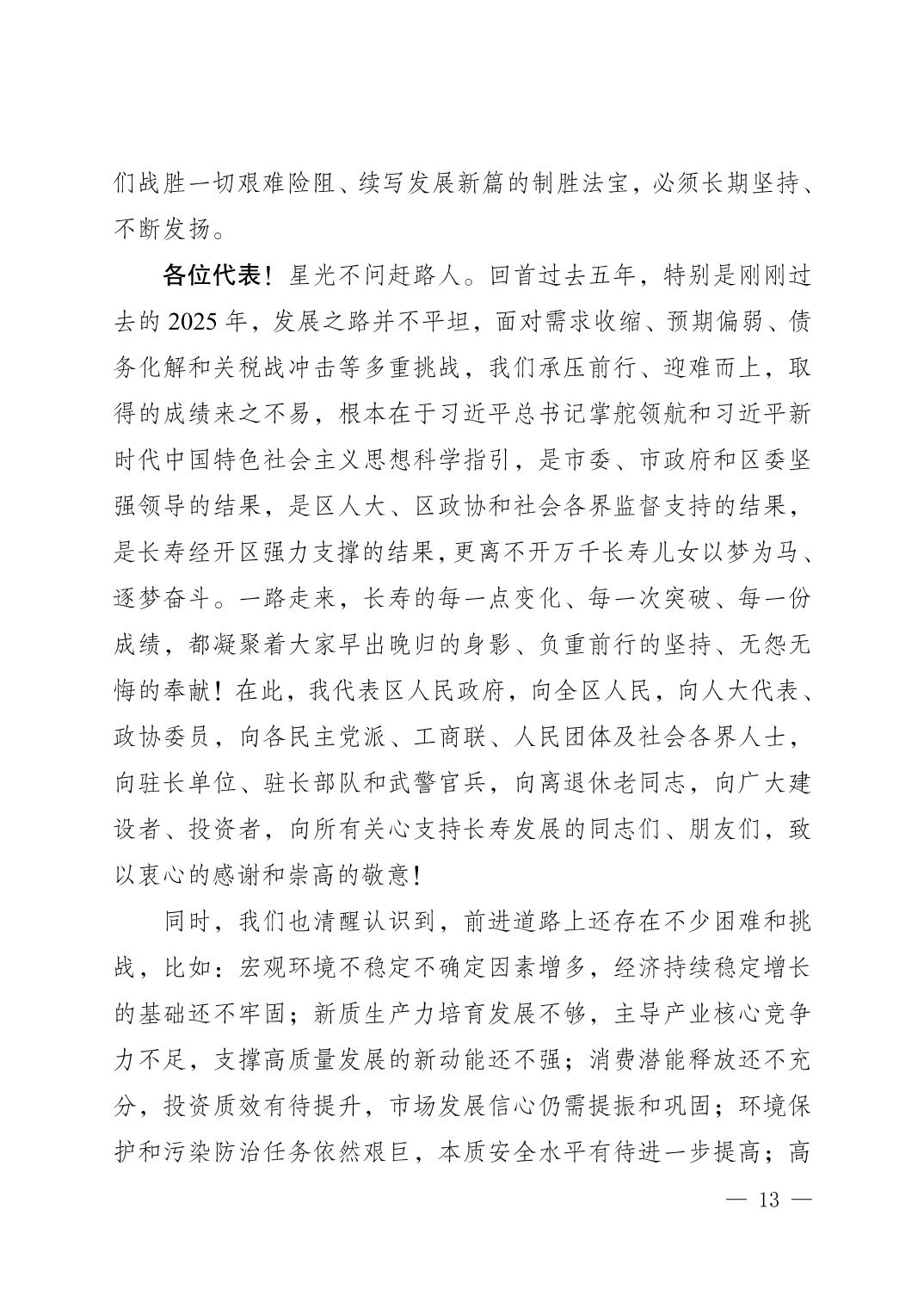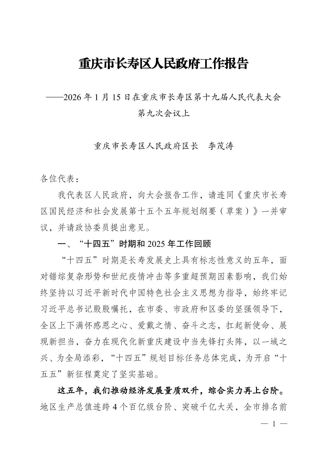 重庆市长寿区人民政府工作报告(2026年1月15日)