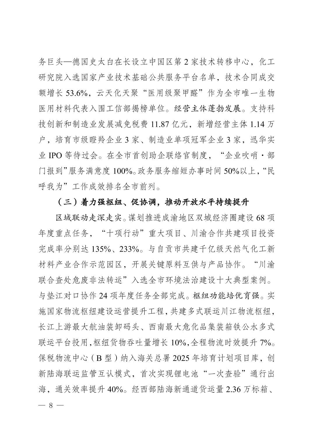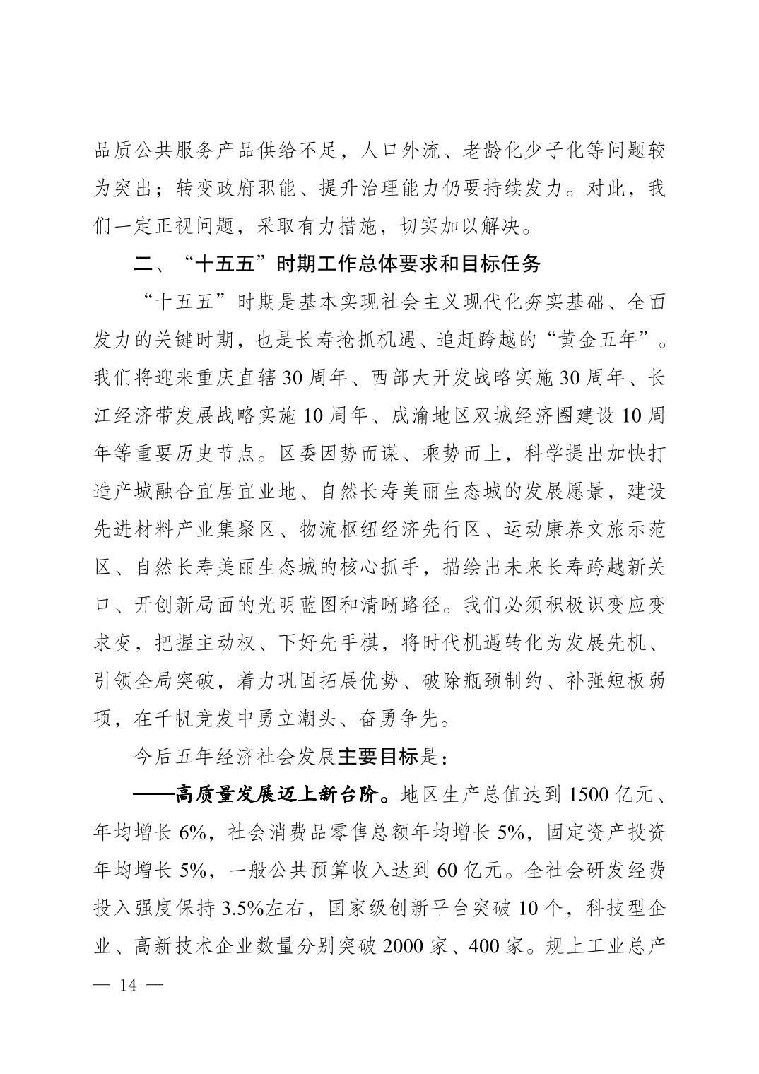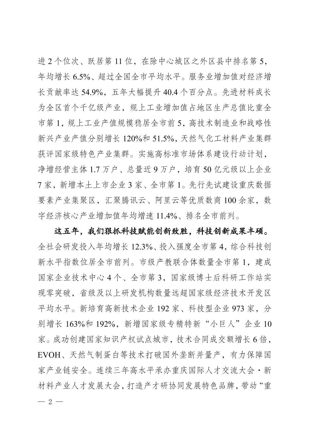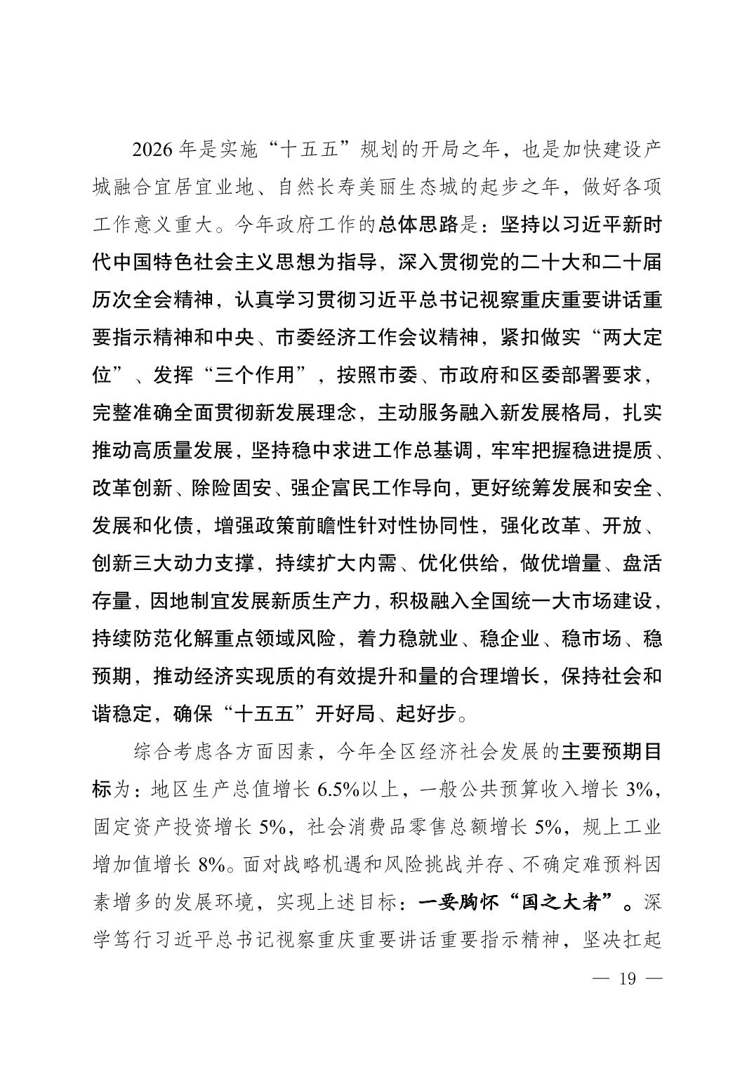 重庆市长寿区人民政府工作报告(2026年1月15日)