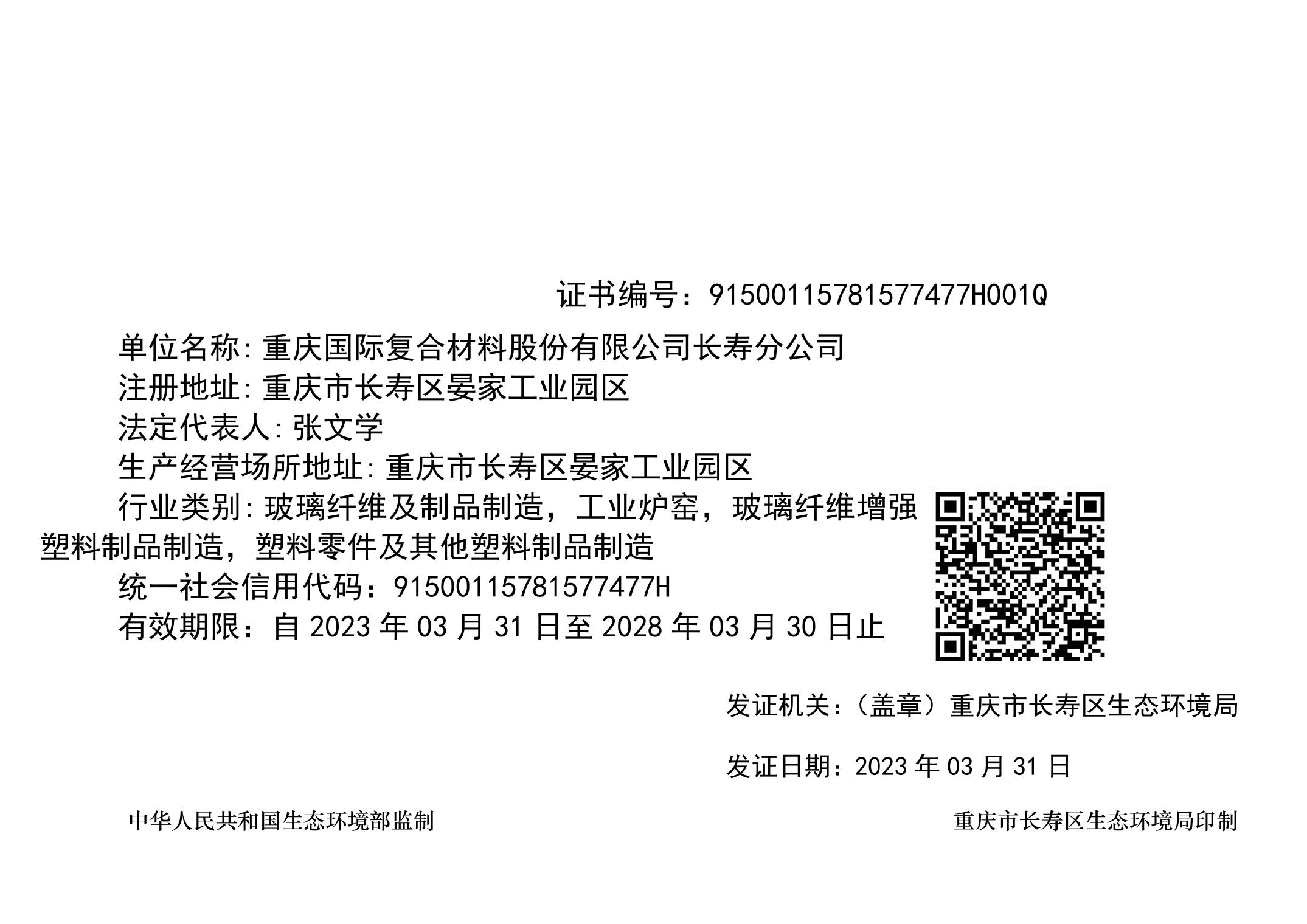 重庆国际复合材料股份有限公司长寿分公司排污许可证