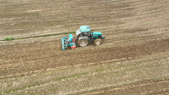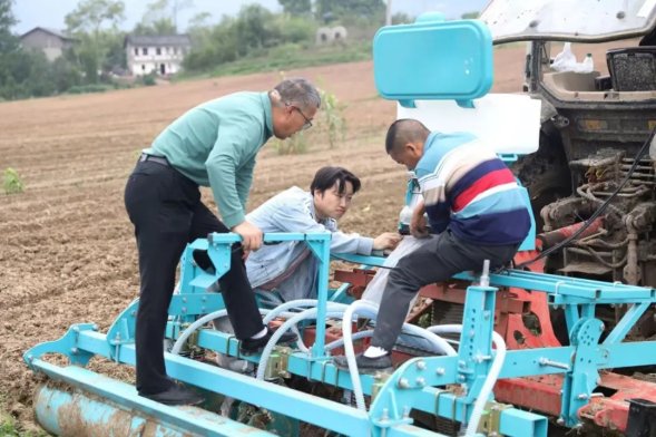 伴随着隆隆机械声,精量条播机作业行笔直标准,按照预设的参数,一次播八行,一粒粒饱满的油菜种子被均匀地播撒在沟垄整齐的油菜试验田里,播种深度一致、株行距均匀。