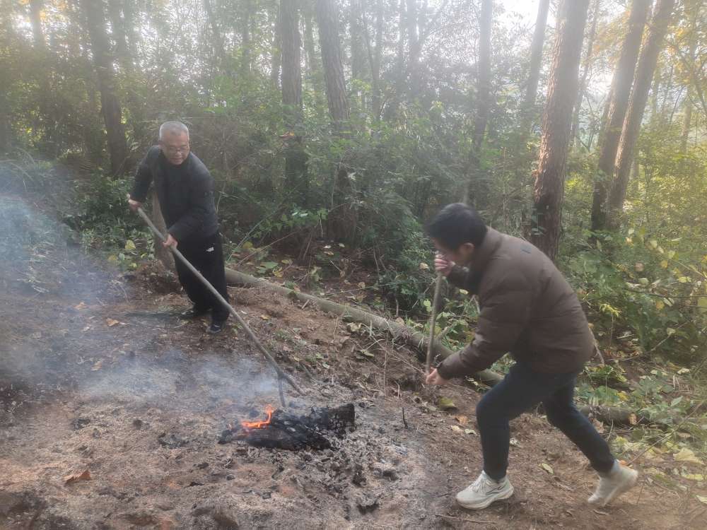 到万顺石龙村疫木除治检查,火场无灭火器。