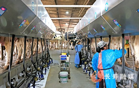 记者在明亮的自动化挤奶厅里看到,一排排荷斯坦奶牛正有序走上转盘式挤奶机。技术负责人张明钢一边操作设备,一边紧盯屏幕上的实时数据。