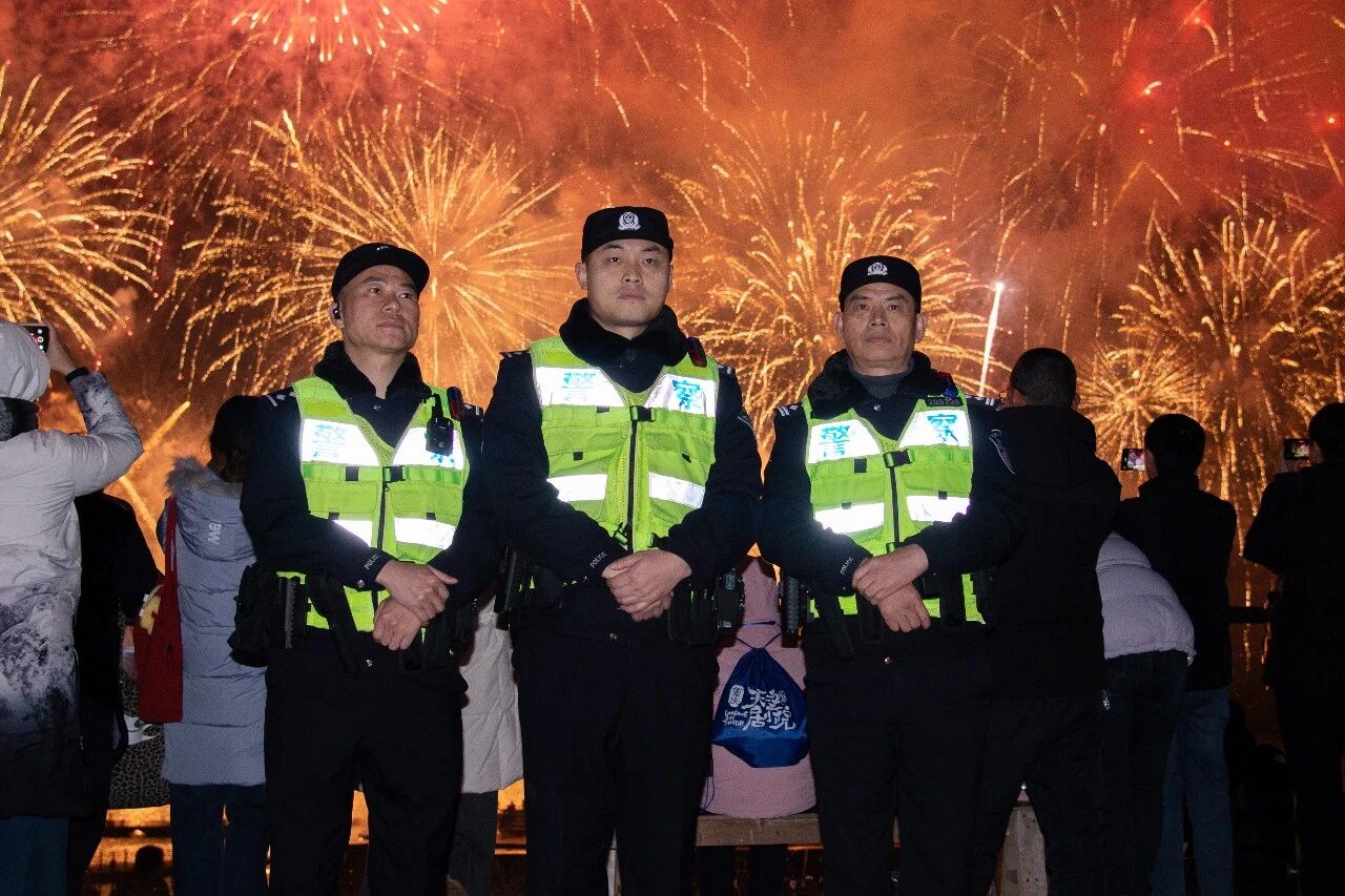 焰火映警徽 平安跨新年长寿公安圆满完成“跨年烟花许愿夜”安保任务