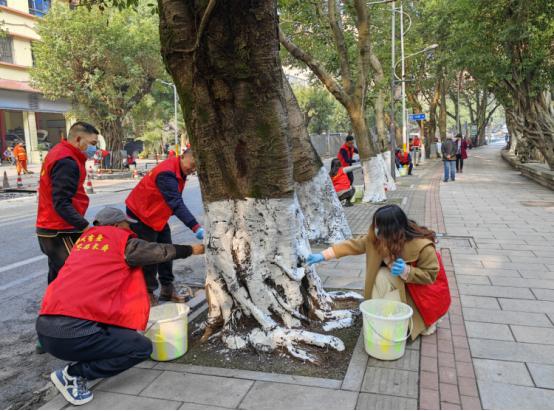 寒冬将至,护绿先行。12月,长寿区新时代文明实践城市管理志愿服务大队的志愿者们身着红马甲,奔赴望江路、火神街沿线开展冬季树木涂白志愿服务活动,以实际行动践行新时代文明实践精神,扎实推进“我为群众办实事”实践活动走深走实。