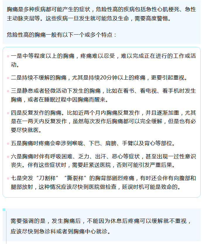 危险性高的胸痛有何特点?出现这些情况应尽快就诊