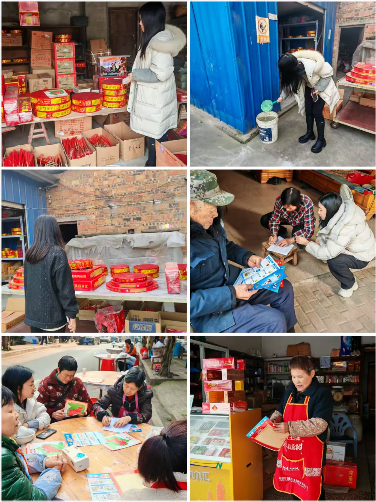 2026年2月14日,新春佳节临近,江南街道各村、社区持续开展烟花爆竹、道路交通、农村沼气、经营场所等重点领域节前安全大排查。重点在辖区农家乐出入口、村内主干道、公告栏等醒目位置张贴烟花爆竹禁放海报,并面向居民、商户及游客开展面对面宣传,讲解禁放政策、安全隐患及相关规定,引导大家文明过节、绿色过节。结合冬季安全“敲门行动”,入户对道路交通、一氧化碳中毒、电信反诈等重点领域进行了宣传,为春节期间辖区安全稳定、文明有序营造了良好氛围。