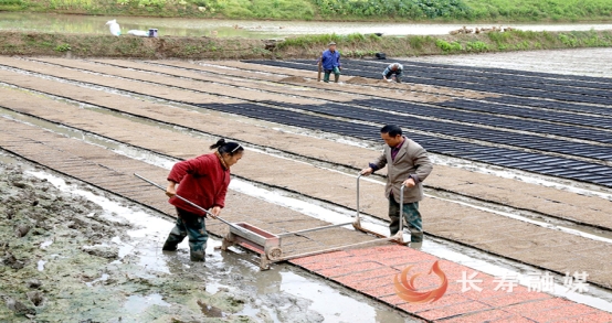 近日,记者走进海棠镇小河村,只见村民们在稻田里俯身忙碌,有条不紊地铺设育秧盘、播撒谷种,机抛秧—再生稻“种收同轨”机械化技术示范项目育秧工作正紧锣密鼓推进。