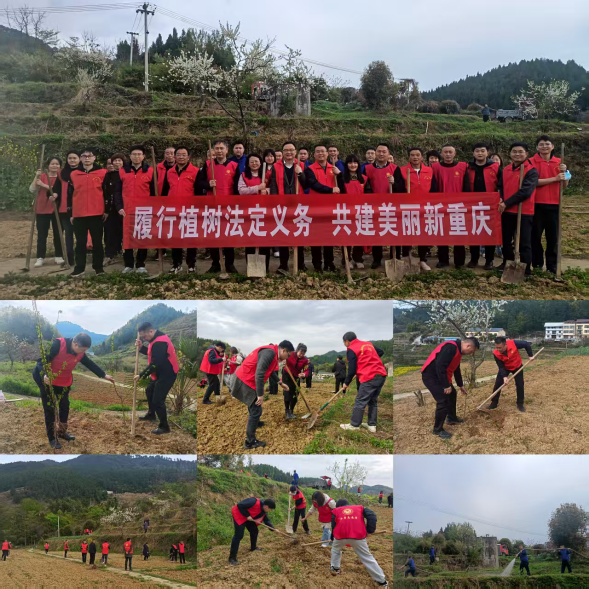 2026年3月12日,为认真贯彻落实关于开展好全民义务植树的重要指示精神,深刻认识做好新时代全民义务植树工作的重大意义,动员党员干部在义务植树工作中走在前、作表率。云台镇党委书记朱浩、镇长曾晓东带领镇领导班子成员、机关干部、退伍军人及村社干部30余人,在云台镇拱桥村4组茶头湾开展了“履行植树法定义务 共建美丽新重庆”为主题的义务植树活动,共栽种李树200棵,以实际行动践行绿色发展理念。