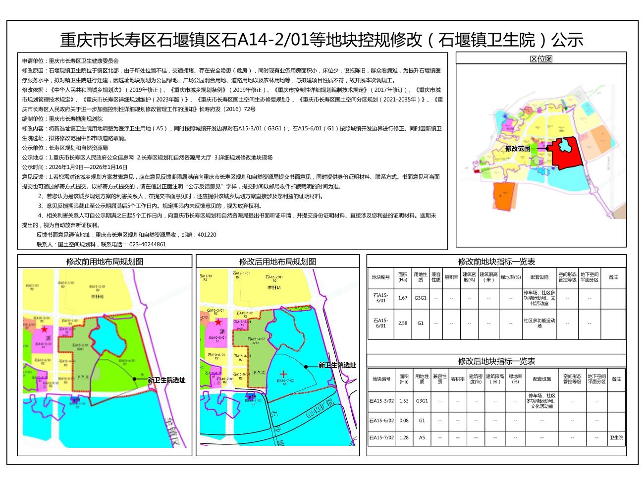 重庆市长寿区石堰镇区石A14-2/01等地块控规修改(石堰镇卫生院)公示