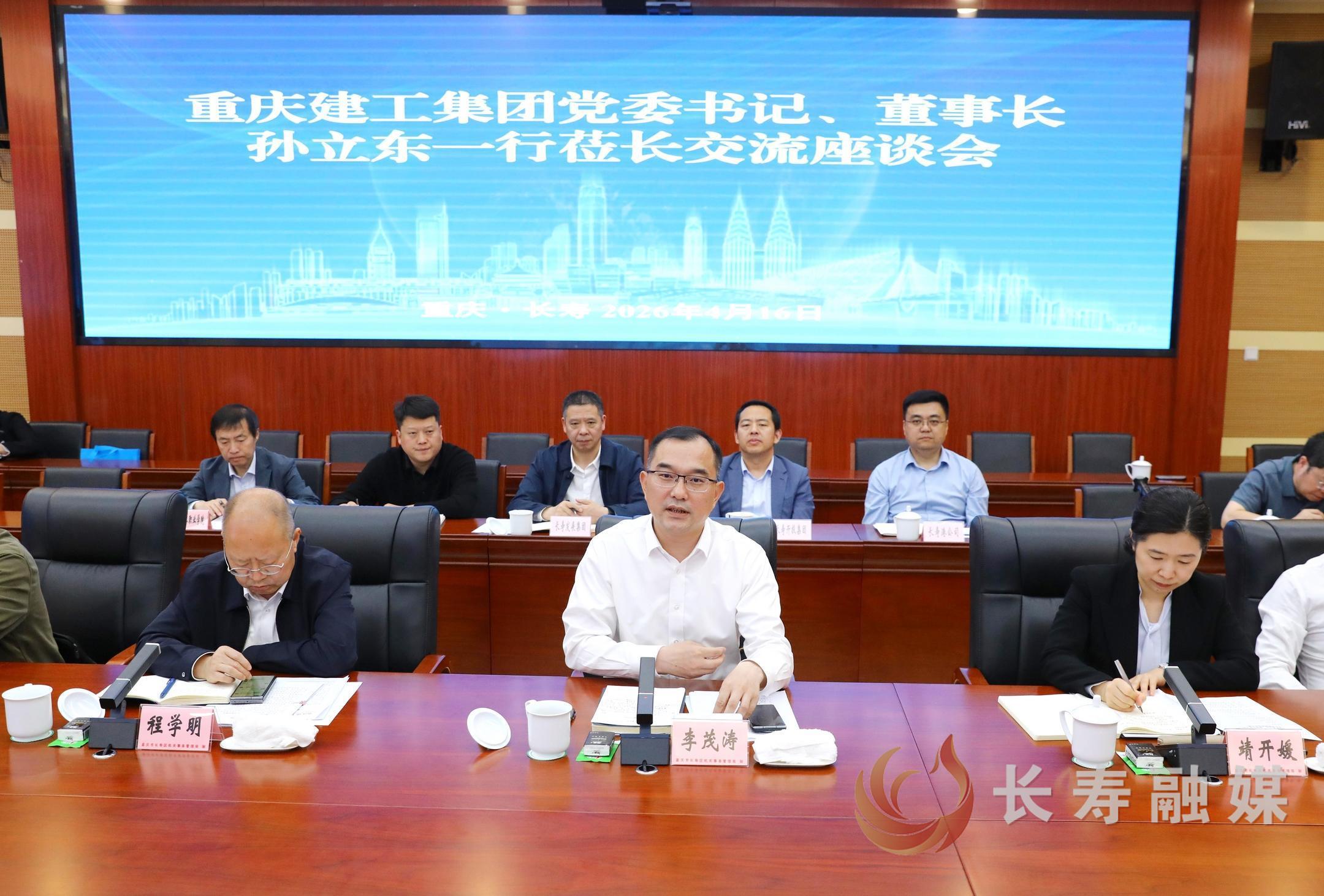 李茂涛对孙立东一行的到来表示欢迎,对重庆建工集团长期以来对长寿发展的关心支持表示感谢,对重庆建工集团取得的成绩表示祝贺。他说,当前,长寿正深入学习贯彻党的二十届四中全会精神和习近平总书记视察重庆重要讲话重要指示精神,认真贯彻落实市委六届八次全会部署,加快建设先进材料产业集聚区、物流枢纽经济先行区、运动康养文旅示范区、自然长寿美丽生态城,确保“十五五”开好局、起好步。重庆建工集团与长寿的合作历史悠久,在多个领域取得了显著成效。长寿在“十五五”规划中项目储备丰富,希望重庆建工集团充分发挥自身优势,与长寿全面深化战略合作,在基础设施、产业项目等领域共谋互利发展、创新发展、升级发展。