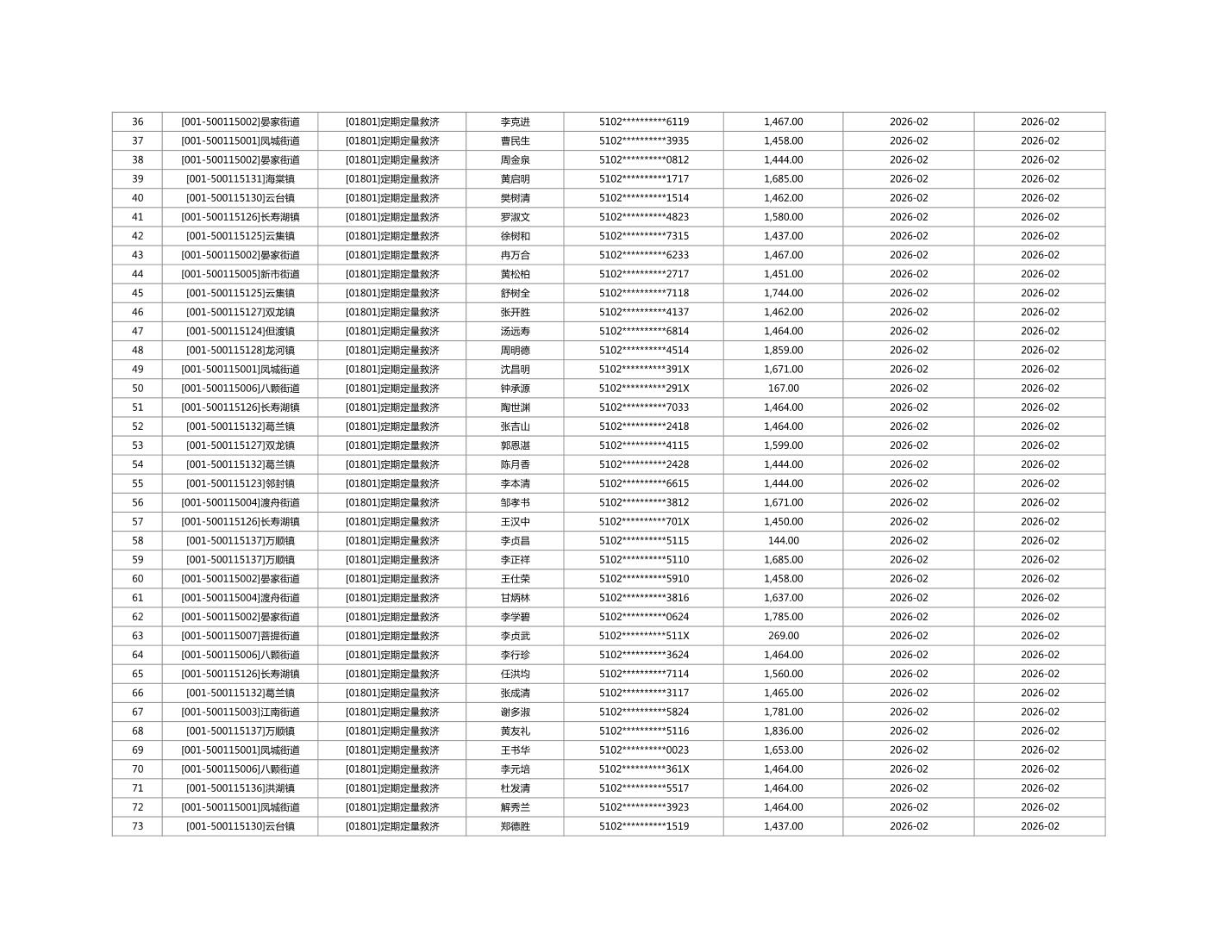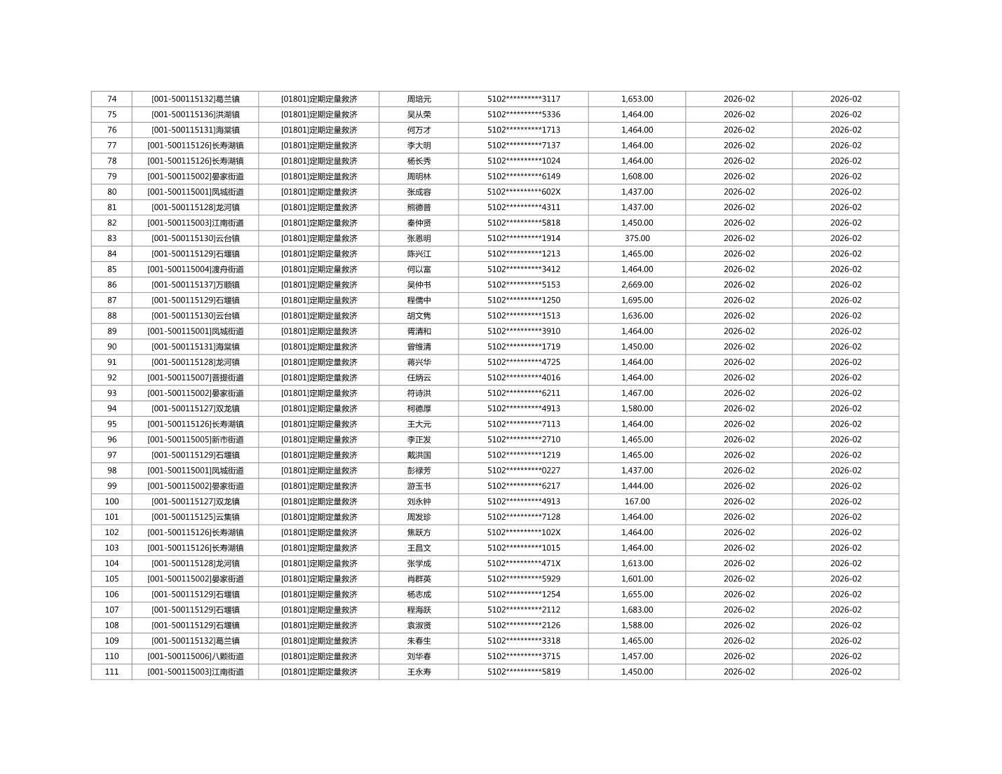 2026年2月重庆市长寿区定期定量救济金发放情况